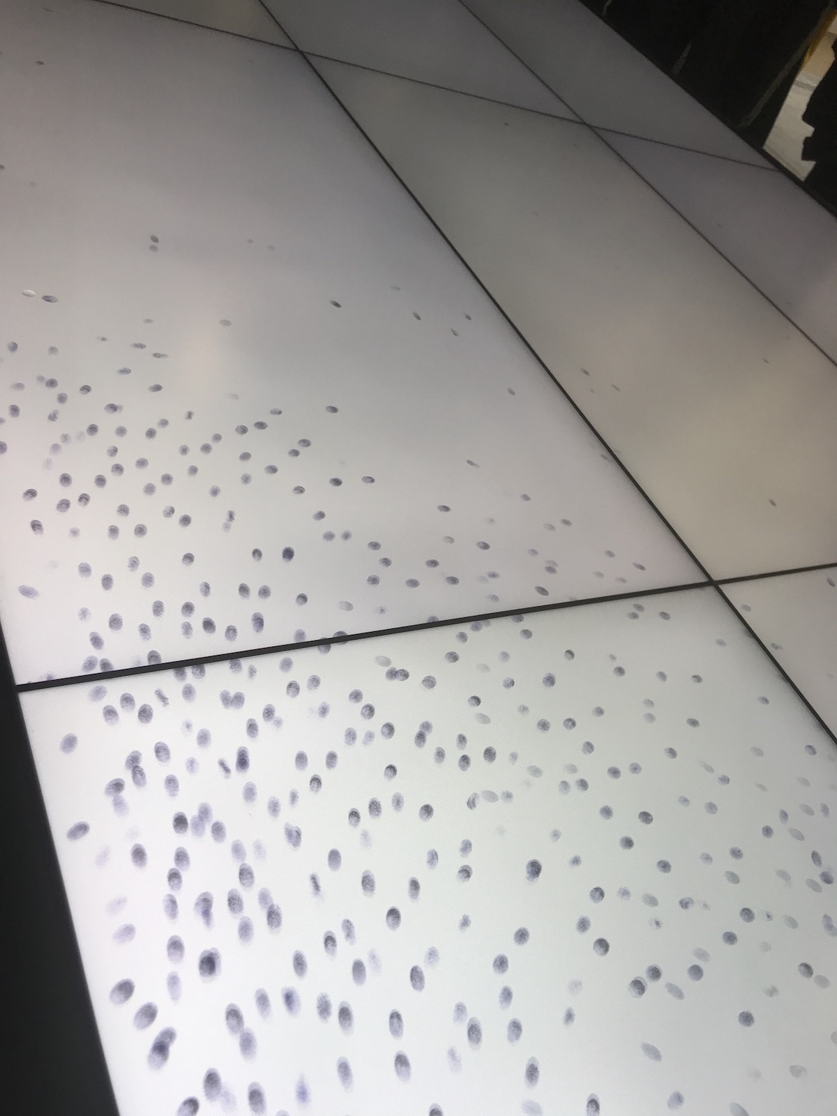 Первая инсталляция "Pool of Fingerprints" передает ощущение человеческой привязанности к отпечаткам пальцев.  Инсталляция дала возможность всем желающим посетителям выставки узнать и распознать свой отпечаток пальца среди многих других подобных идентичностей, где каждый гость вводил через цифровой считыватель свой отпечаток пальца, который, так же, как и маленькие рыбки, плавает среди других, присутствующих в виртуальном бассейне таких же отпечатков, а затем возвращается к своему законному владельцу.