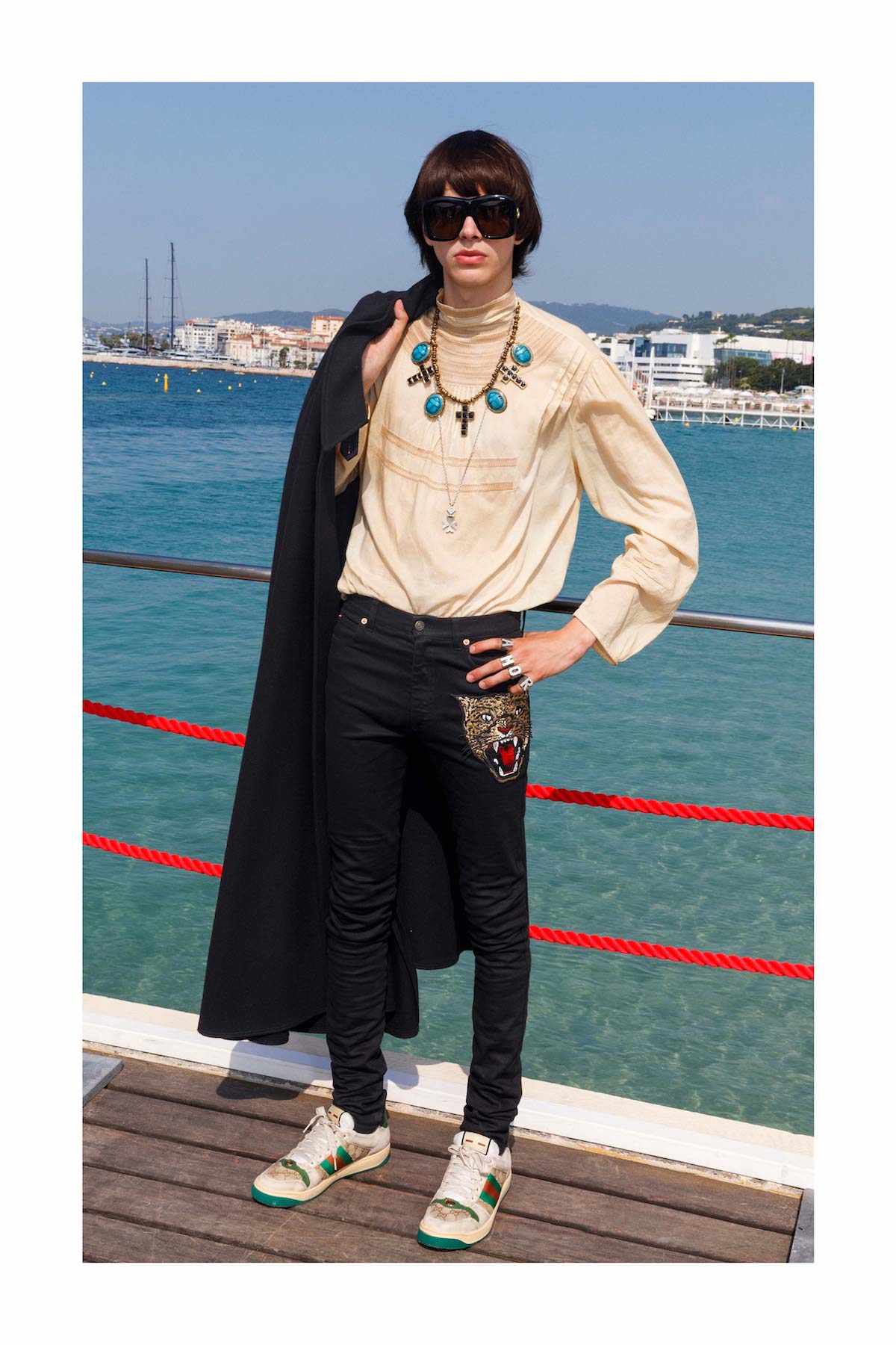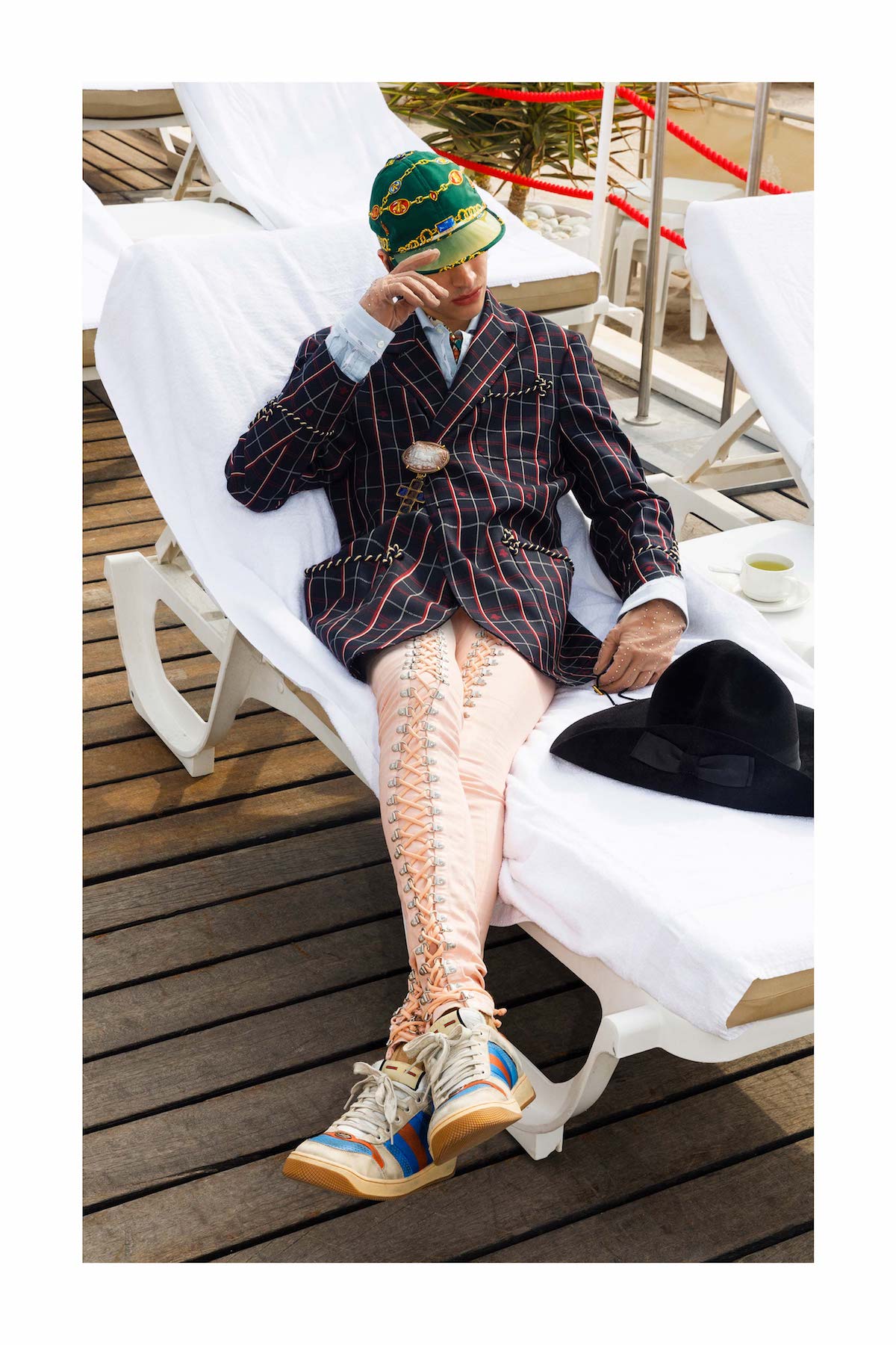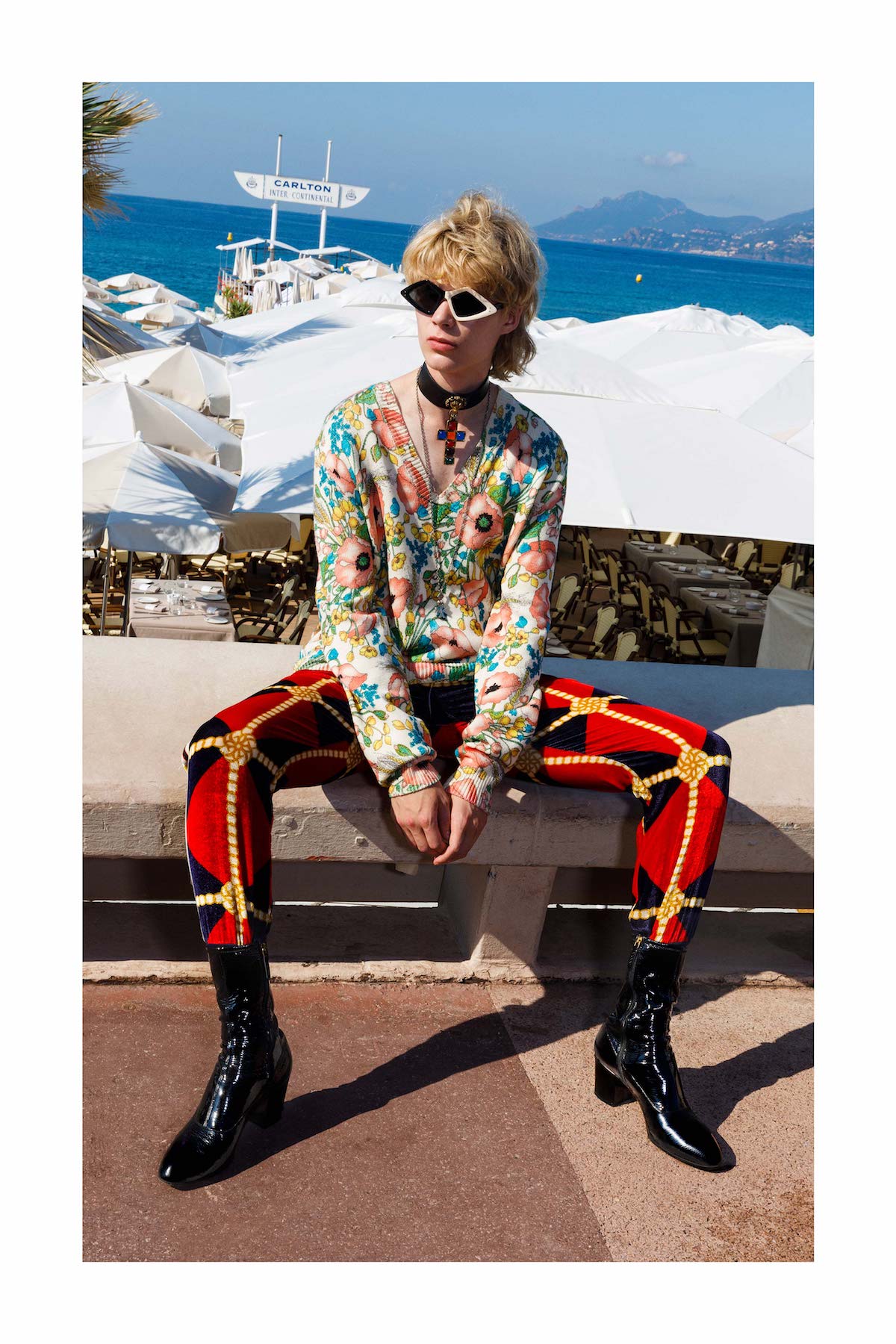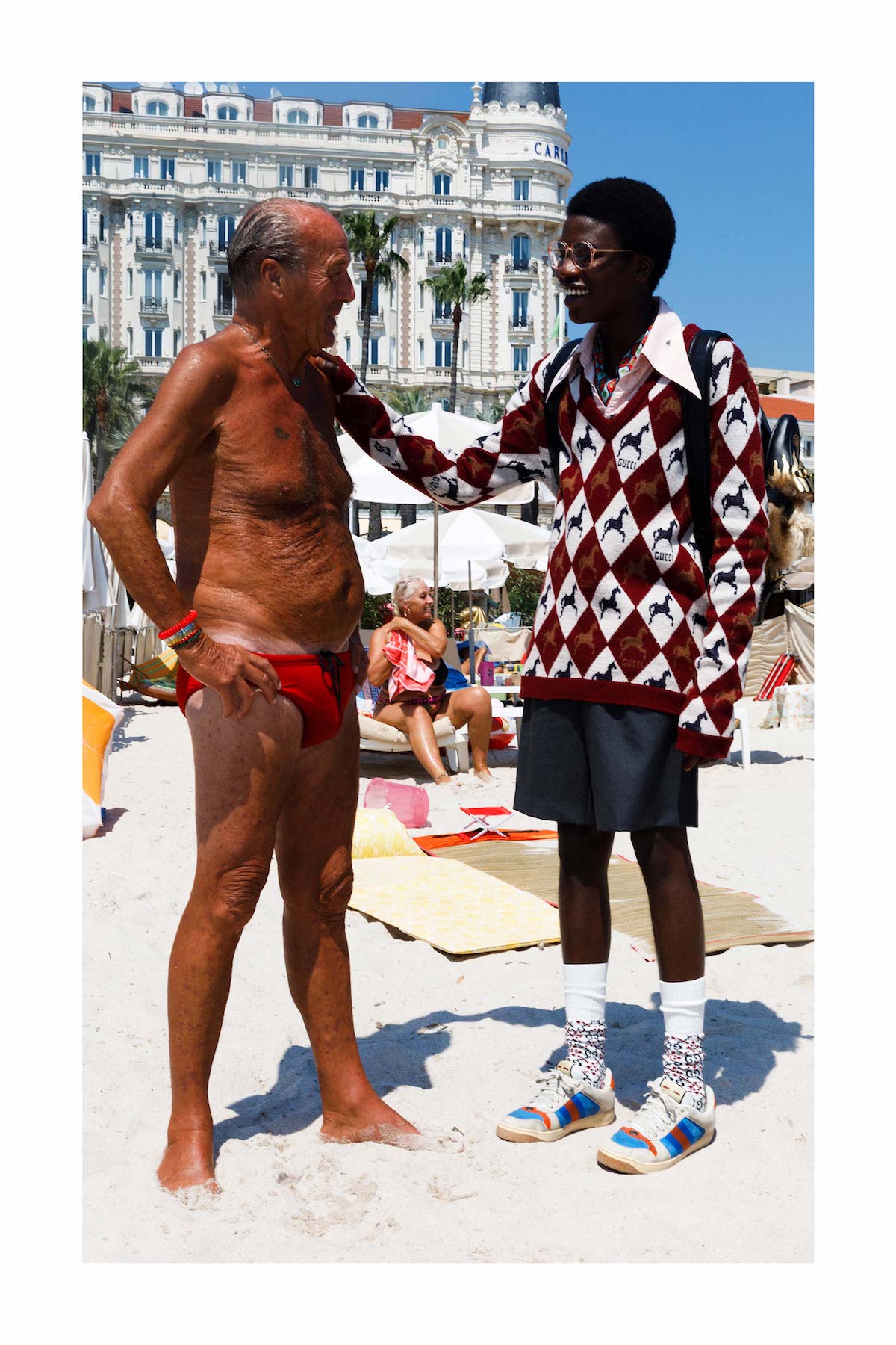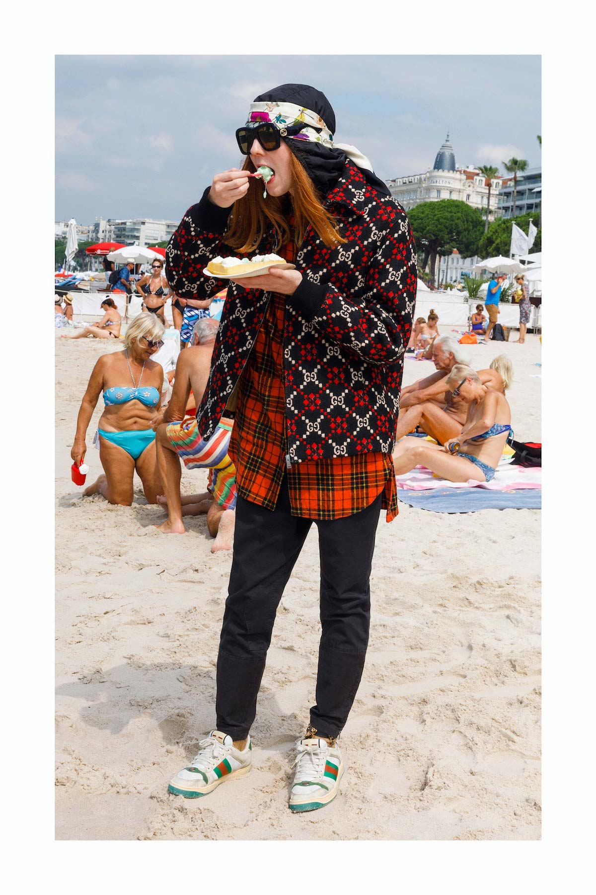 В объектив фотографа Мартина Парра попал весь знаковый антураж наших любимых Канн: голубые стулья на набережной, пляж отеля Carlton Cannes, и монумент популярному мороженому. Часто в кадр попадали местные жители, то позируя на фоне, а то и вместе с моделями.
