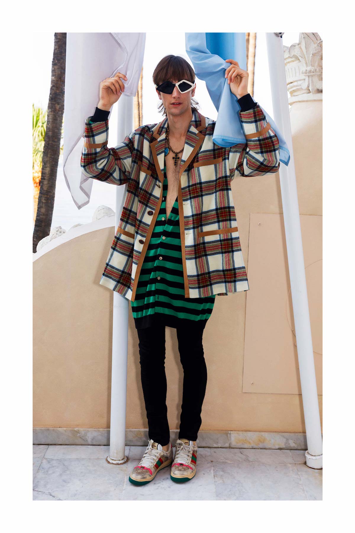 Gucci представили лукбук Men’s Cruise 2019, съемки которого прошли на Французской ривьере. Алессандро Микеле мастерски скомбинировал шорты и сандали вместе с шапками, гольфами, большим количеством верхней одежды и даже с шубой и пуховиком. Как говорят: «Пар костей не ломит»!