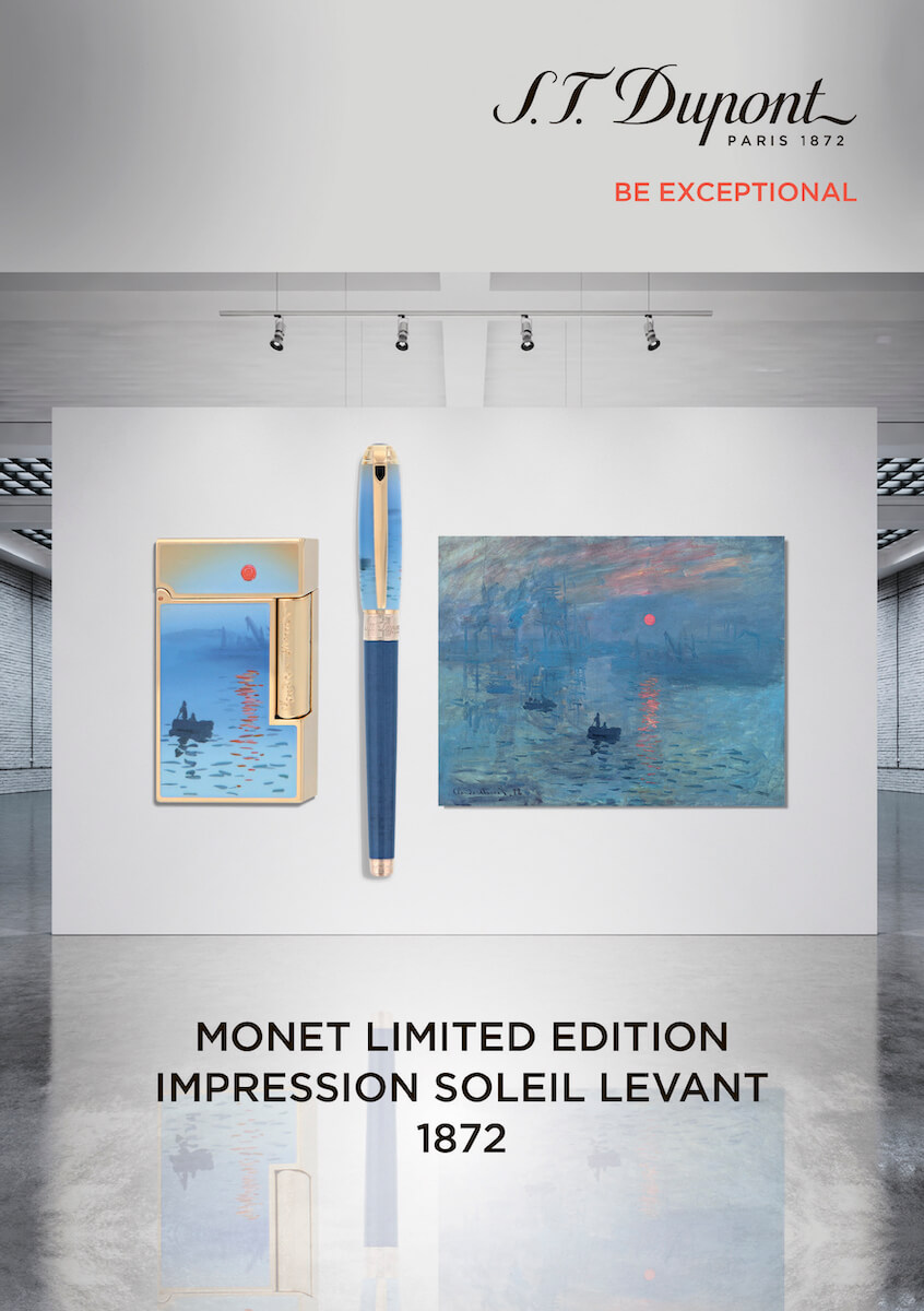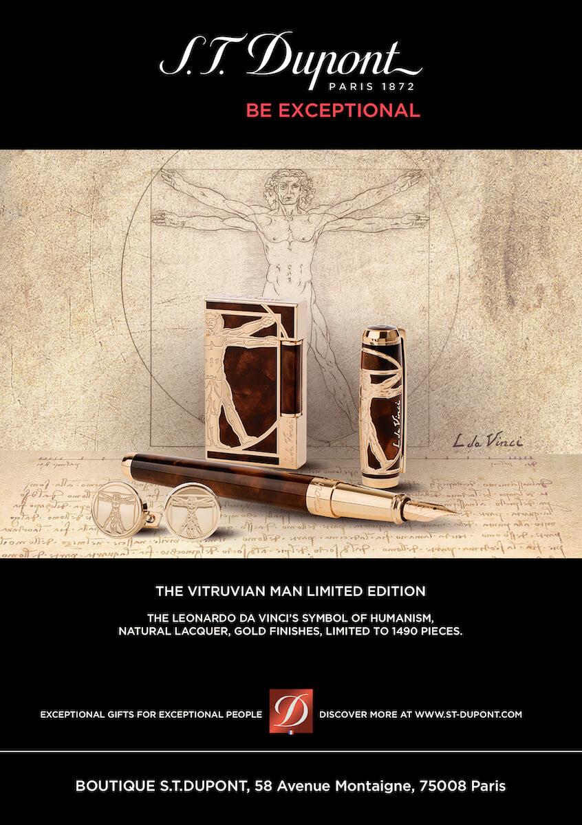 – Сегодня ателье S.T. Dupont поддерживает философию их основателя Симона Тиссо-Дюпона, объединяя собственные наработки с мастерством ведущих художников и ремесленников для создания избранных произведений Haute Création, – рассказывает Ольга. – Для нас также очень важна тема путешествий, которая заложена в ДНК S.T. Dupont. Именно поэтому мы решили привезти на эту выставку набор «Семь морей». В него входят: газовая зажигалка, перьевая ручка, нож для конвертов и оригинальная настольная подставка, напоминающая причал для двух парусных лодок. Другой важной темой для нас является искусство. Из этой серии на выставке представлены три комплекта: комплект, посвященный Моне и его картине «Впечатление: закат», в котором специалисты ателье мастерски украсили свои изделия импрессионистической живописью художника, а также комплекты, посвященные Пикассо и «Витрувианскому человеку» да Винчи.