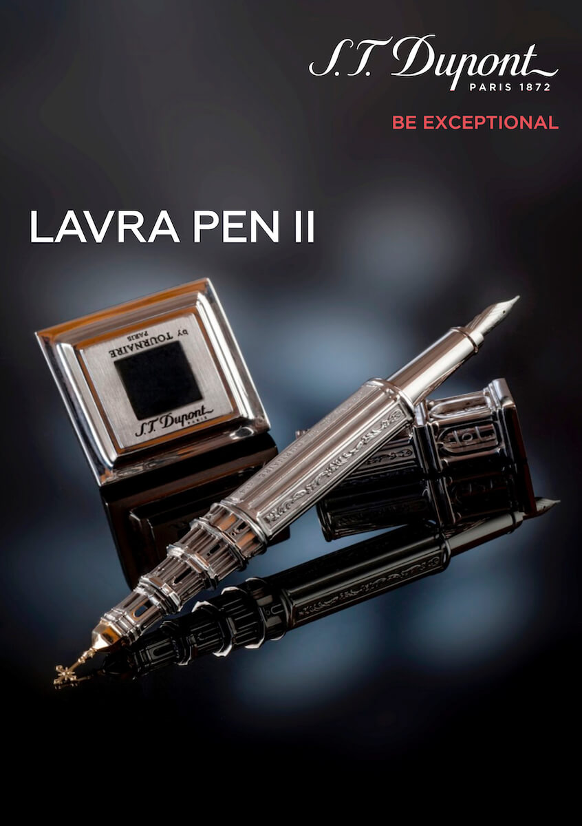 Помимо этого, на выставке в MANDARIN MAISON предлагают вниманию зрителя еще пять экспонатов: зажигалку с гравировкой «007», посвященную приключениям британского шпиона Джеймса Бонда; комплект «Покорение Дикого Запада», в который входят зажигалка и перьевая ручка, изготовленные в стилизации элементов ковбойских револьверов; комплект, созданный в коллаборации с легендарной американской фирмой электрогитар Fender; комплект «Возрождение феникса» и главный экспонат выставки – перьевая ручка «Лавра III», посвященная колокольне Киево-Печерской лавры. Это не первый опыт работы S.T. Dupont с образами известных мировых архитектурных достопримечательностей. Ранее французское ателье уже воплощало в своих изделиях собор Парижской Богоматери, башню Эйфеля, статую Свободы и многое другое.