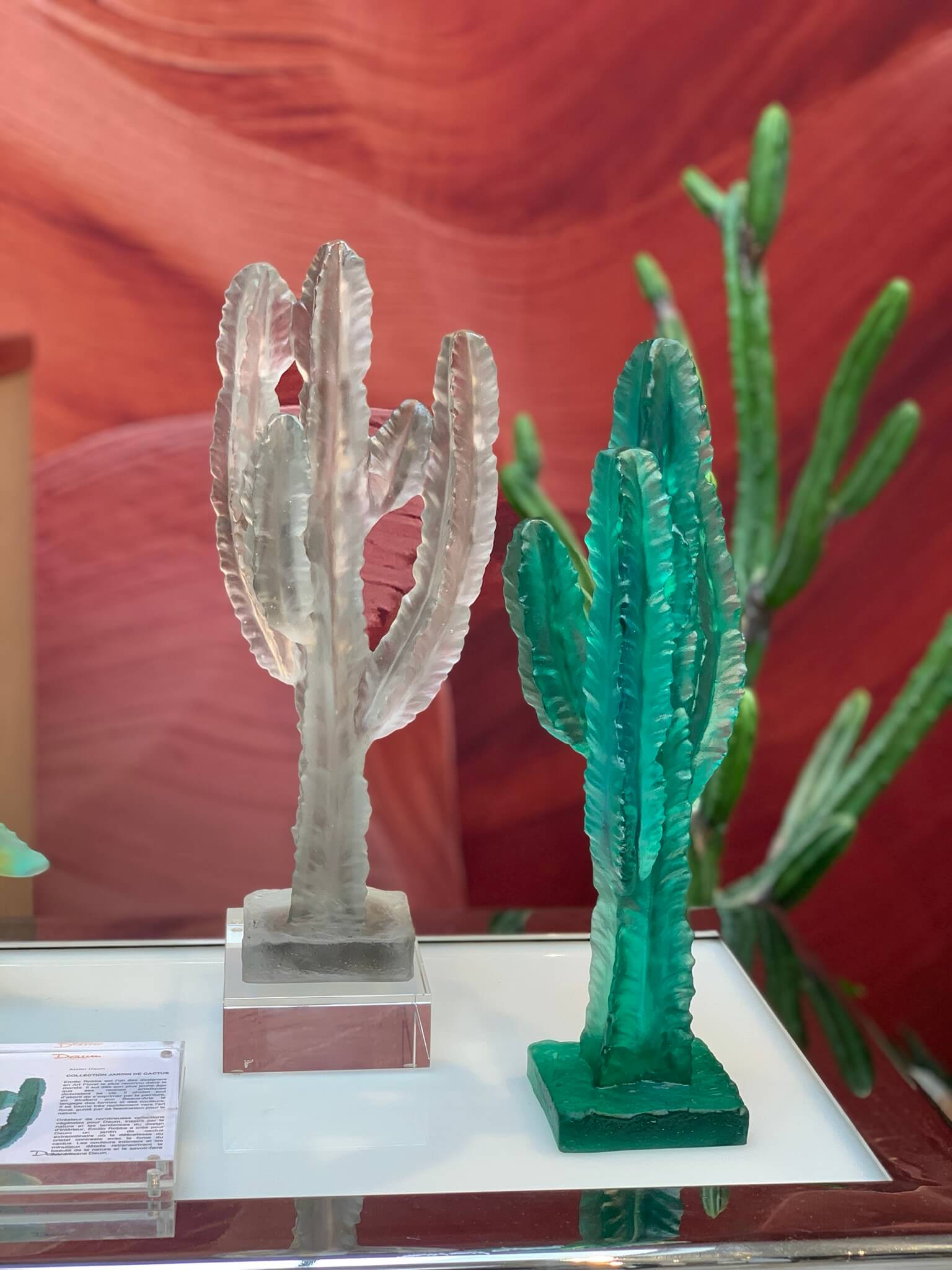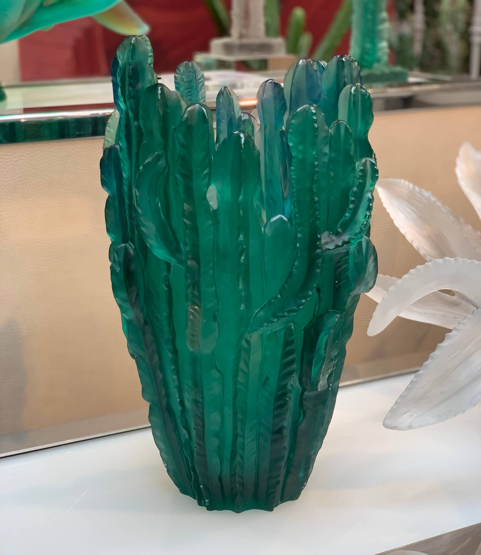 Коллекция ваз и фигурок из разноцветного хрусталя знаменитой французской мануфактуры DAUM – гимн торжеству природы. В основе создания шедевров лежит принцип плавления хрустальных осколков. Метод применяют до сих пор, а «фишкой» нового сезона DAUM стали не только традиционные цветы, но и кактусы, агавы и прочие суккуленты. Кстати, в переводе с латыни succulentus означает «сочный».