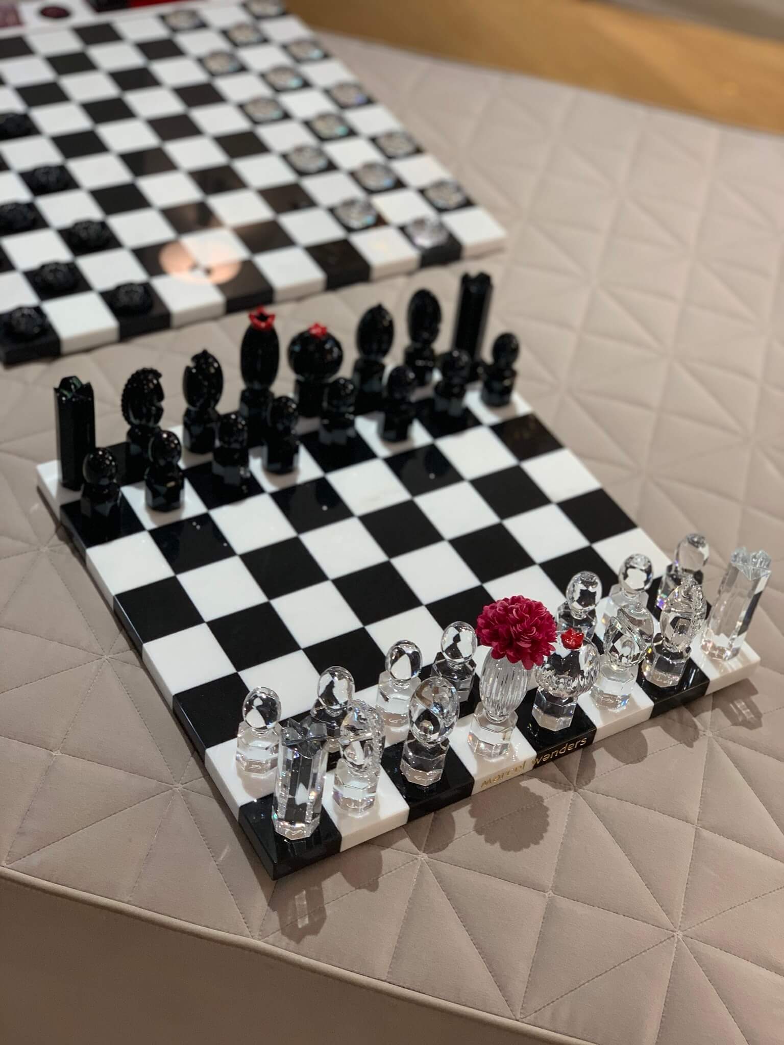 Истинный оплот французского шика – мануфактура SAINT-LOUIS чтит вековые традиции. С 1586 года каждый предмет здесь по-прежнему создается вручную, и что ни новинка – произведение искусства. Взять хотя бы шахматы, древнюю и вечно новую игру. В этом году мастера фабрики SAINT-LOUIS выпустили лимитированную коллекцию шахматных фигур из серого и прозрачного хрусталя на хрустальной доске.