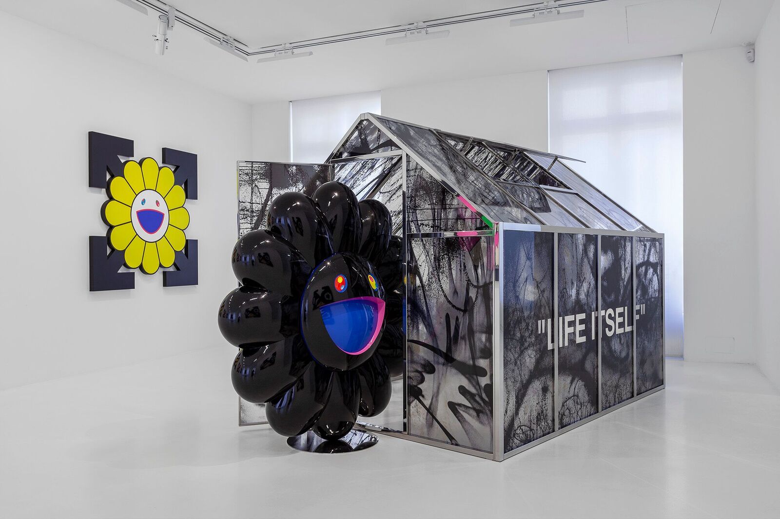 Одними из важнейших арт-объектов выставки стали новые прочтения рисунков Мураками Times Nature, которые изображают улыбающиеся цветы, наложенные на перекрещивающиеся стрелы – логотип бренда Off-White Вирджила Абло. Теперь они могут представлять собой «анимированные» и освещенные картины, с помощью которых создатели выставки играют с культурными отсылками, идеями производства и перепроизводства, а также концепцией линейного времени. Помимо этого, в экспозицию включены скульптуры Life Itself и Our Outer Space. В первой задействован все тот же улыбающийся цветок, а во второй – мистер ДОБ, персонаж, также придуманный Такаси Мураками.