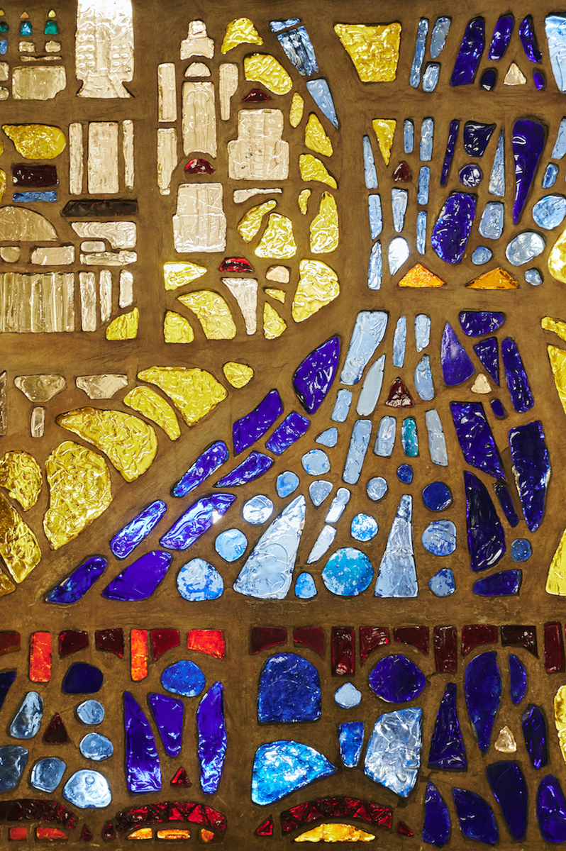 Оформление остальных точек южного направления получилось более сдержанным, но от этого не менее интересным и символичным. Оказавшись в следующий раз на «Почайне», прислушайтесь к шуму приближающихся поездов. Подвесной потолок станции из анодированного алюминия выполнен в виде акустических панелей, за счет чего архитекторам удалось получить эффект звукоизоляции. Спускаясь на платформу станции из кассового зала, рассмотрите тематическое панно «Техника и природа»: над южной лестницей оно выполнено мозаикой, над северной – витражом.