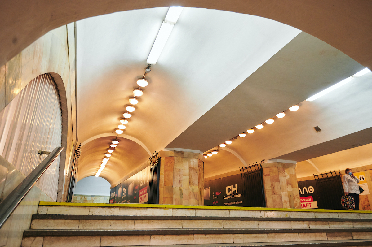 «В первых проектах начала 70-х в центральном и боковых залах станции предлагали повесить люстры, которые впоследствии, судя по всему, доработали и разместили на «Олимпийской», – рассказывает блогер и главный «специалист» по киевскому метро Олег Тоцкий. – В 80-х «Киевметропроект» разрабатывал варианты реконструкции системы освещения станции, однако ни один из них так и не был реализован.