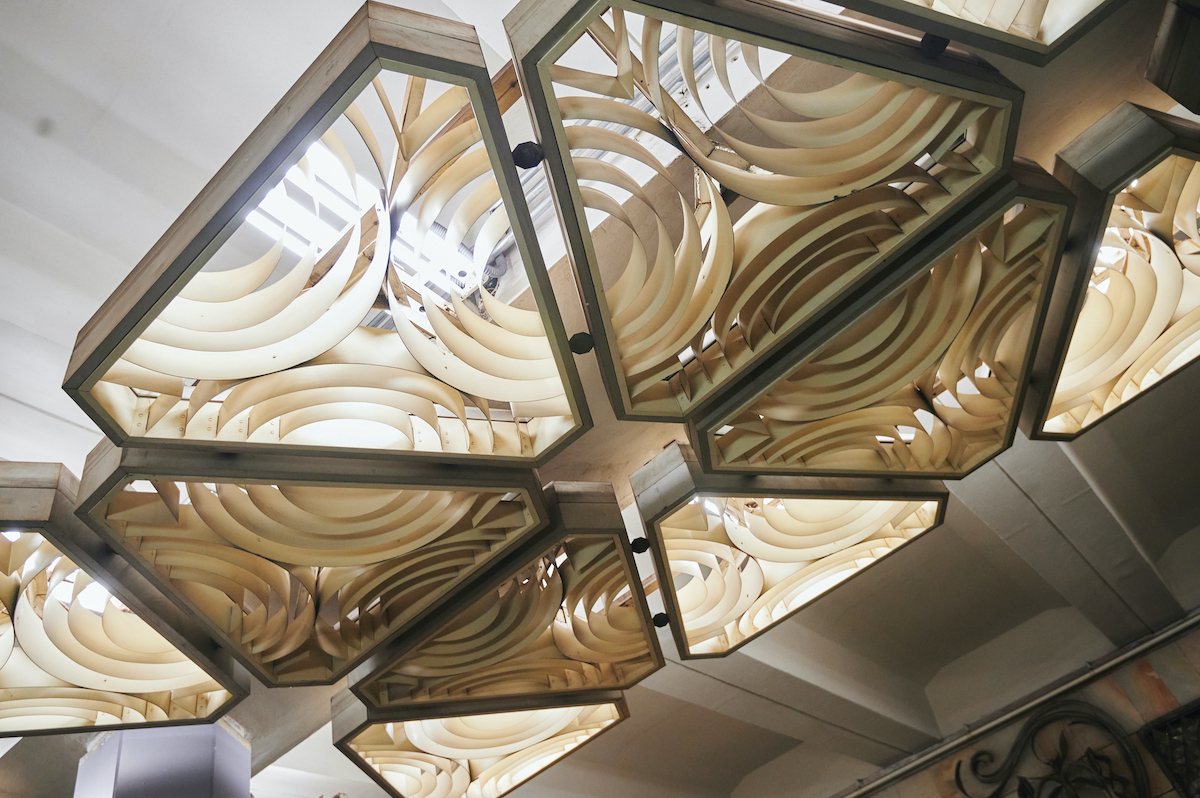создавали сплошную световую поверхность, которая являлась аллюзией на волны Днепра, – вспоминает Тоцкий. – После пожара на станции «Осокорки» в 2012 году пластиковая обшивка таких ламп была признана пожароопасной и демонтирована по всему метрополитену, в том числе и на «Почтовой площади».