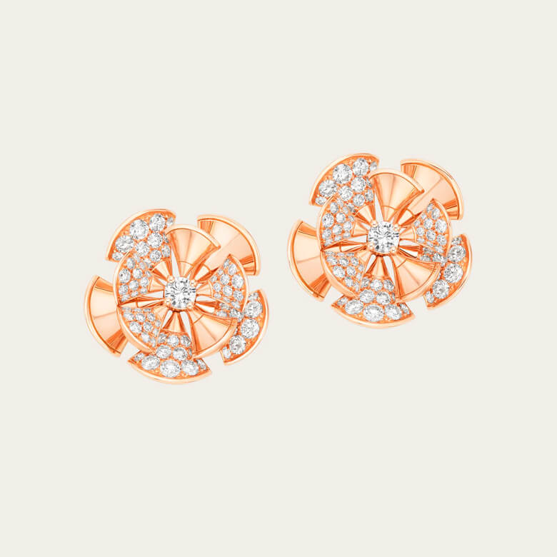 В вашей шкатулке может быть всего несколько ювелирных изделий, но все они тонкой ювелирной работы и их можно передавать из поколения в поколение. Вашу коллекцию идеально дополнят серьги Diva's Dream из розового золота 18 карат с центральным бриллиантом и бриллиантовым паве. На создание этих сережек ювелиров вдохновили мозаики Рима.