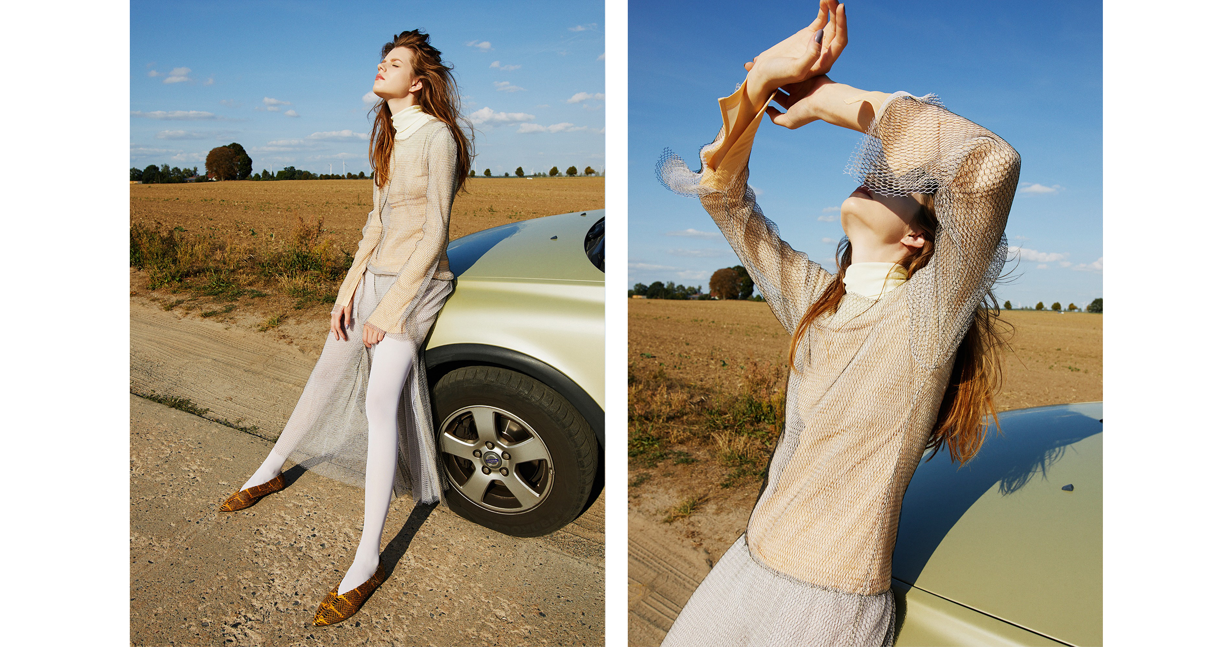 Топ и и платье Wunderkind, жакет Vladimir Karaleev, пояс working title, обувь Aeydé
