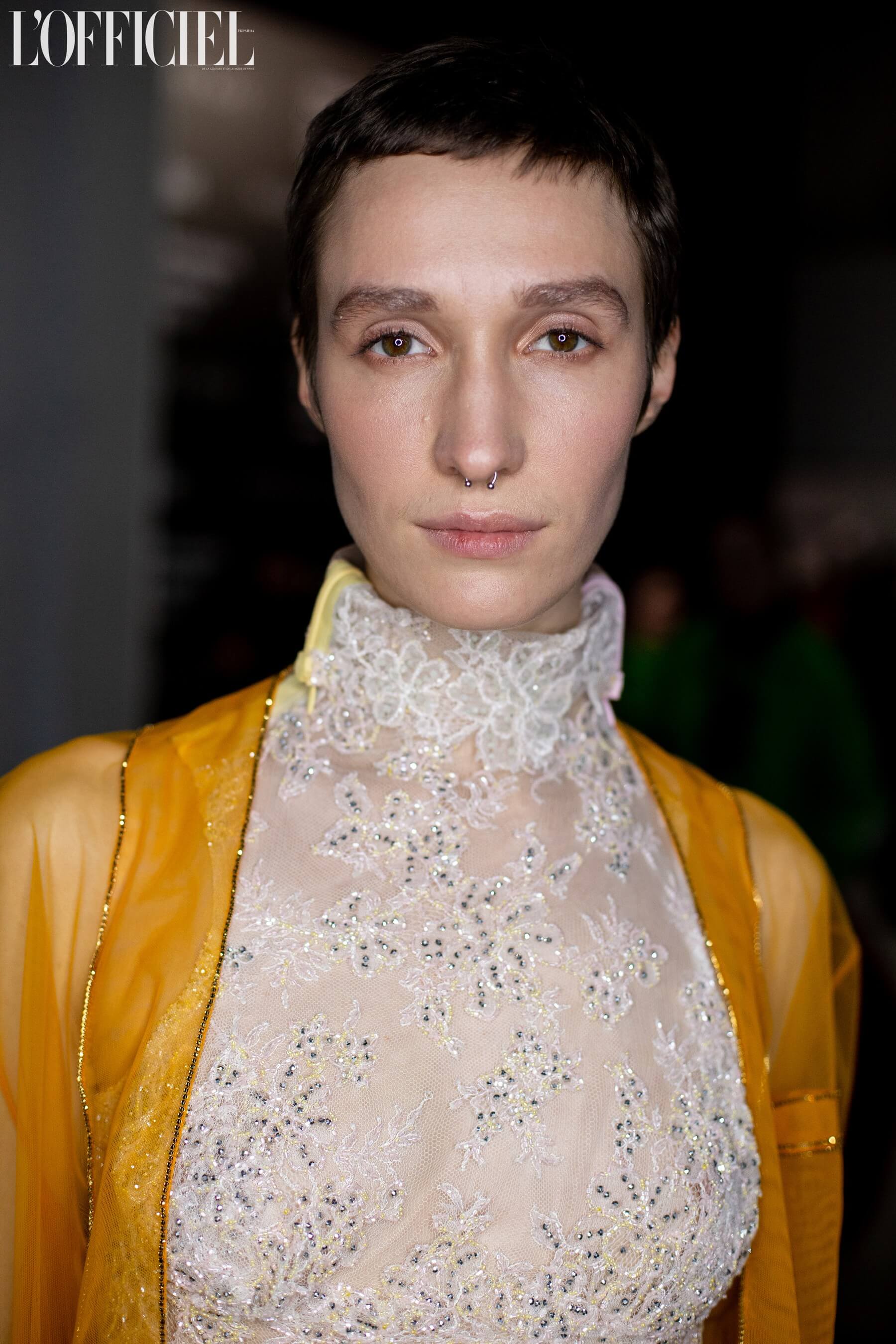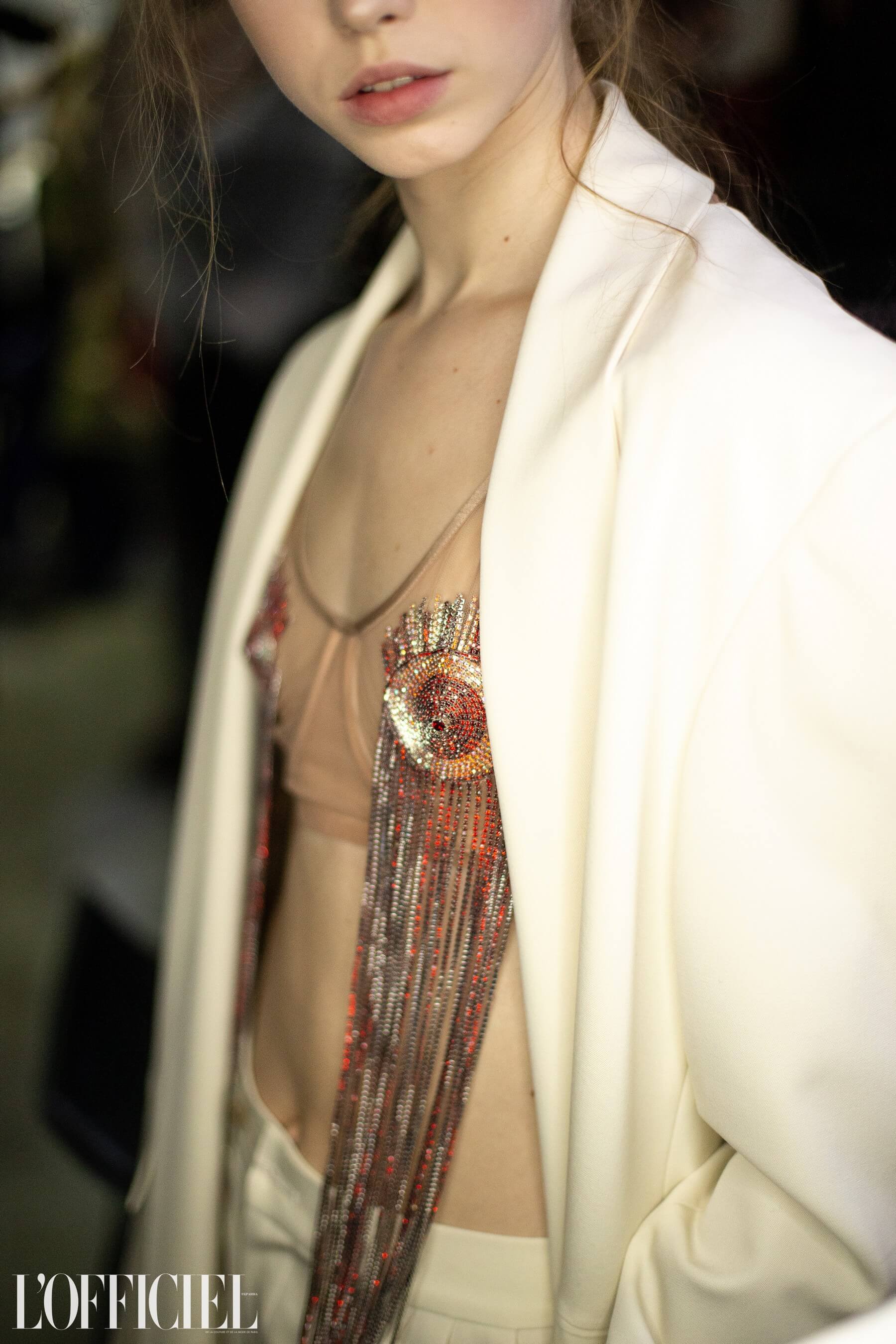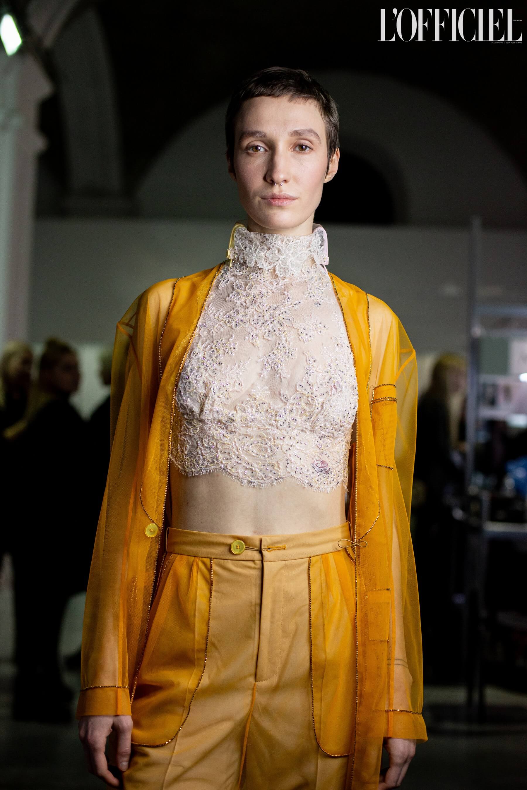 Километры фатина, шелк, кристаллы, кружево и расслабленные смокинги – рассматриваем детали и фактуры осенней коллекции Frolov.