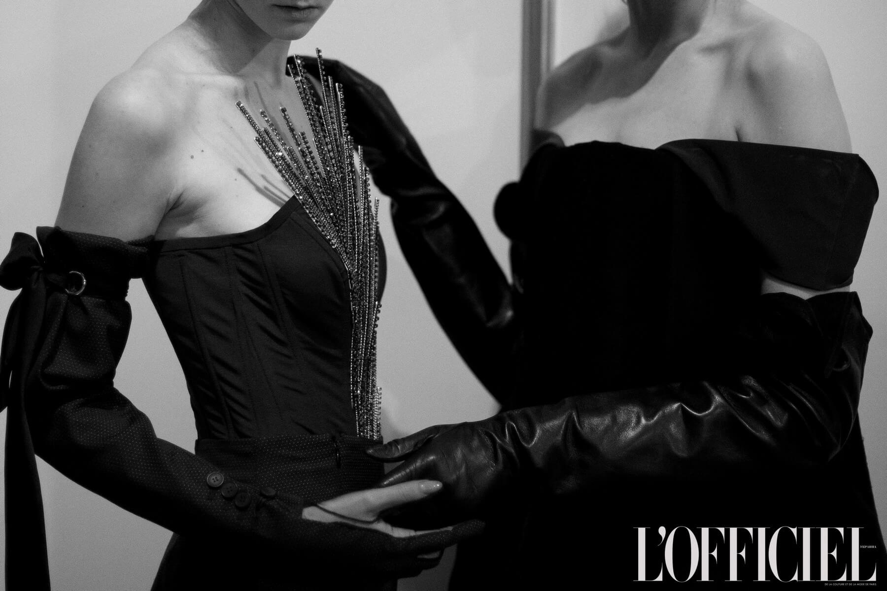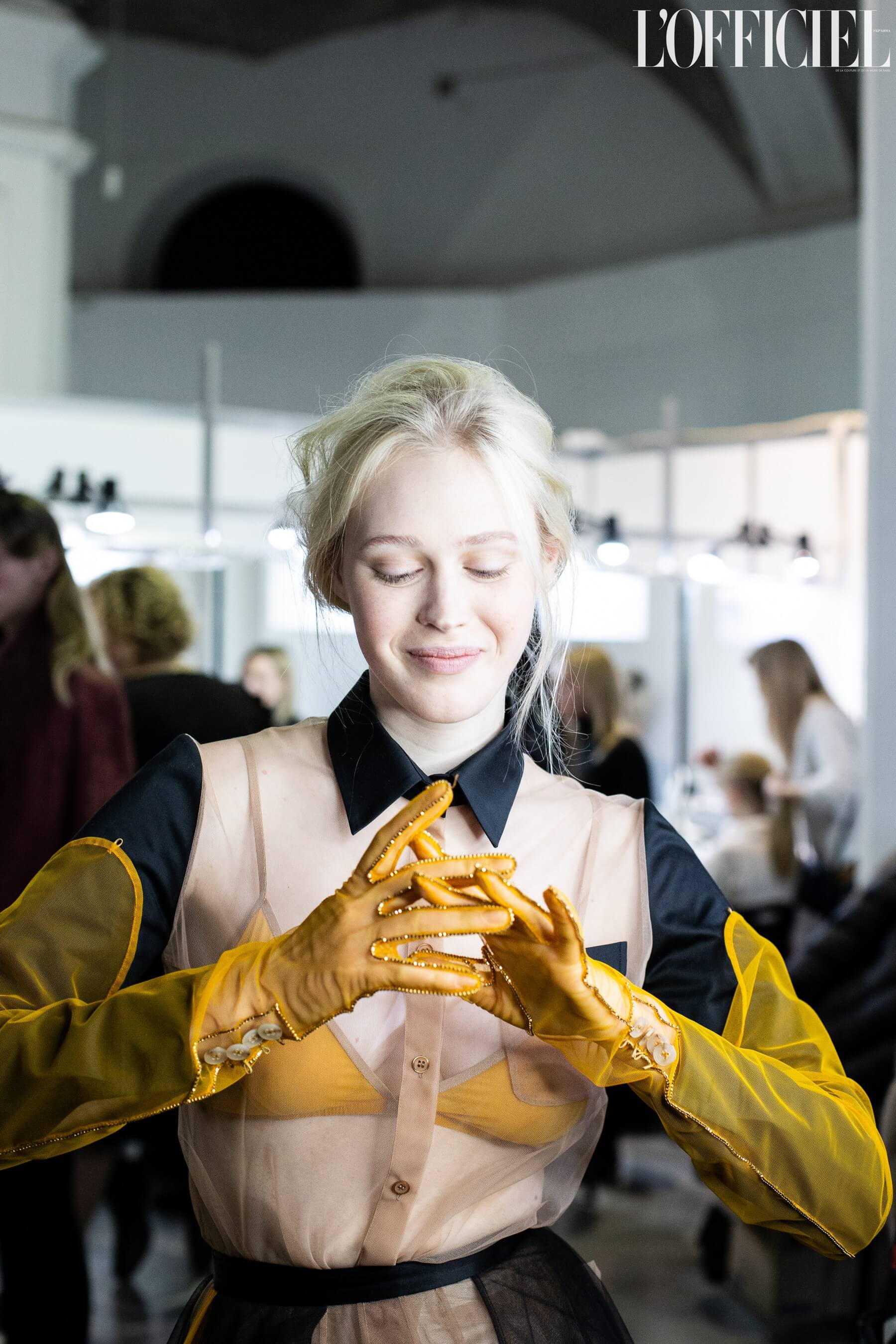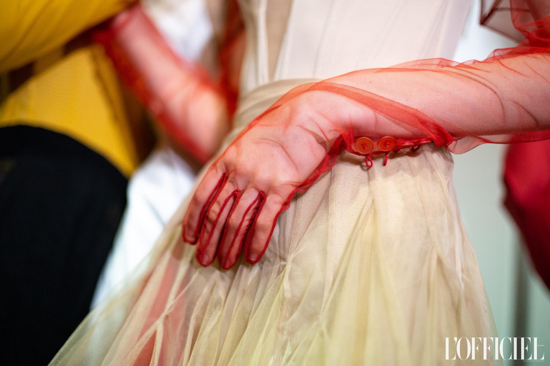 Километры фатина, шелк, кристаллы, кружево и расслабленные смокинги – рассматриваем детали и фактуры осенней коллекции Frolov.