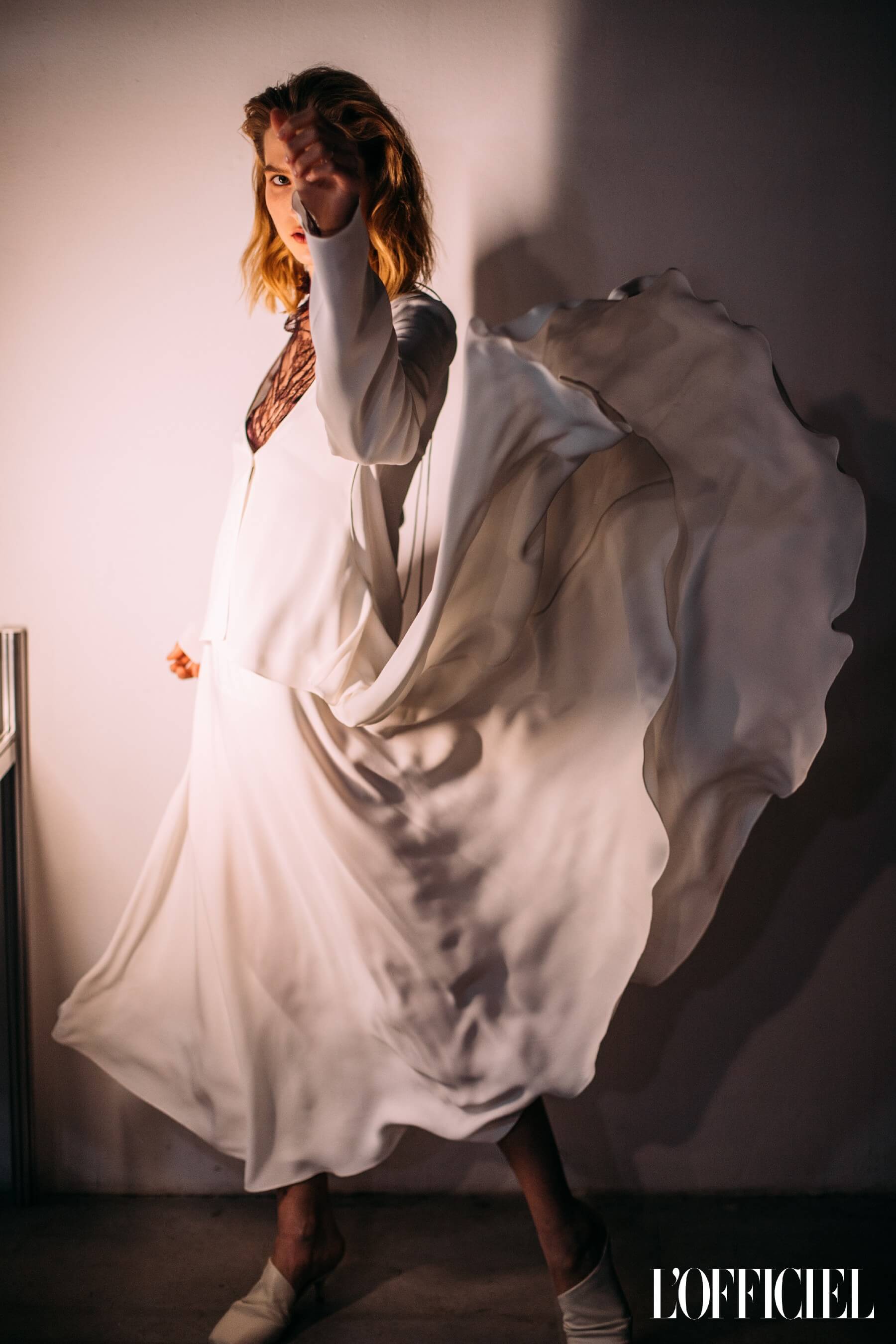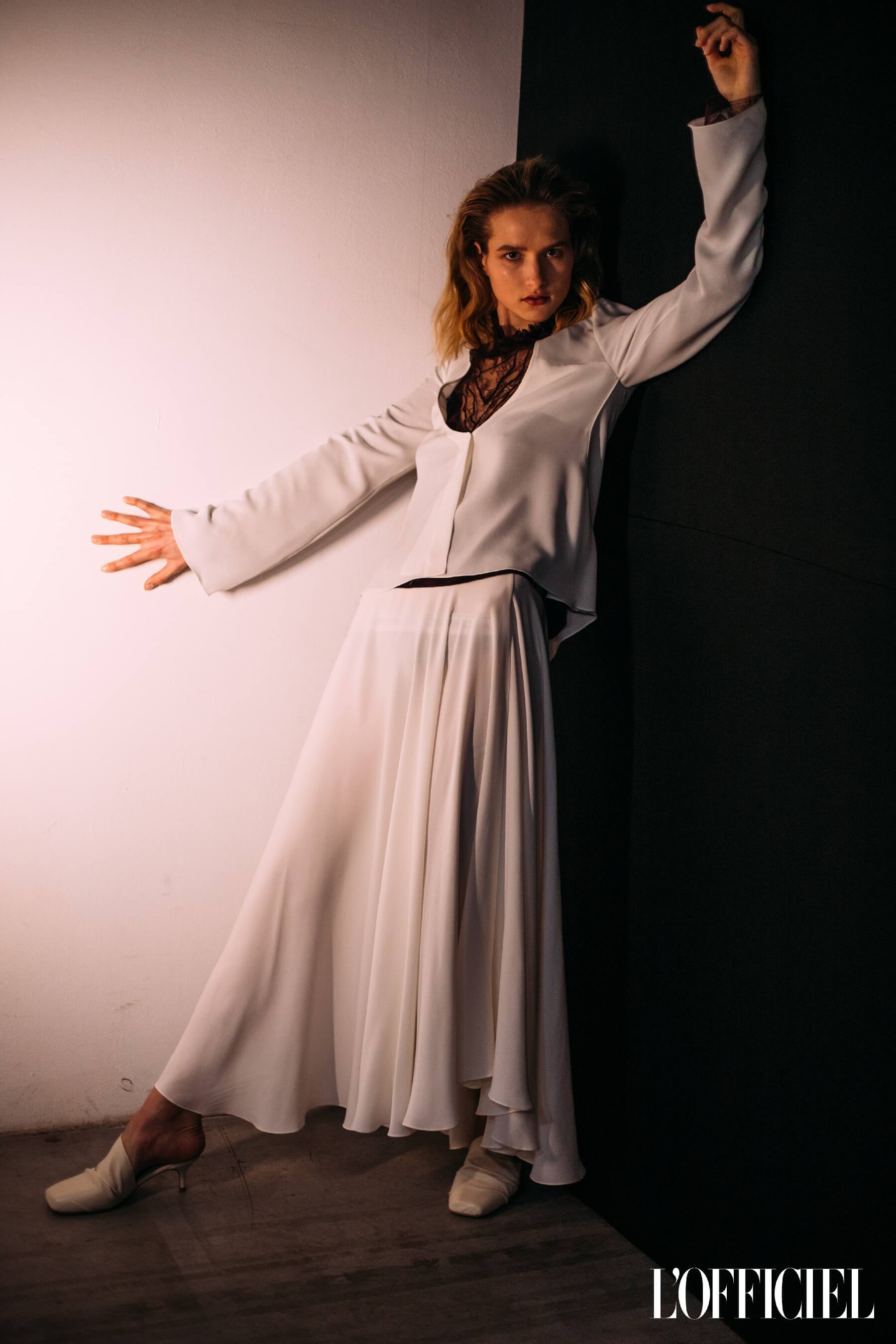Струящиеся брючные костюмы пудровых оттенков, графичные платья, урбанистические сетчатые топы или деликатные гипюровые вставки в воздушных нарядах — всё было продумано дизайнером Юлией Богдан как олицетворение сложной, неуёмной и притягательной женской природы.