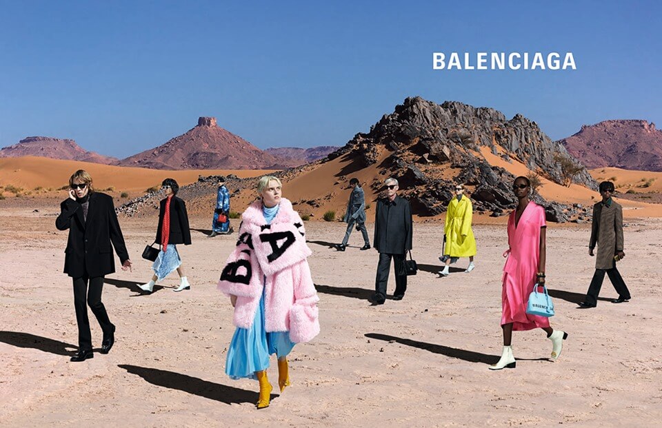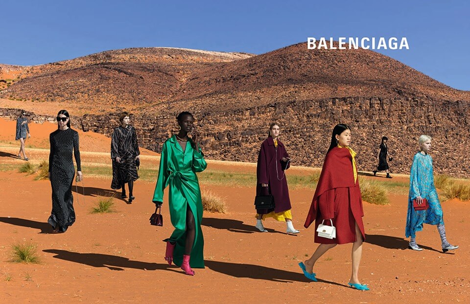 "Вырванные из современного лабиринта архитектуры, массы становятся личностями, каждая из которых чувствует уникальность огромного, прекрасного мира", — описывают Balenciaga новую сюрреалистическую кампанию.