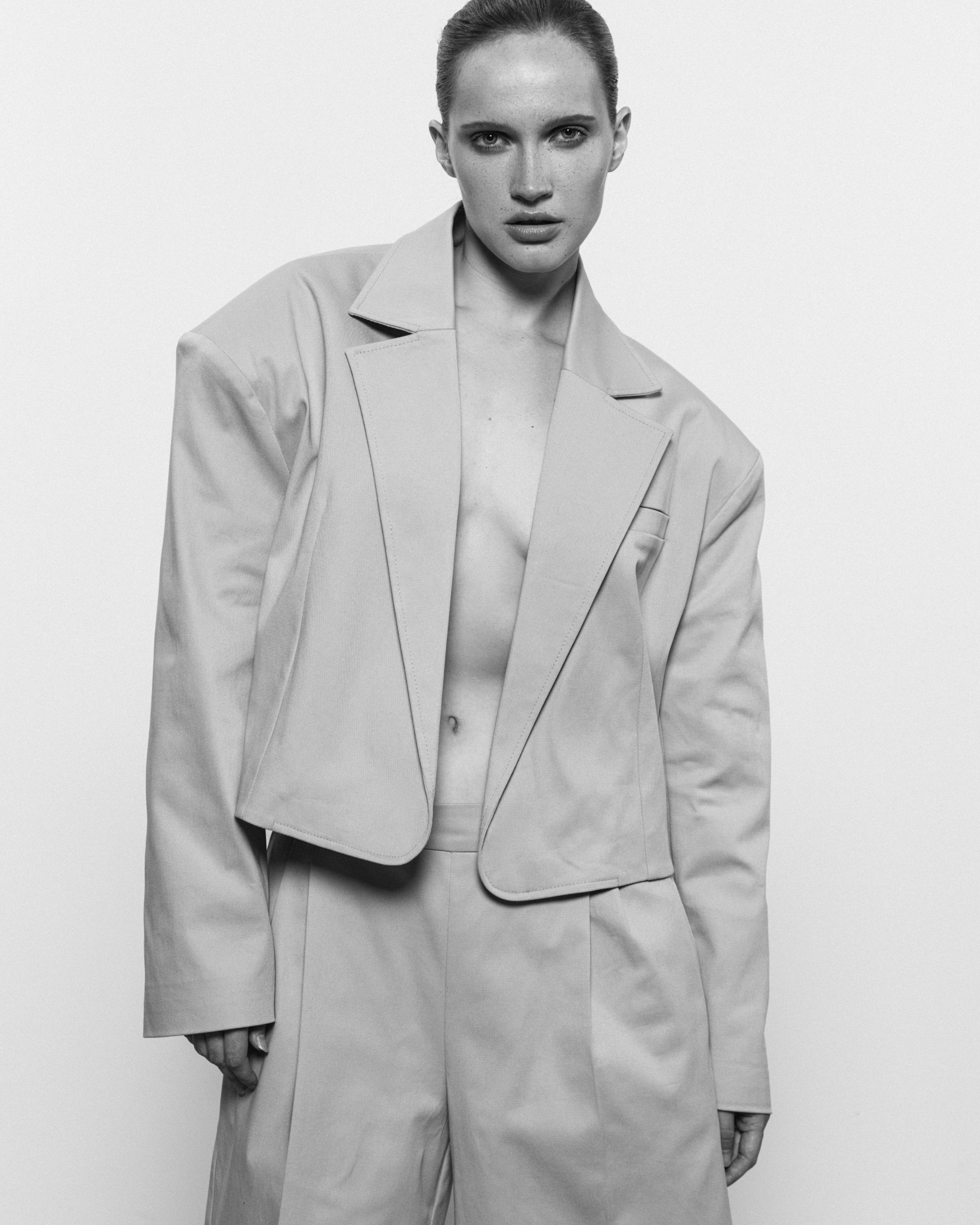 Все изделия — утилитарны. К примеру, одни джинсы могут быть основой десятка аутфитов, стоит лишь менять топы и аксессуары. А боди из переработанного пластика, с открытой спиной, послужит купальником, топом для занятий спортом или верхом в образе для вечернего выхода.