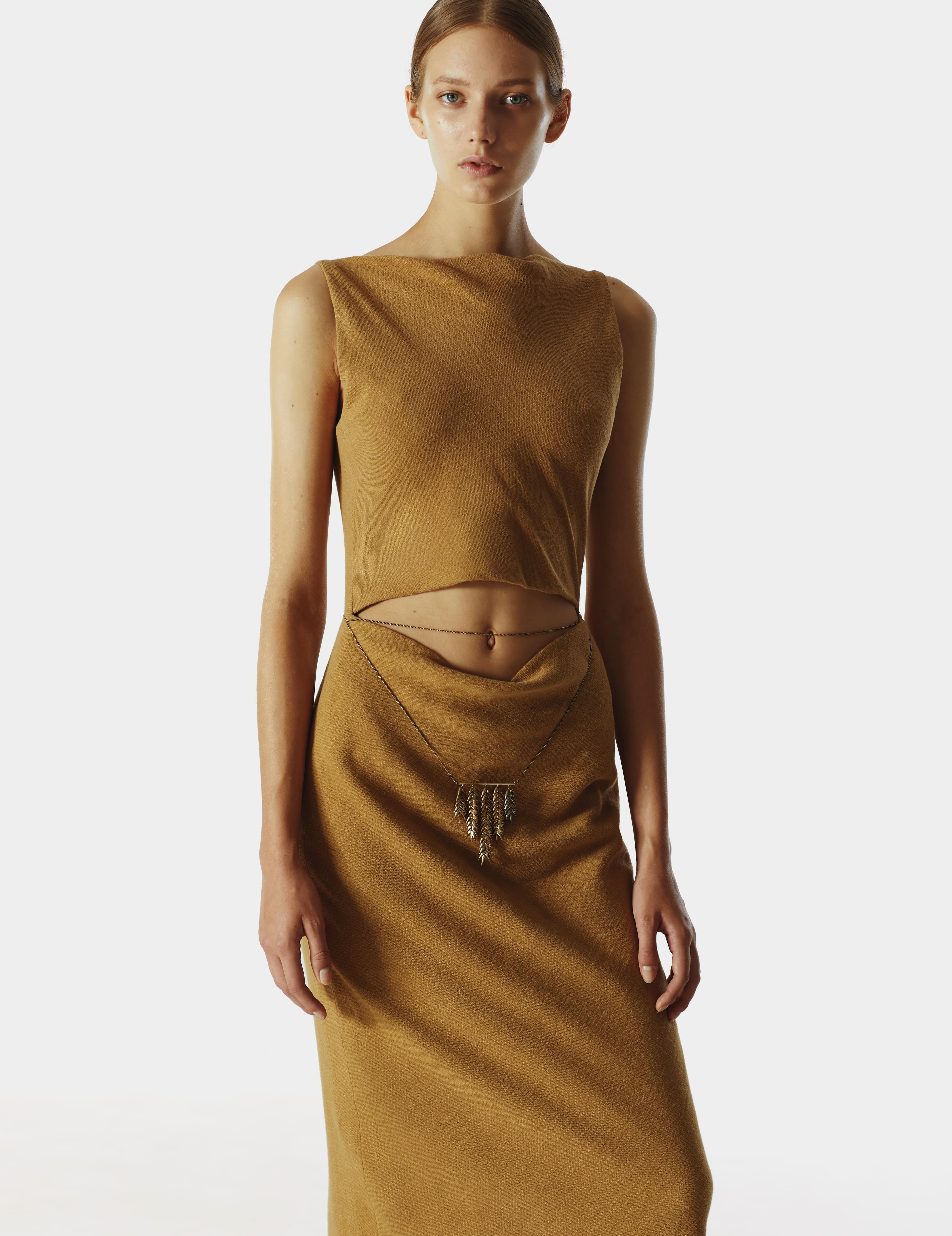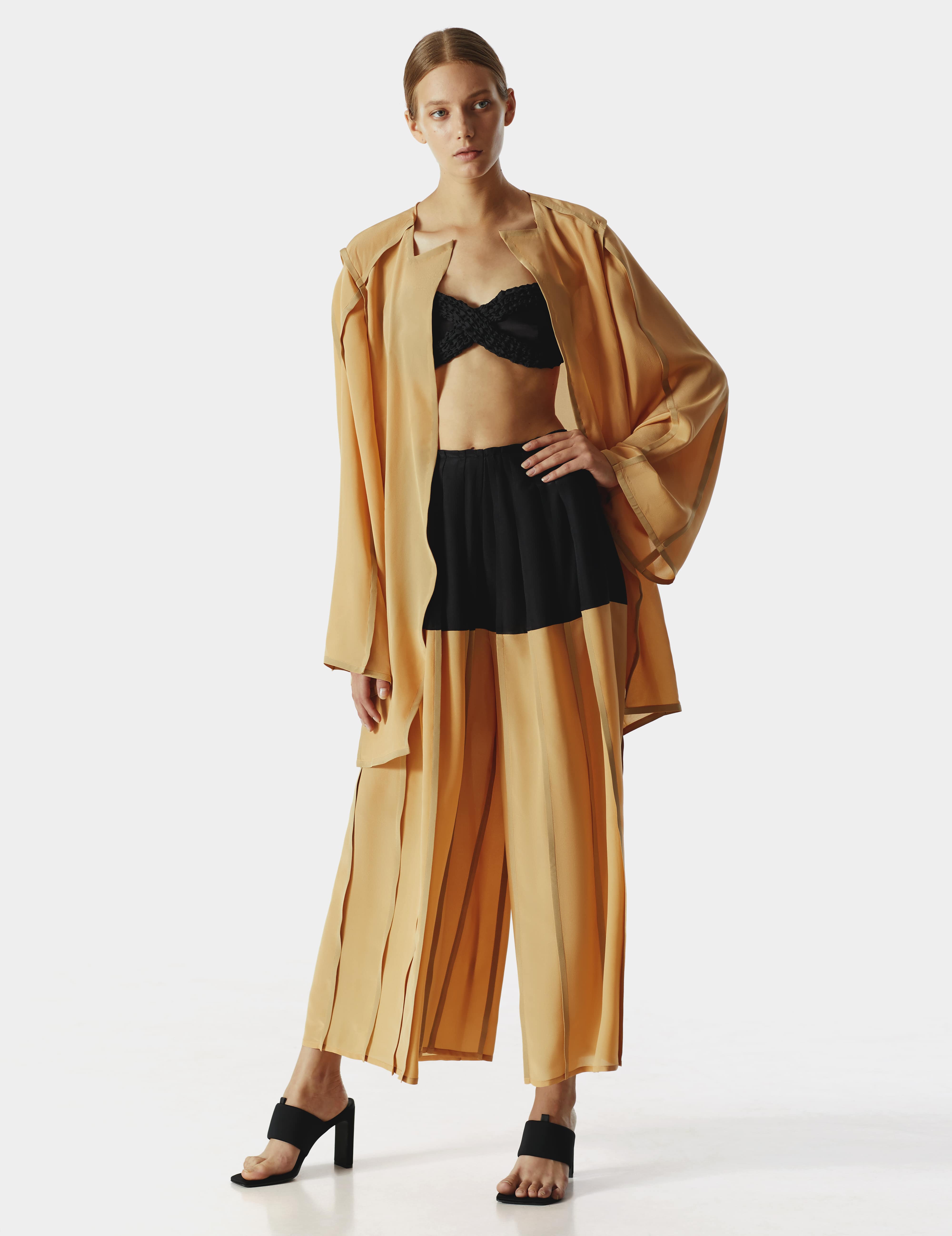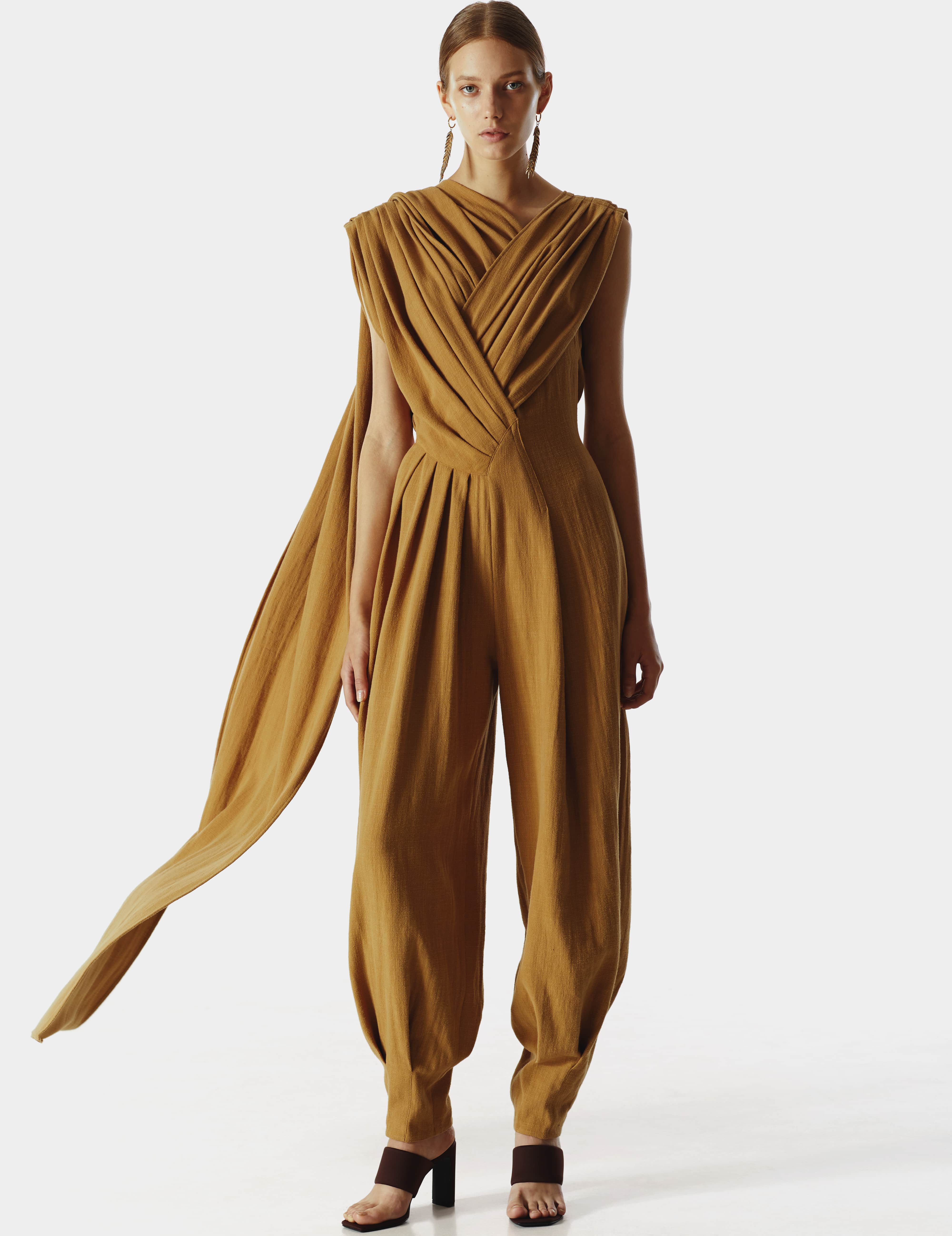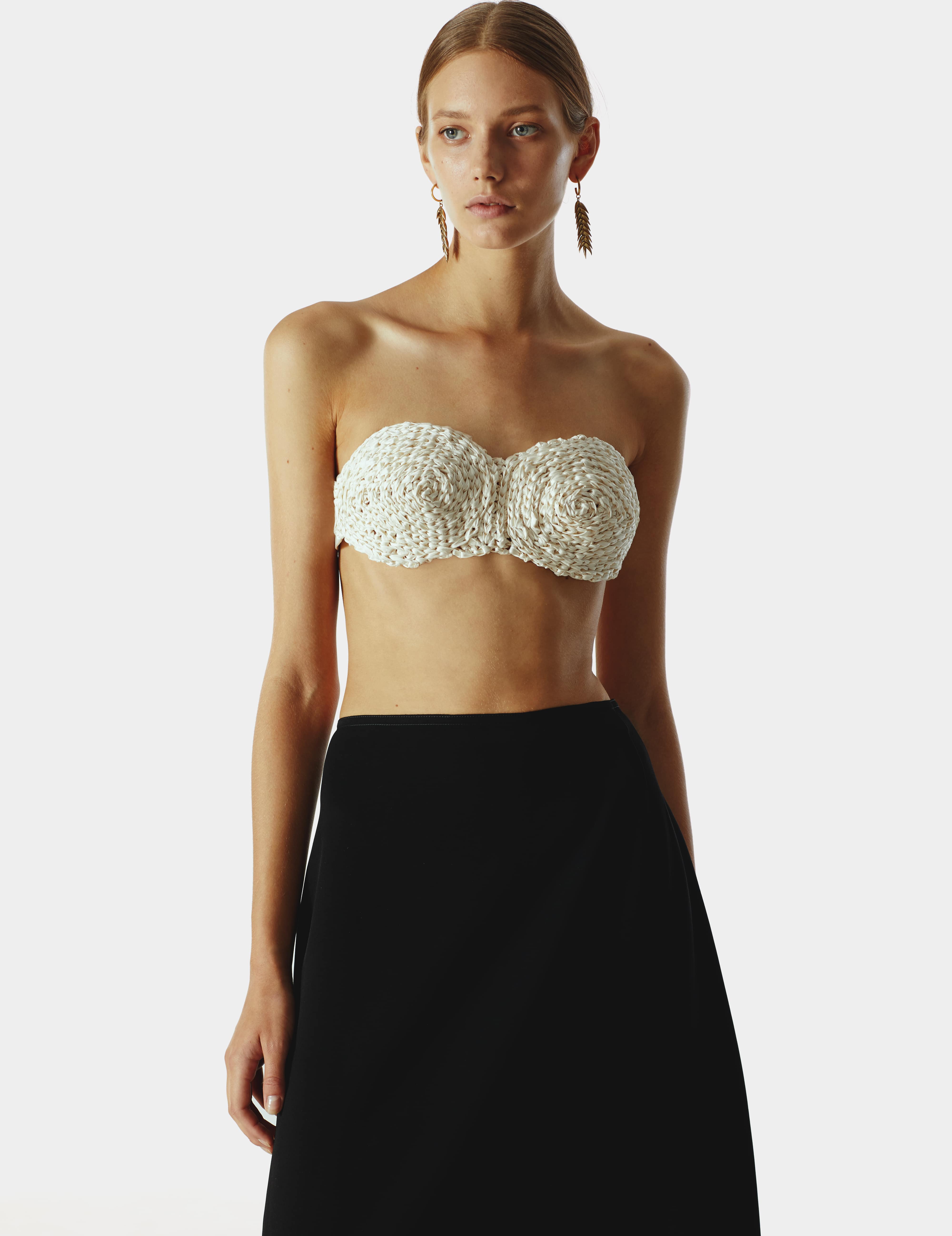 Новую коллекцию сезона весна-лето - 2020 Светлана Бевза посвятила плодородной украинской земле, спелым урожаям пшеницы — плетеные фактуры и ювелирные украшения напоминают колоски — и традиционным силуэтам украинского народного костюма. Аскетичные и утонченные костюмы, платья и плащи выглядели еще более изысканно благодаря контрастным фактурам, а общий строй лёгких нарядов дополнили знаковые белые платья Bevza.