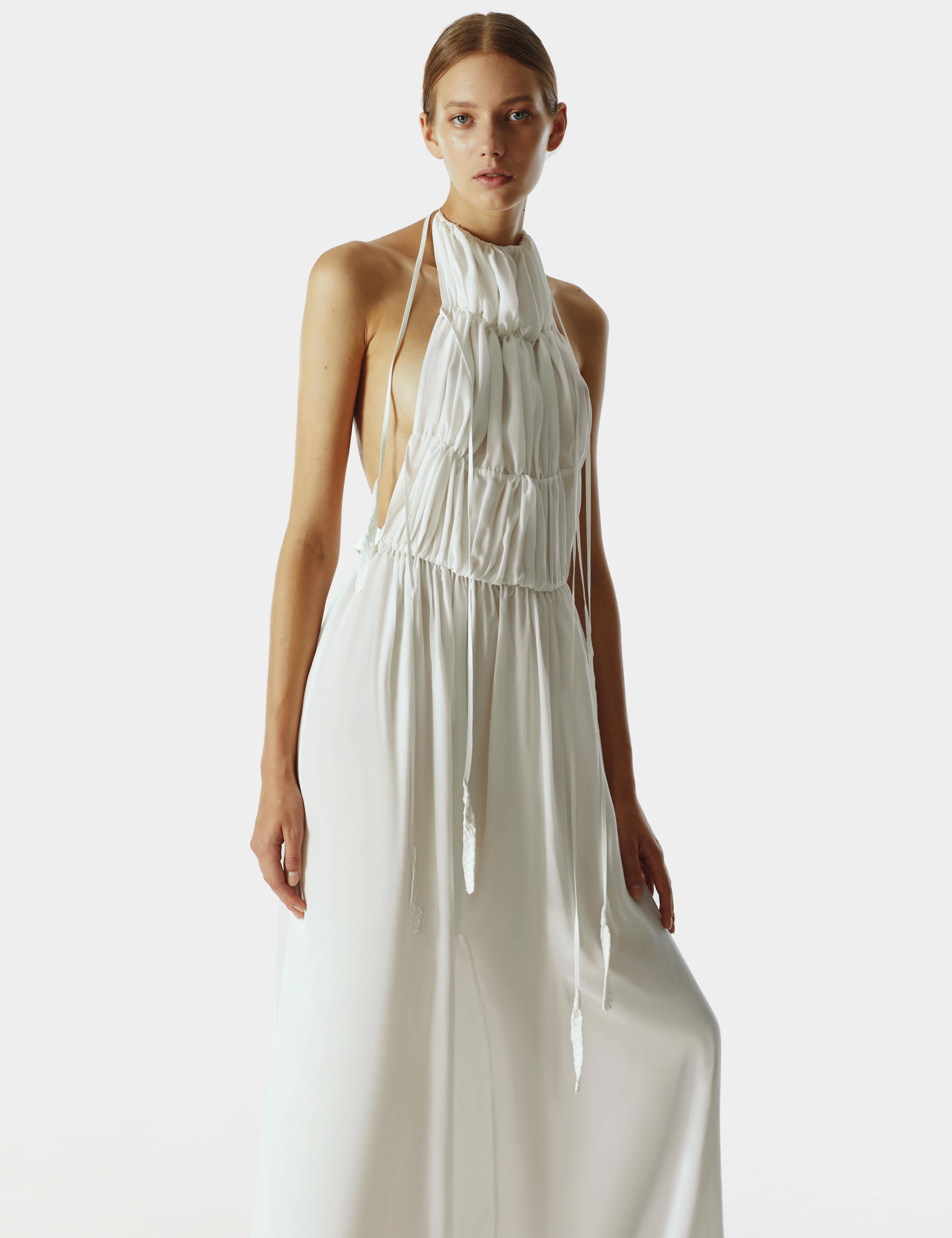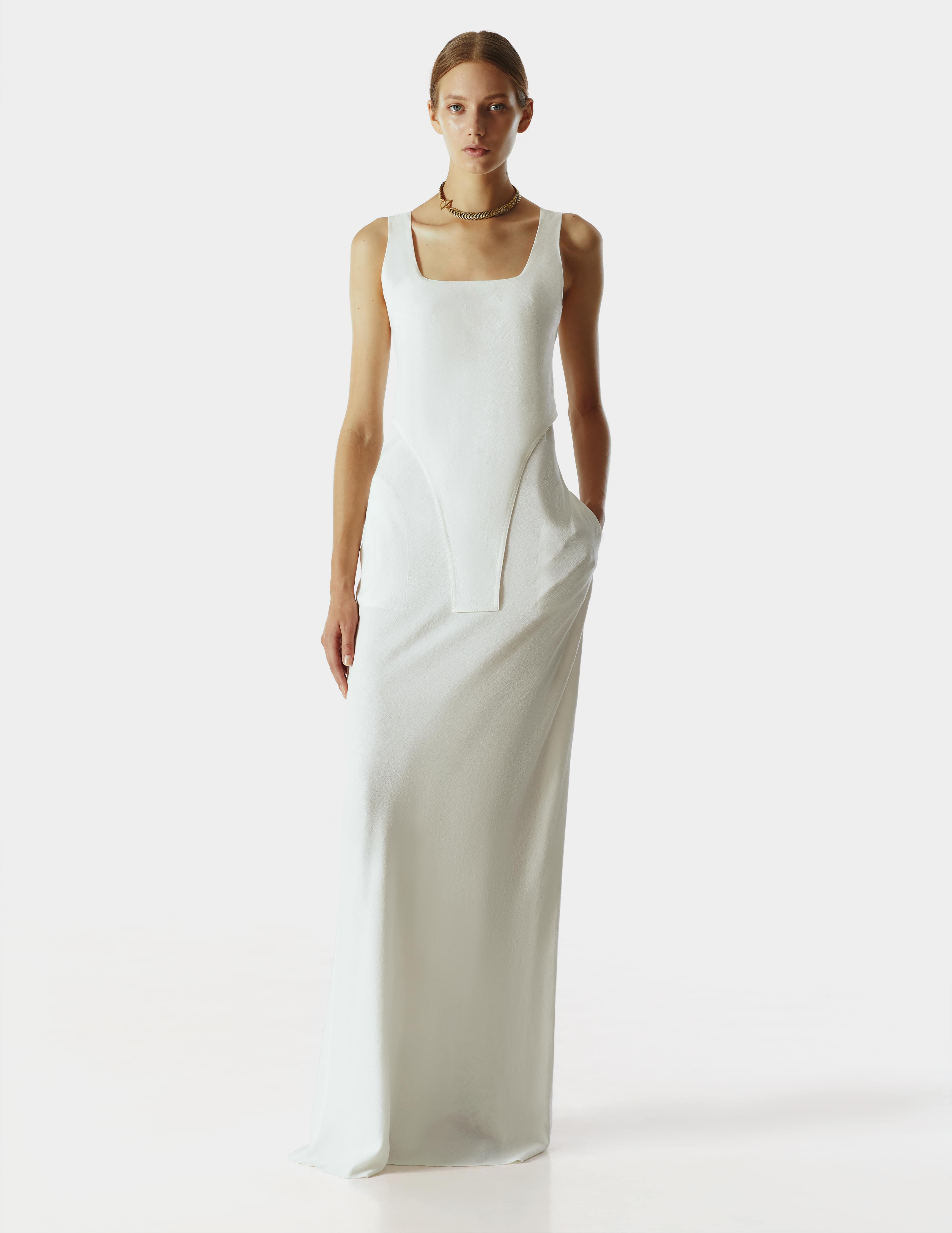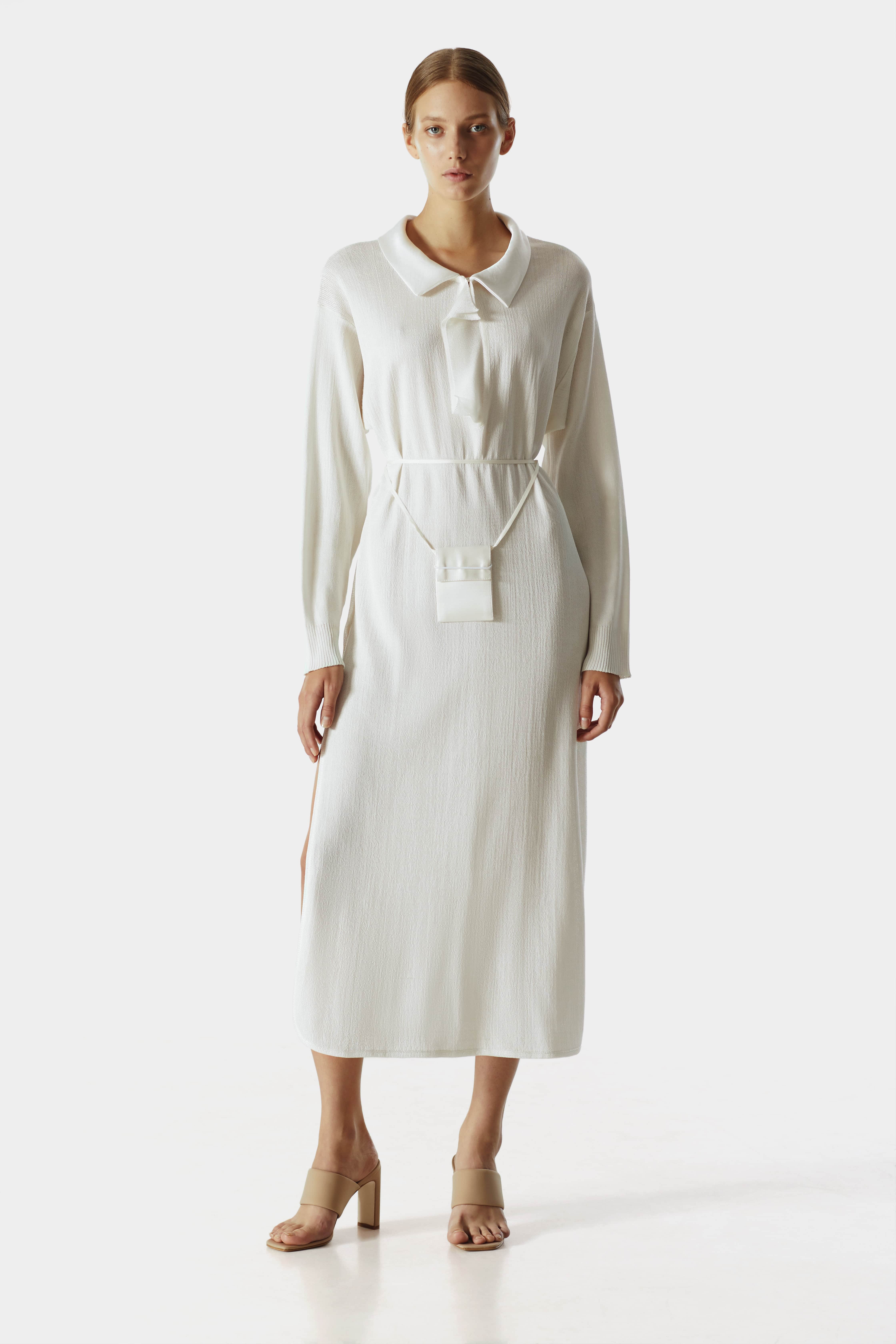 Новую коллекцию сезона весна-лето - 2020 Светлана Бевза посвятила плодородной украинской земле, спелым урожаям пшеницы — плетеные фактуры и ювелирные украшения напоминают колоски — и традиционным силуэтам украинского народного костюма. Аскетичные и утонченные костюмы, платья и плащи выглядели еще более изысканно благодаря контрастным фактурам, а общий строй лёгких нарядов дополнили знаковые белые платья Bevza.