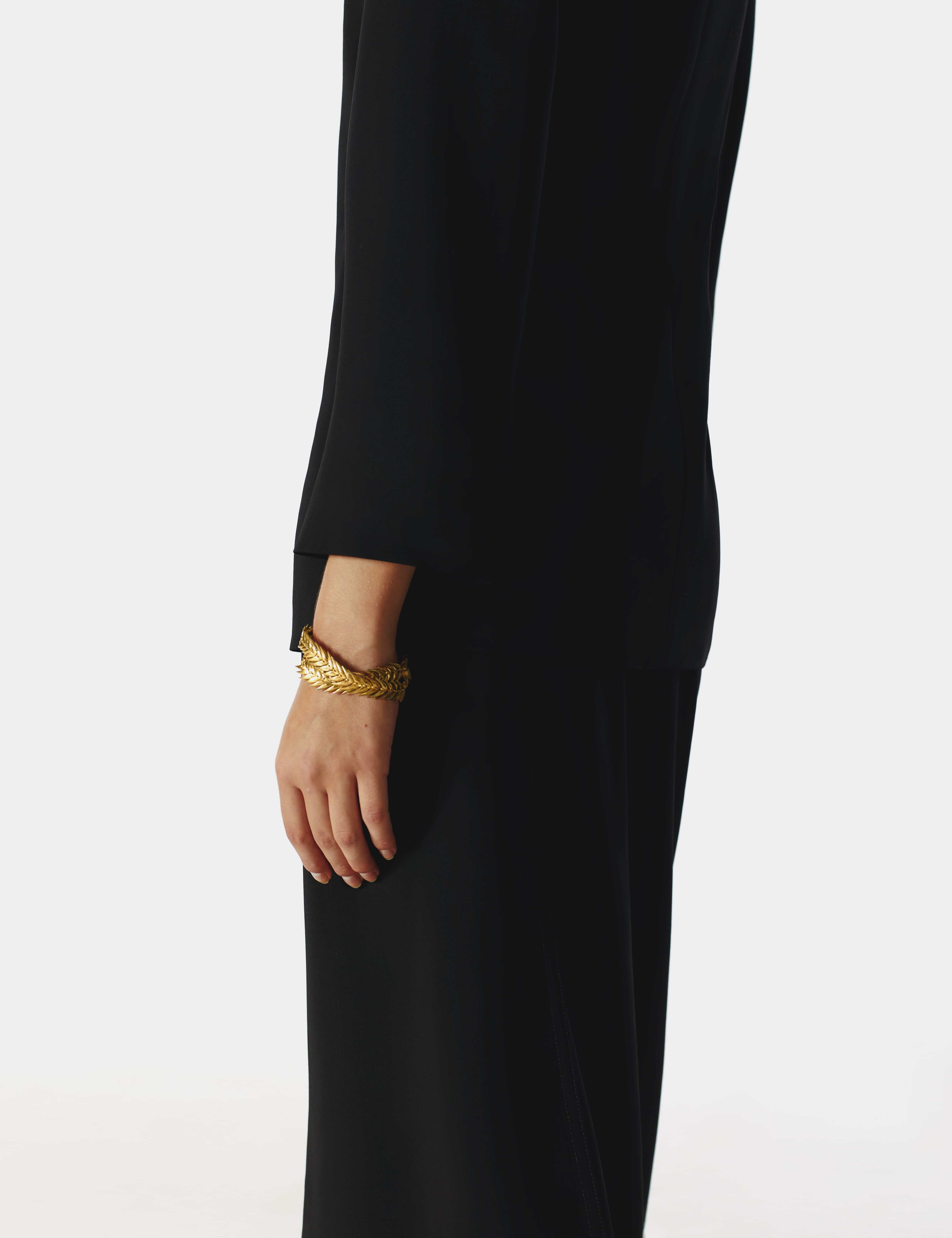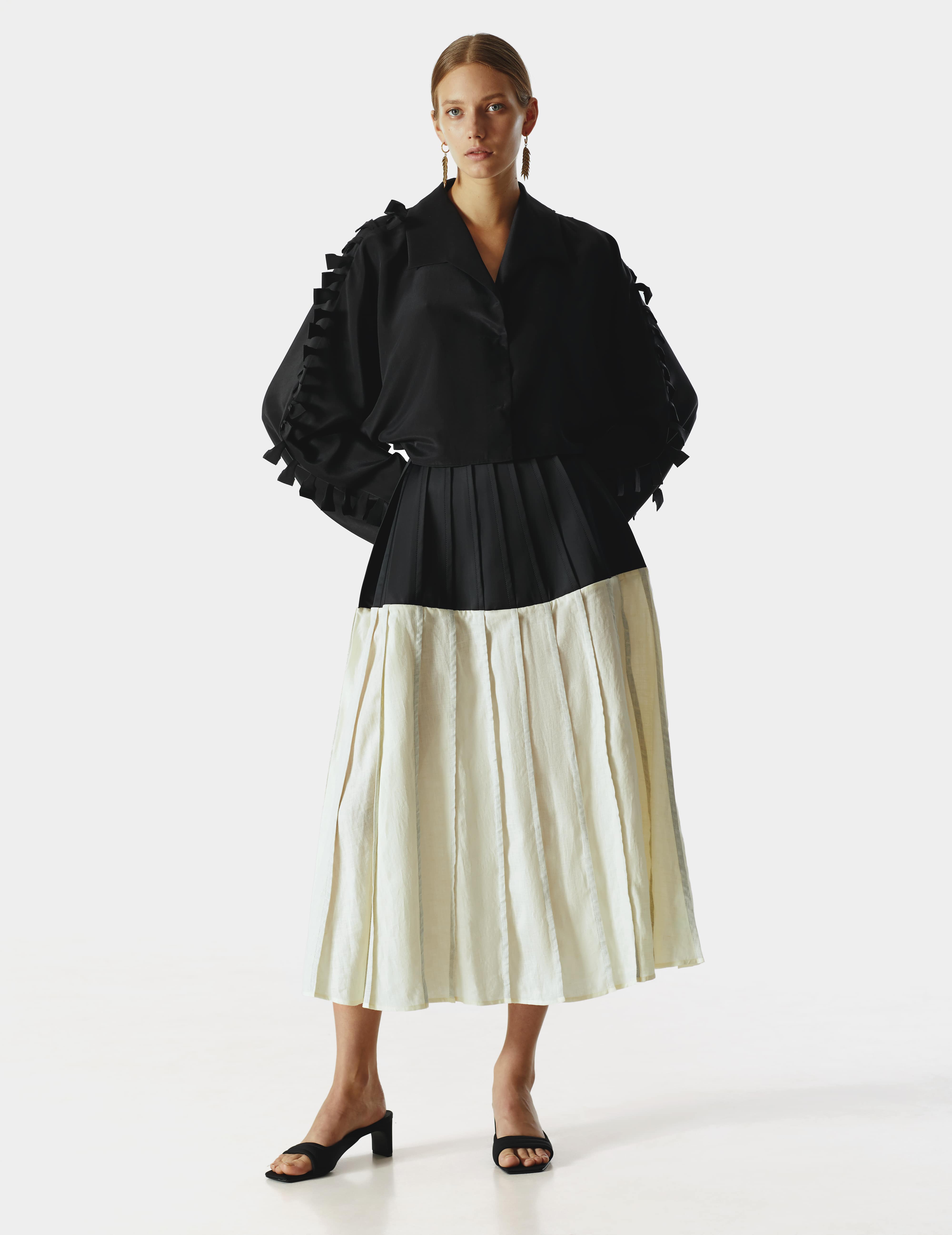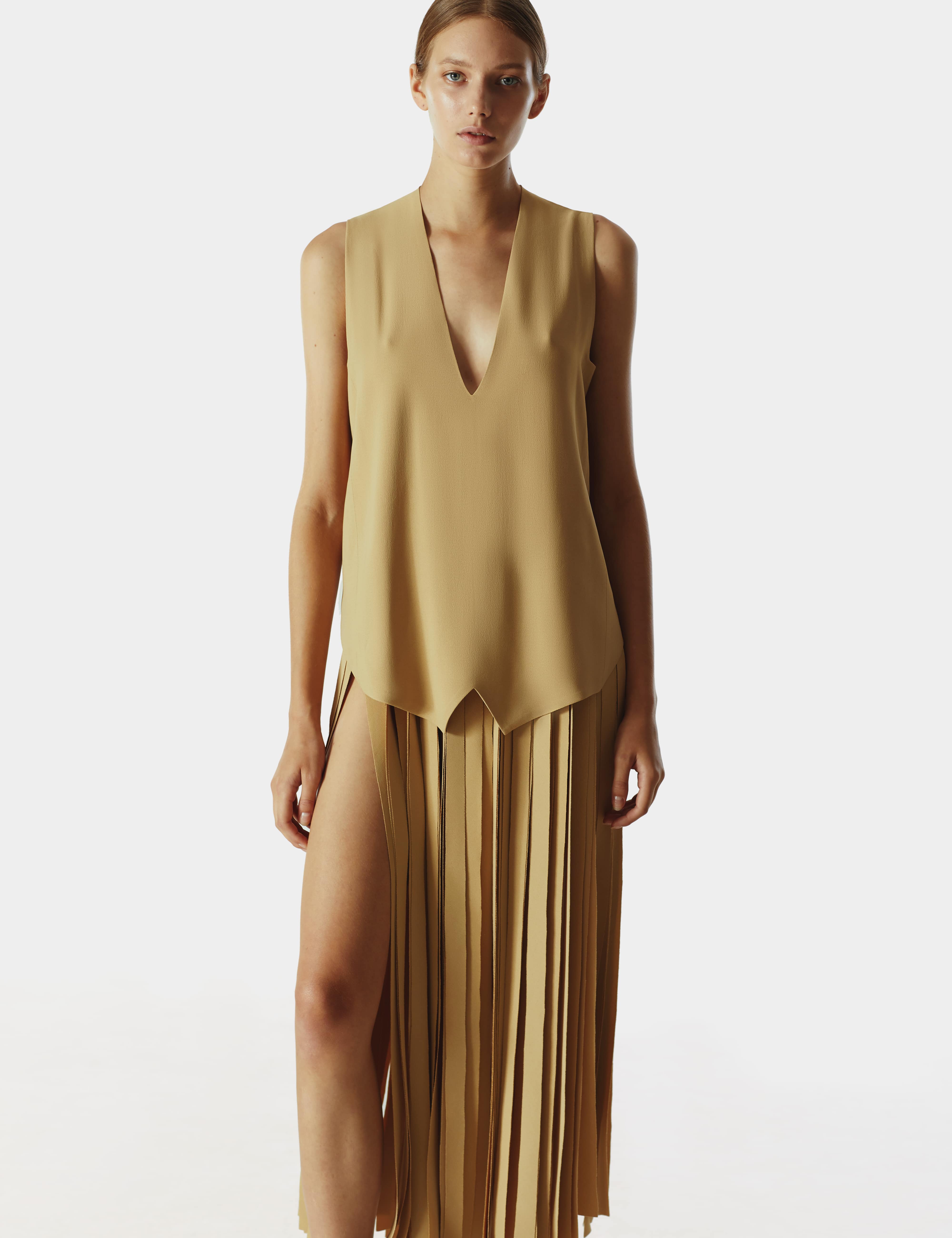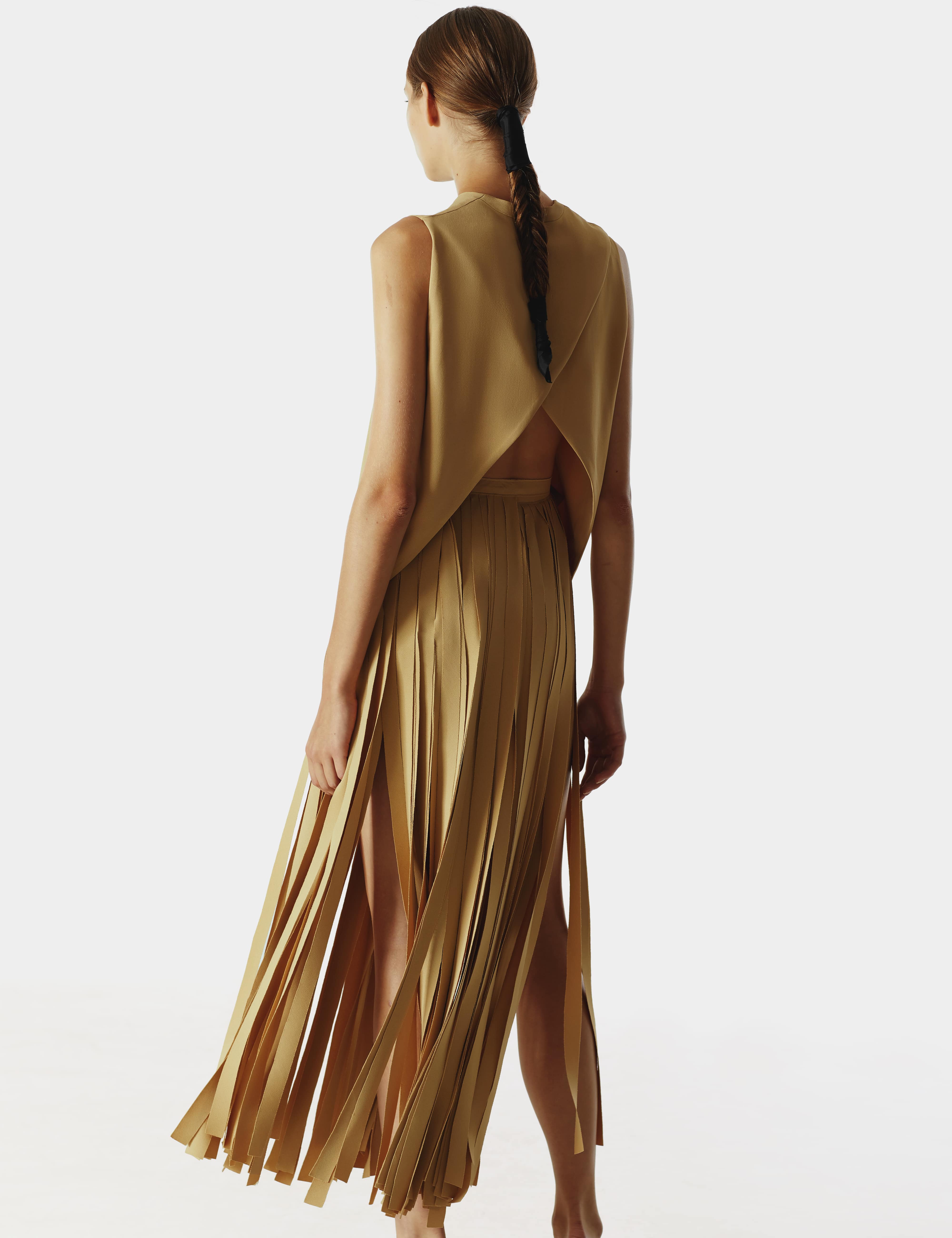 Новую коллекцию сезона весна-лето - 2020 Светлана Бевза посвятила плодородной украинской земле, спелым урожаям пшеницы — плетеные фактуры и ювелирные украшения напоминают колоски — и традиционным силуэтам украинского народного костюма. Аскетичные и утонченные костюмы, платья и плащи выглядели еще более изысканно благодаря контрастным фактурам, а общий строй лёгких нарядов дополнили знаковые белые платья Bevza.