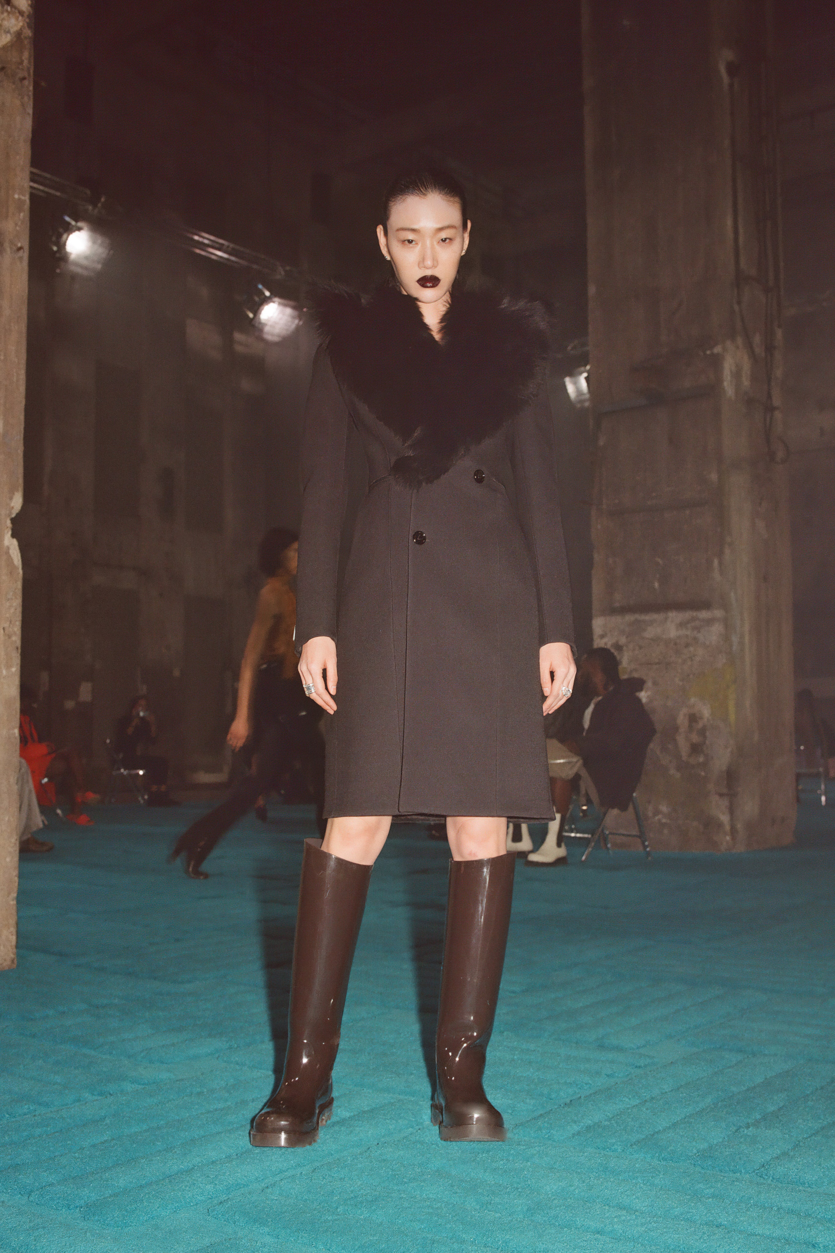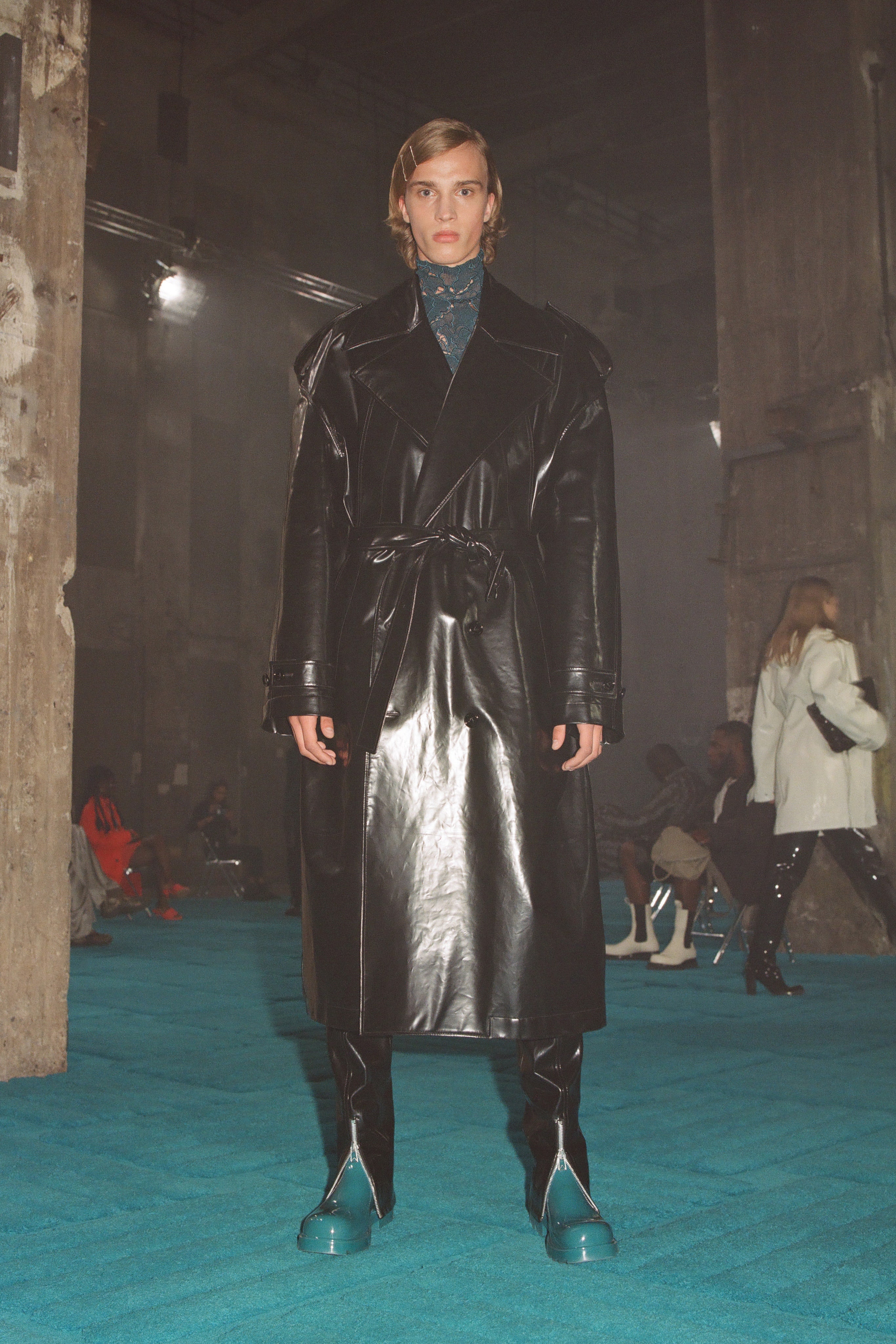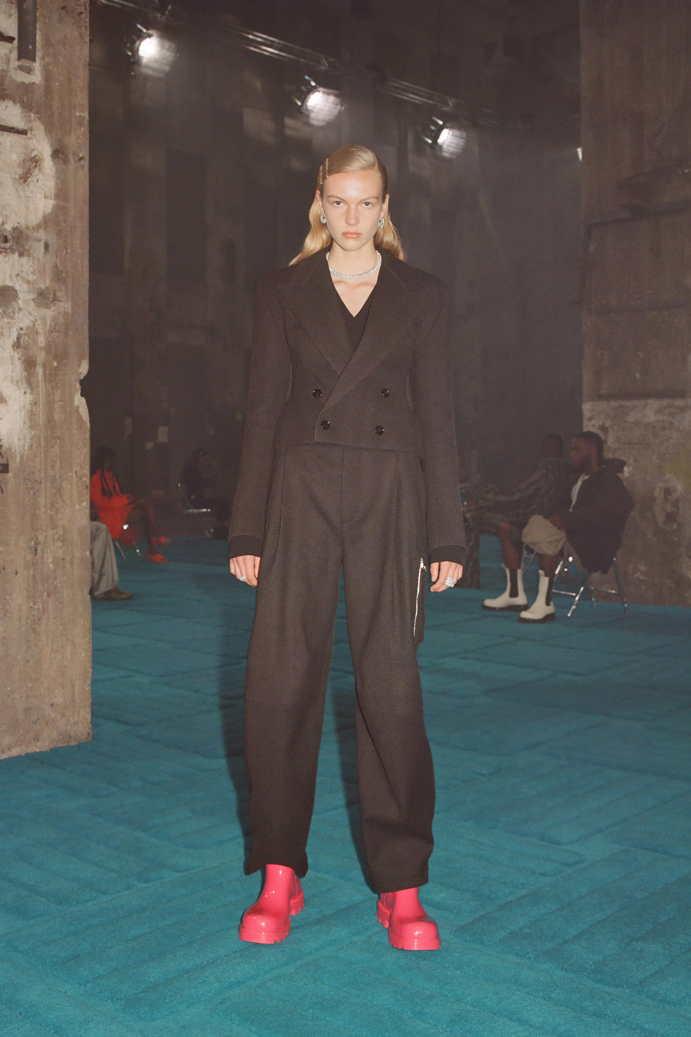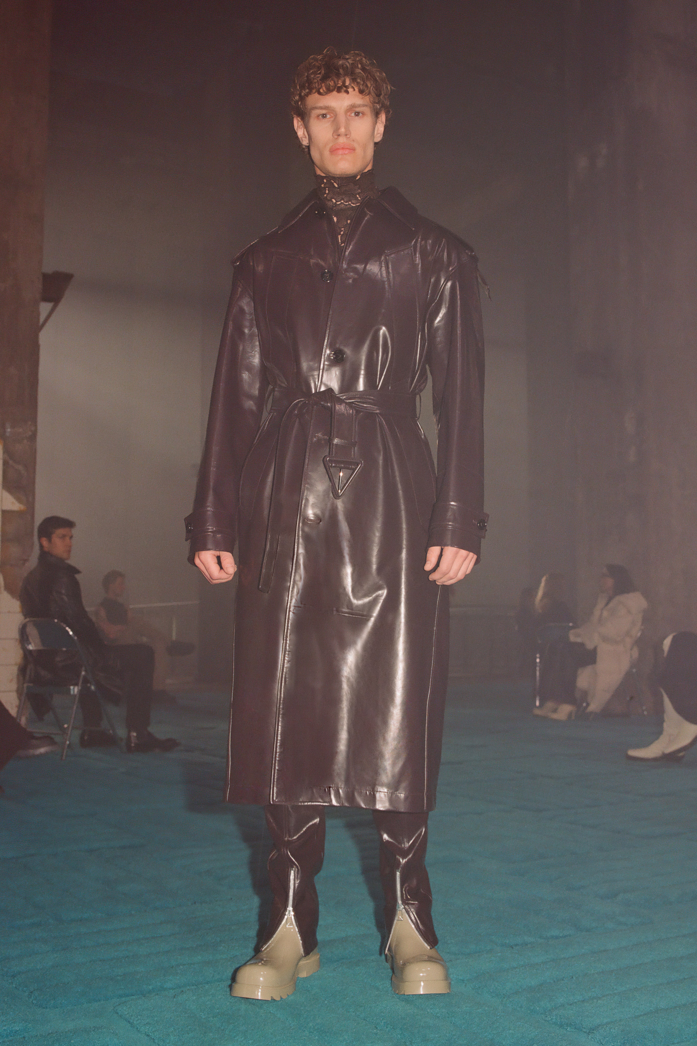 В осенне-зимнюю коллекцию Bottega Veneta вошли шубы из искусственного меха, пальто, костюмы, кожаные тренчи, свитера с объемными рукавами и платья из плотного коттона с перьями, из кашемира со стеклярусом и кожи. Среди обуви — сапоги-трубы (самые интересные — с принтом зебры!), мюли, лоферы и броги.