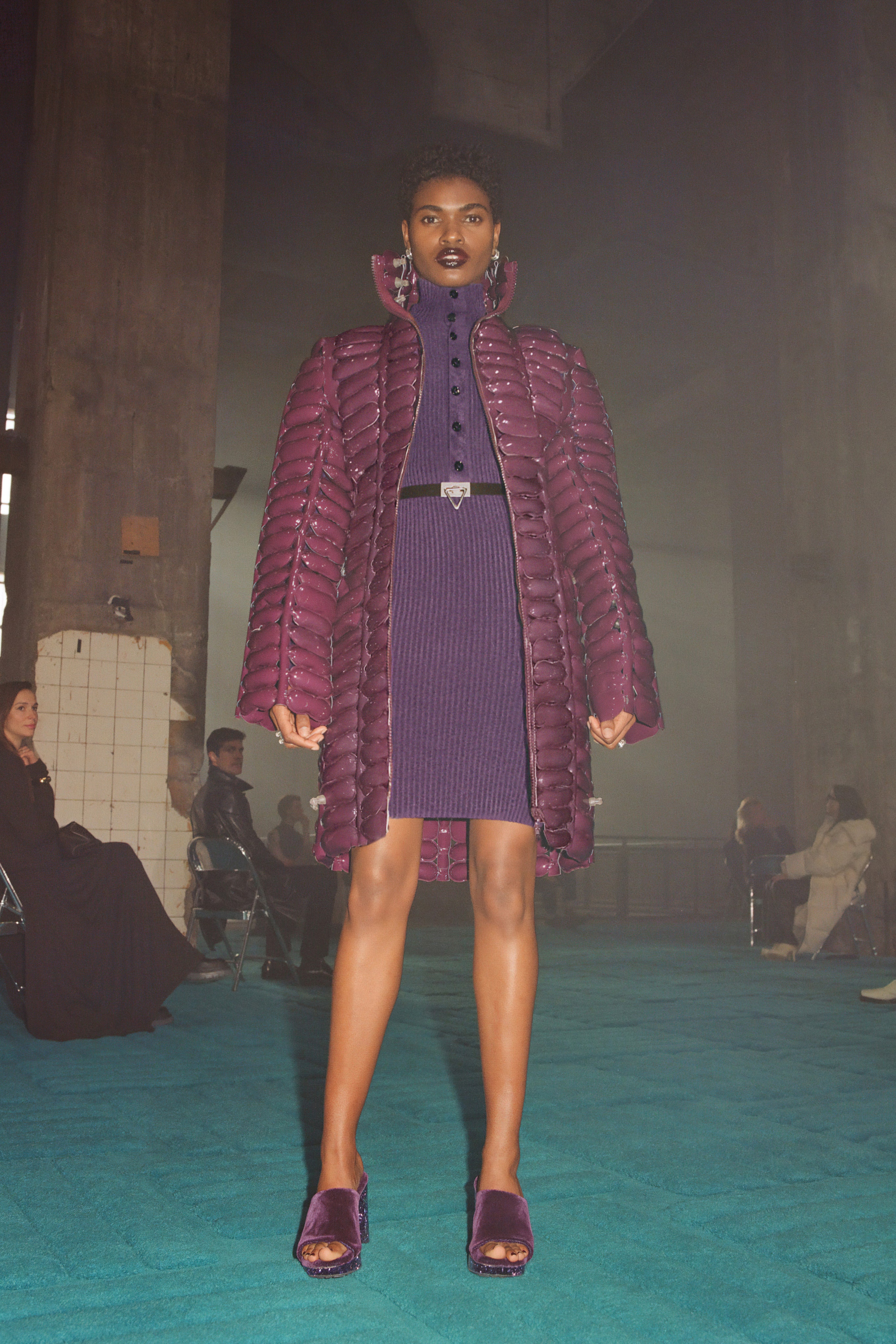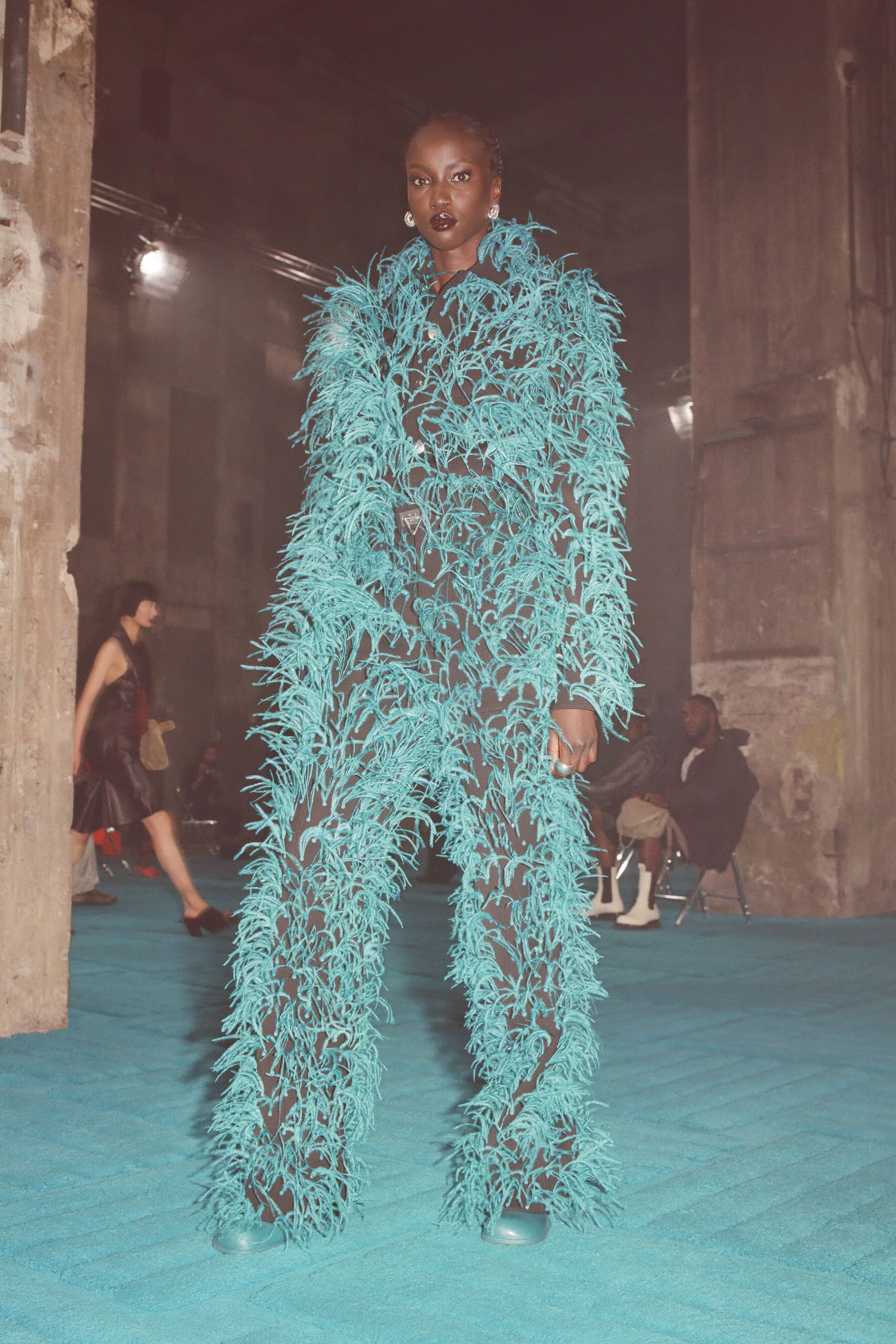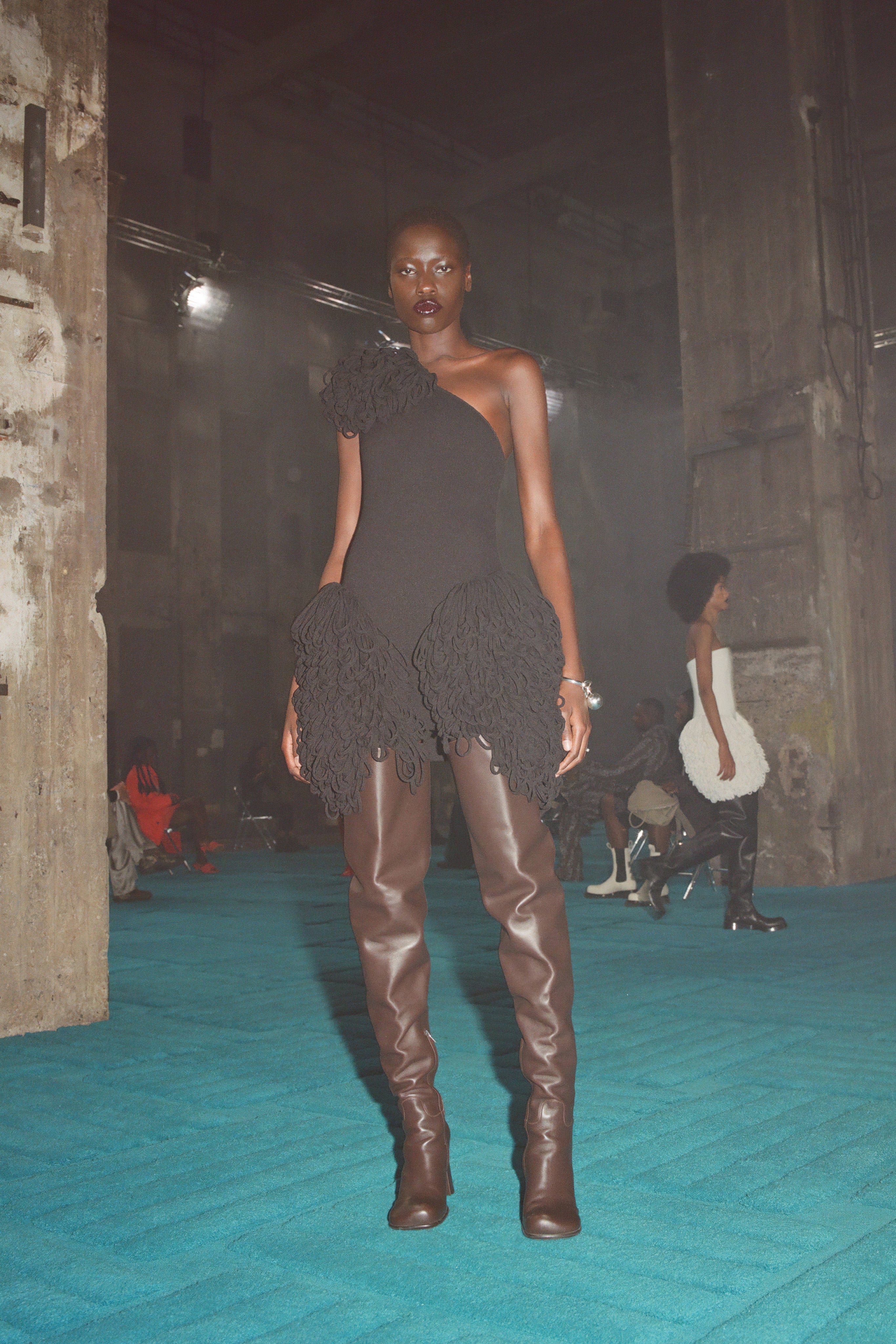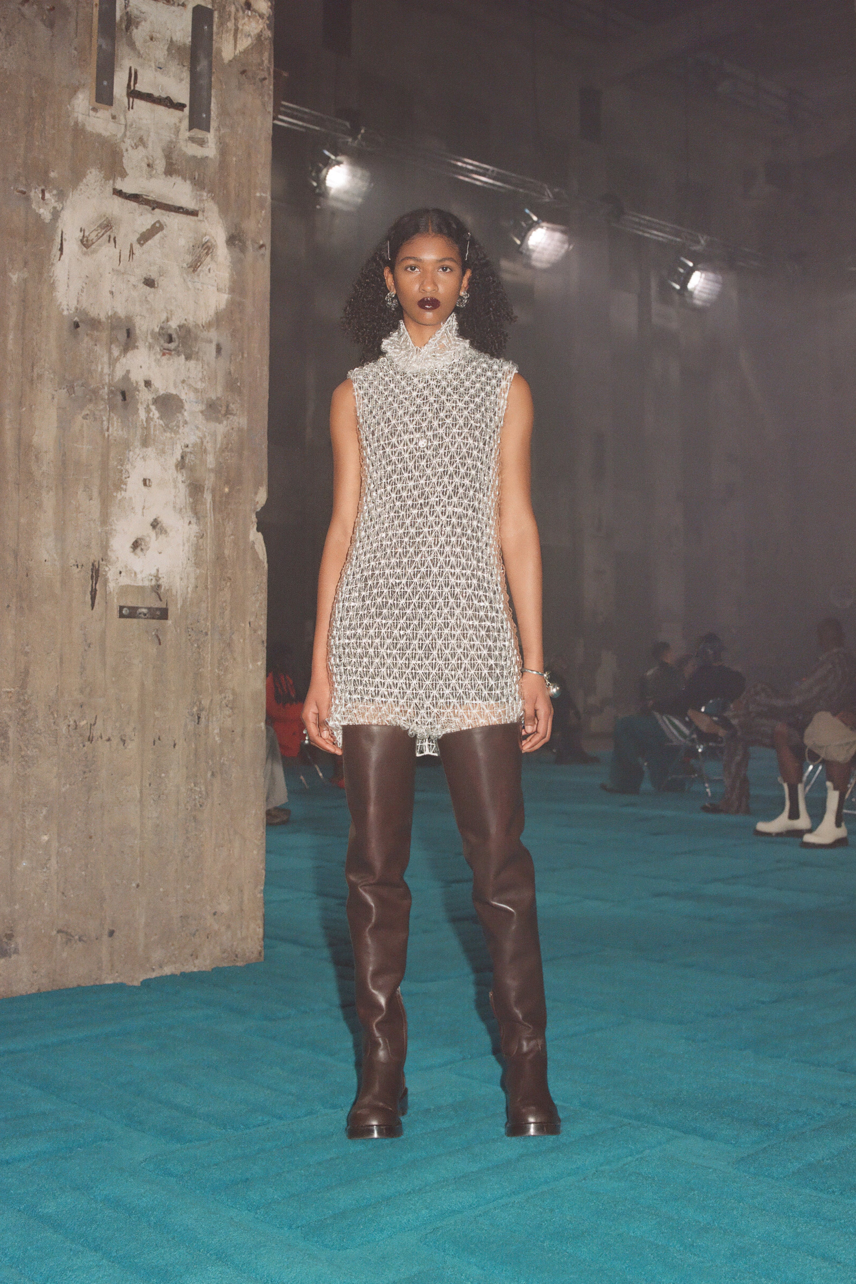 В осенне-зимнюю коллекцию Bottega Veneta вошли шубы из искусственного меха, пальто, костюмы, кожаные тренчи, свитера с объемными рукавами и платья из плотного коттона с перьями, из кашемира со стеклярусом и кожи. Среди обуви — сапоги-трубы (самые интересные — с принтом зебры!), мюли, лоферы и броги.
