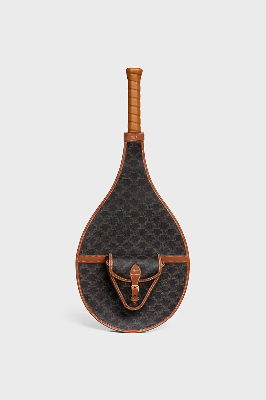 Також в колекції з’явився й інвентар для тенісу. Ракетка, елементи якої виконані з ніжної телячої шкіри, доповнюється фірмовим принтом Triomphe бренду Celine. Серед інших аксесуарів капсули – кепки, сумки, ремені, браслети та сонцезахисні окуляри.