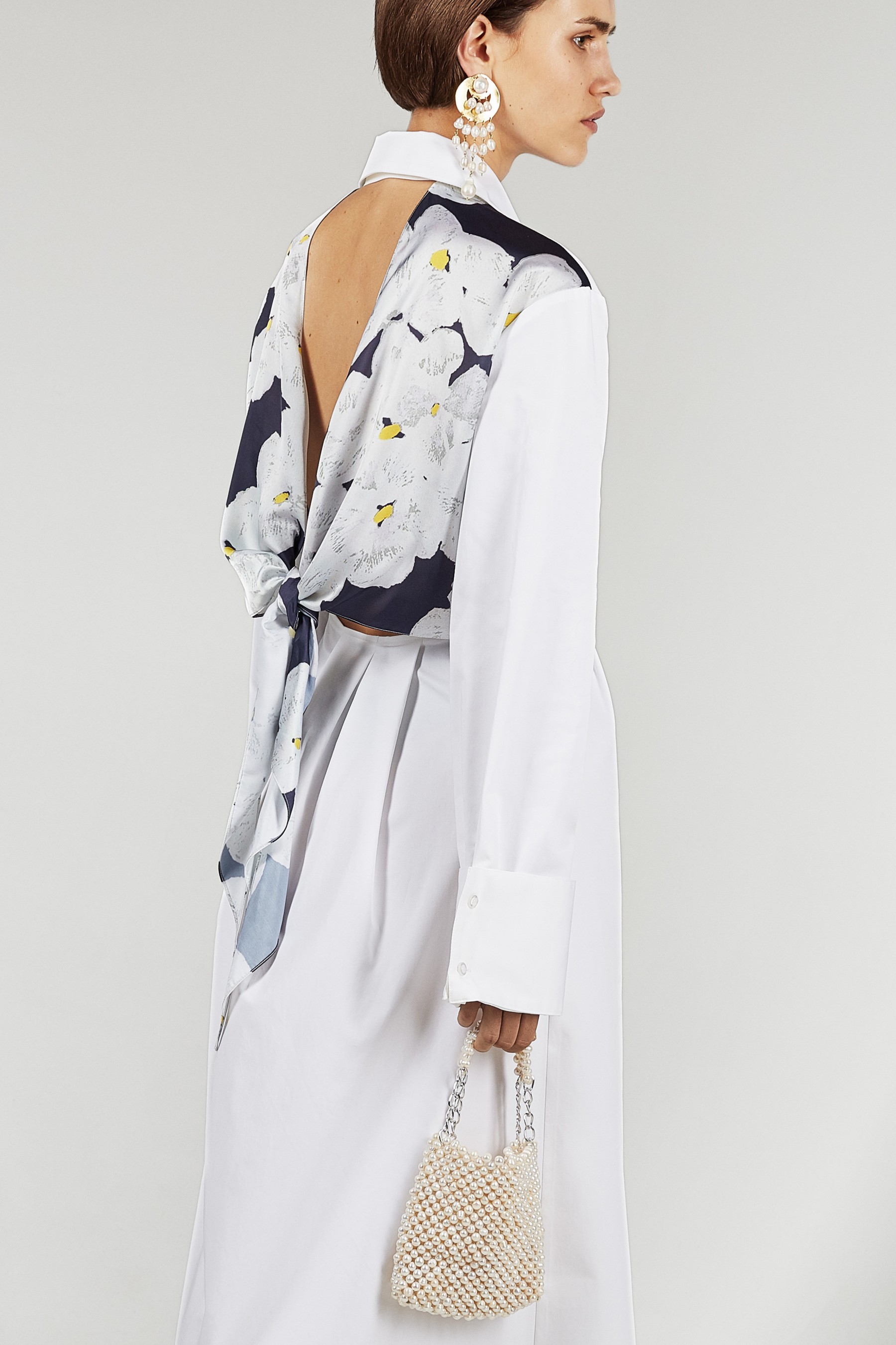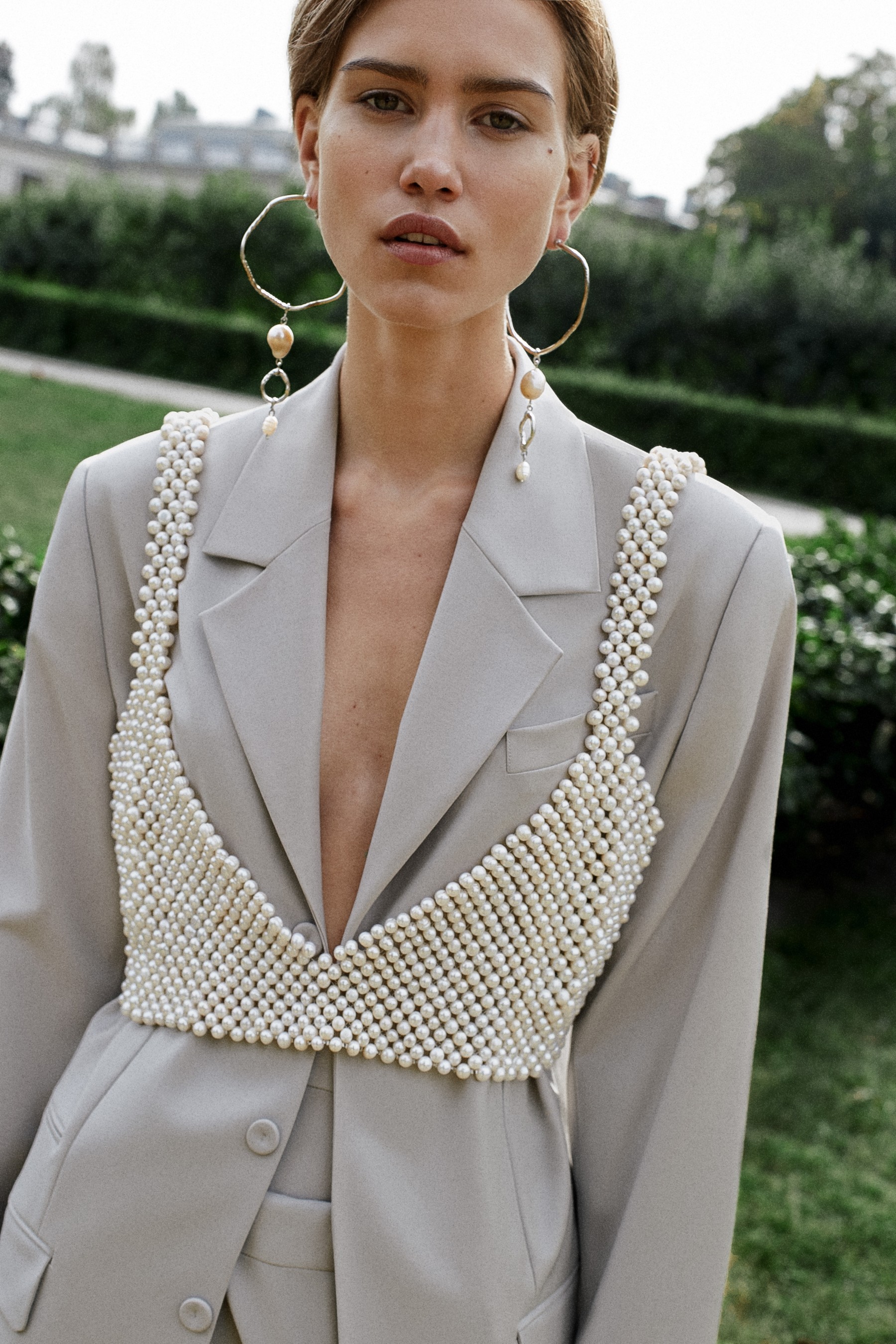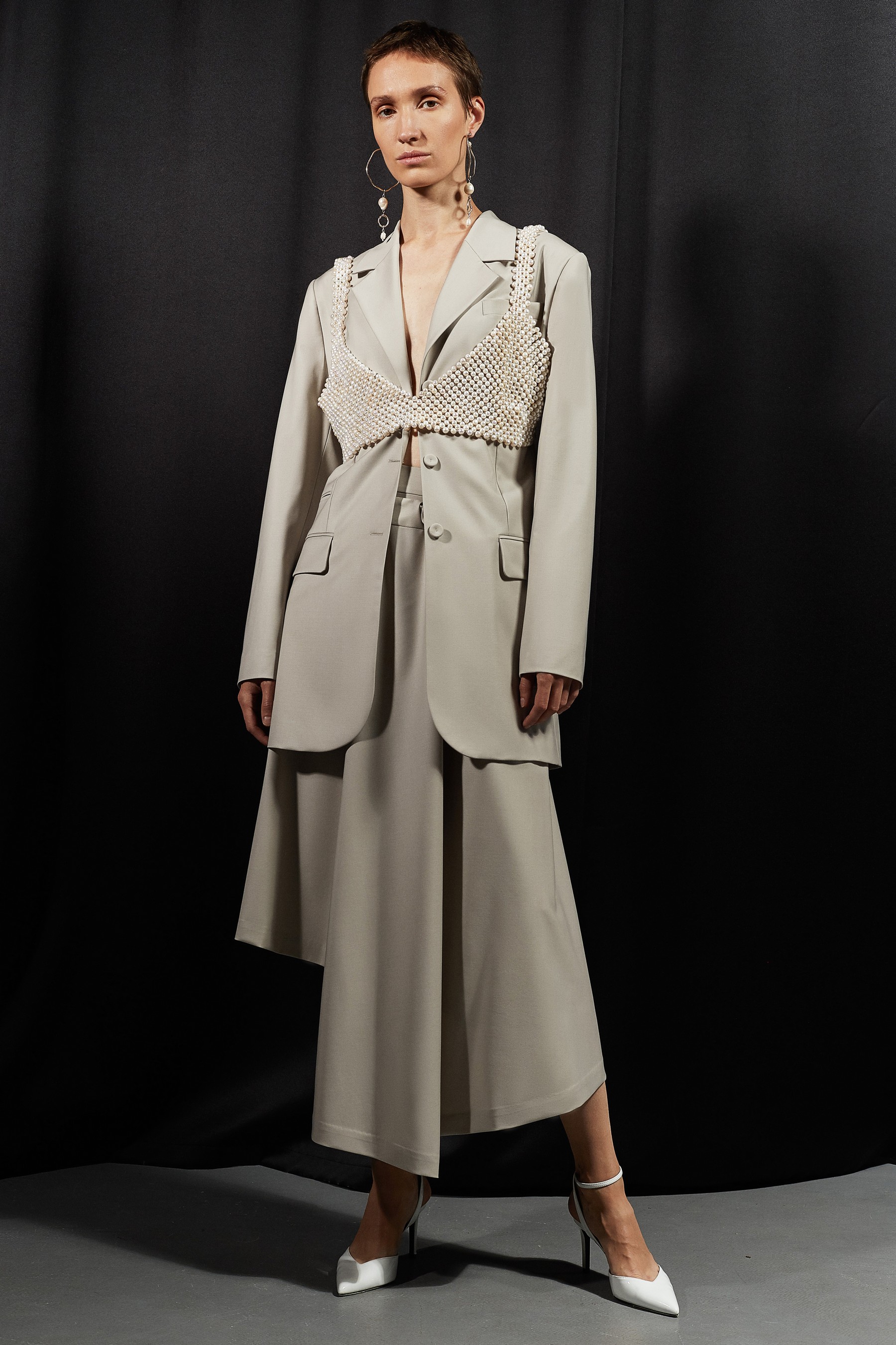 В новом сезоне Антон Якшин и Дима Чаюн продолжили сотрудничать с ювелирными дизайнерами для создания украшений. Серьги, браслеты и колье с необработанным жемчугом были разработаны в коллаборации с Сергеем Жерновым, а топ из жемчуга, напоминающий кольчугу, создала Елена Романова.