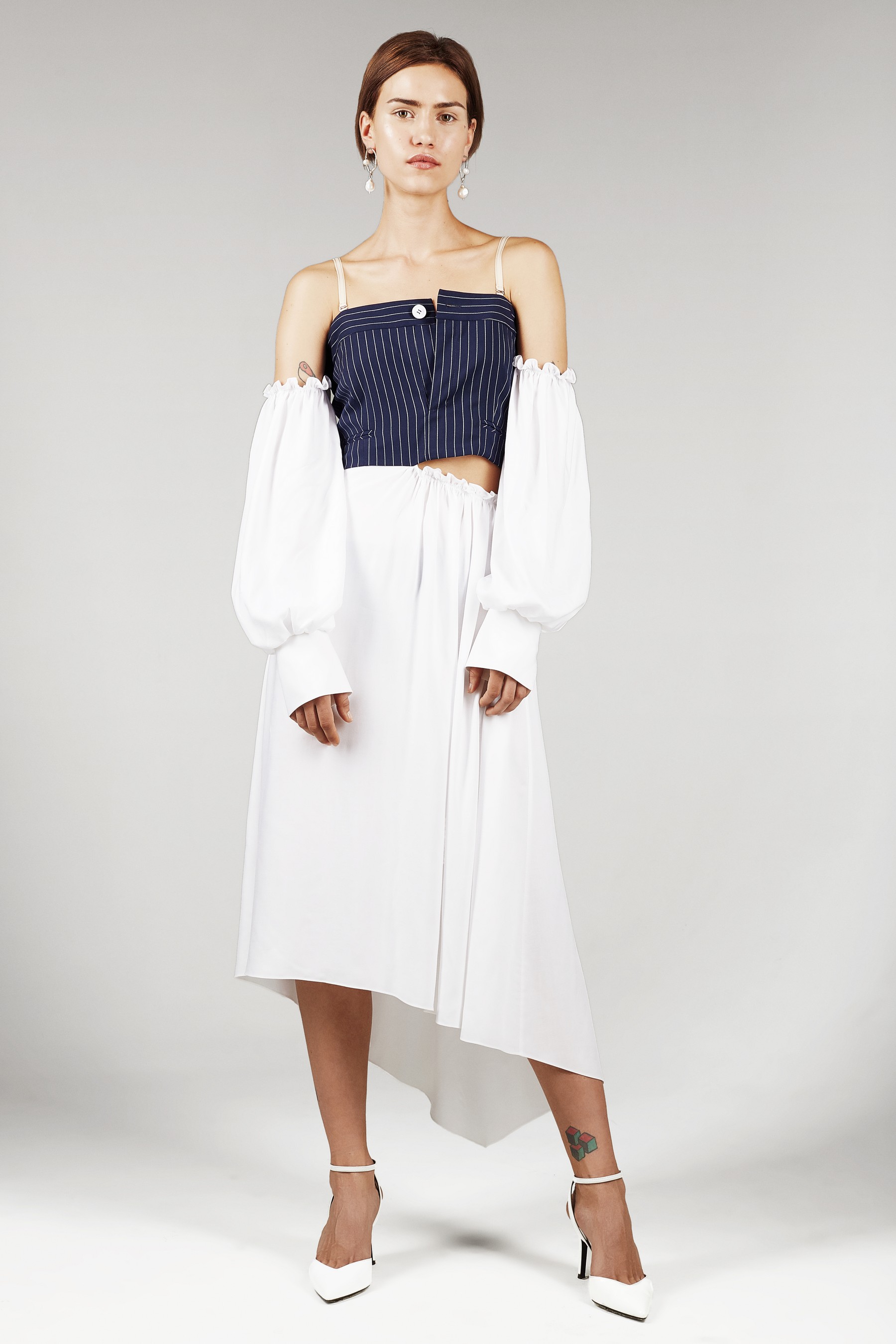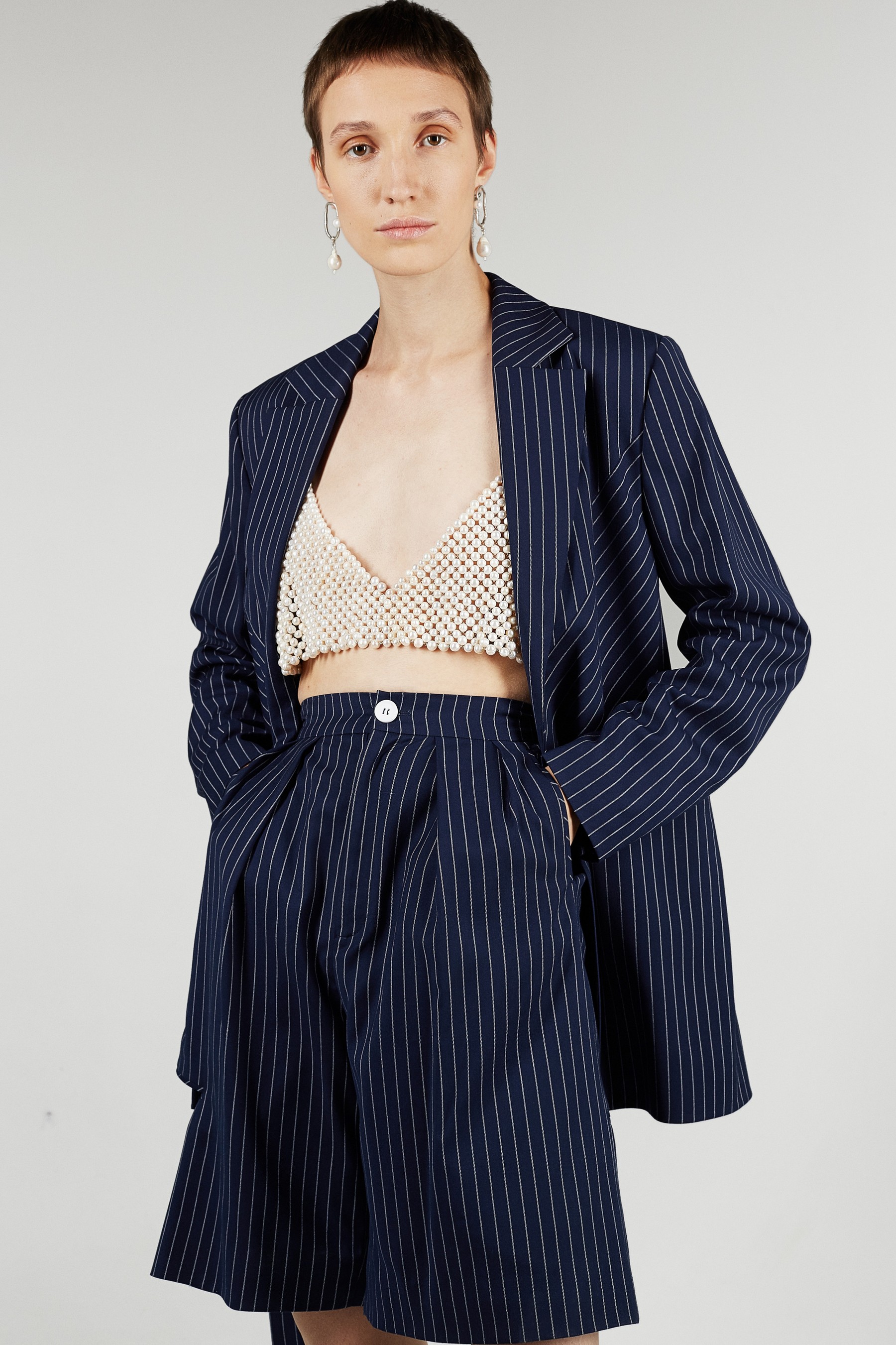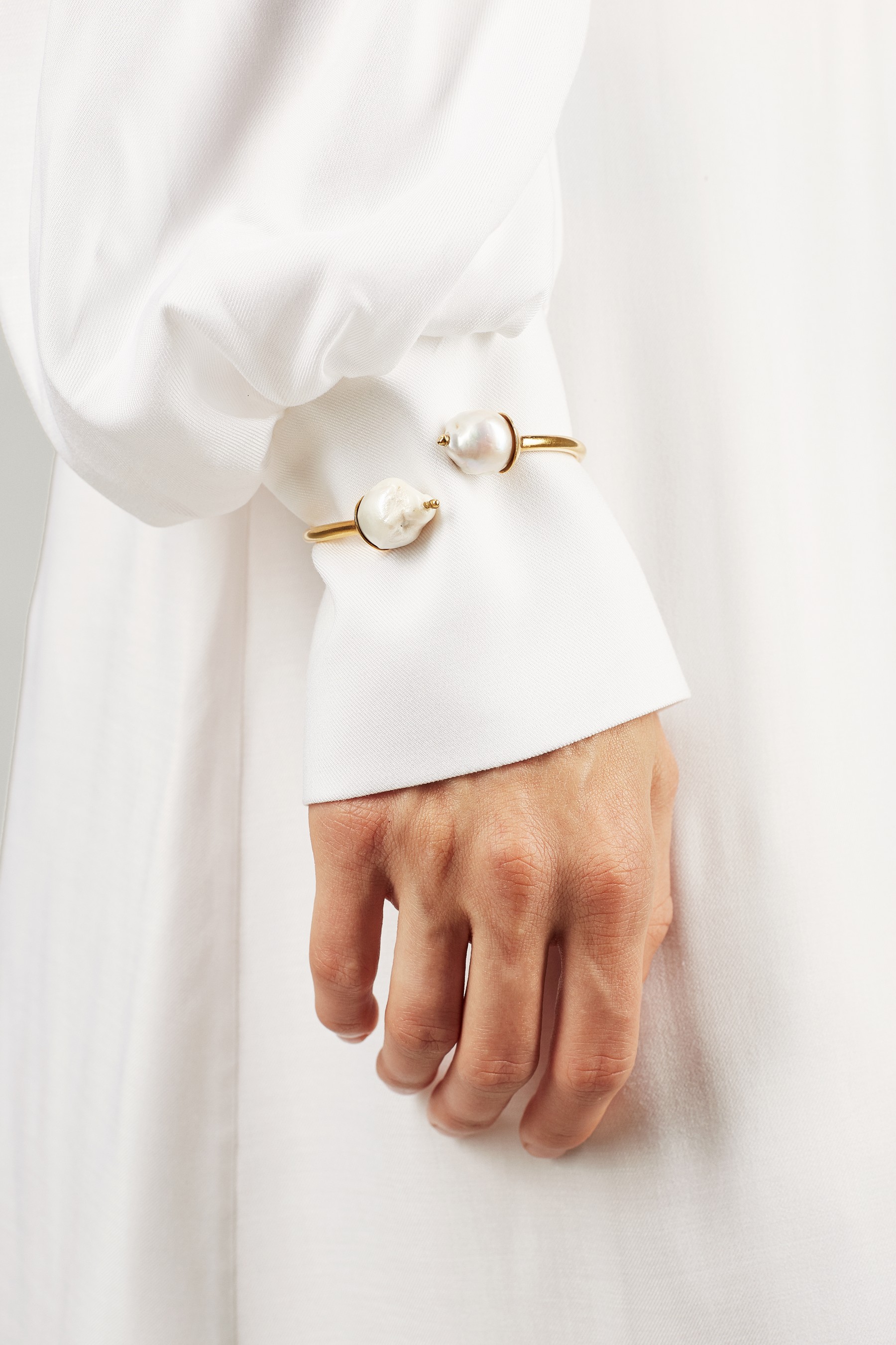 В новом сезоне Антон Якшин и Дима Чаюн продолжили сотрудничать с ювелирными дизайнерами для создания украшений. Серьги, браслеты и колье с необработанным жемчугом были разработаны в коллаборации с Сергеем Жерновым, а топ из жемчуга, напоминающий кольчугу, создала Елена Романова.