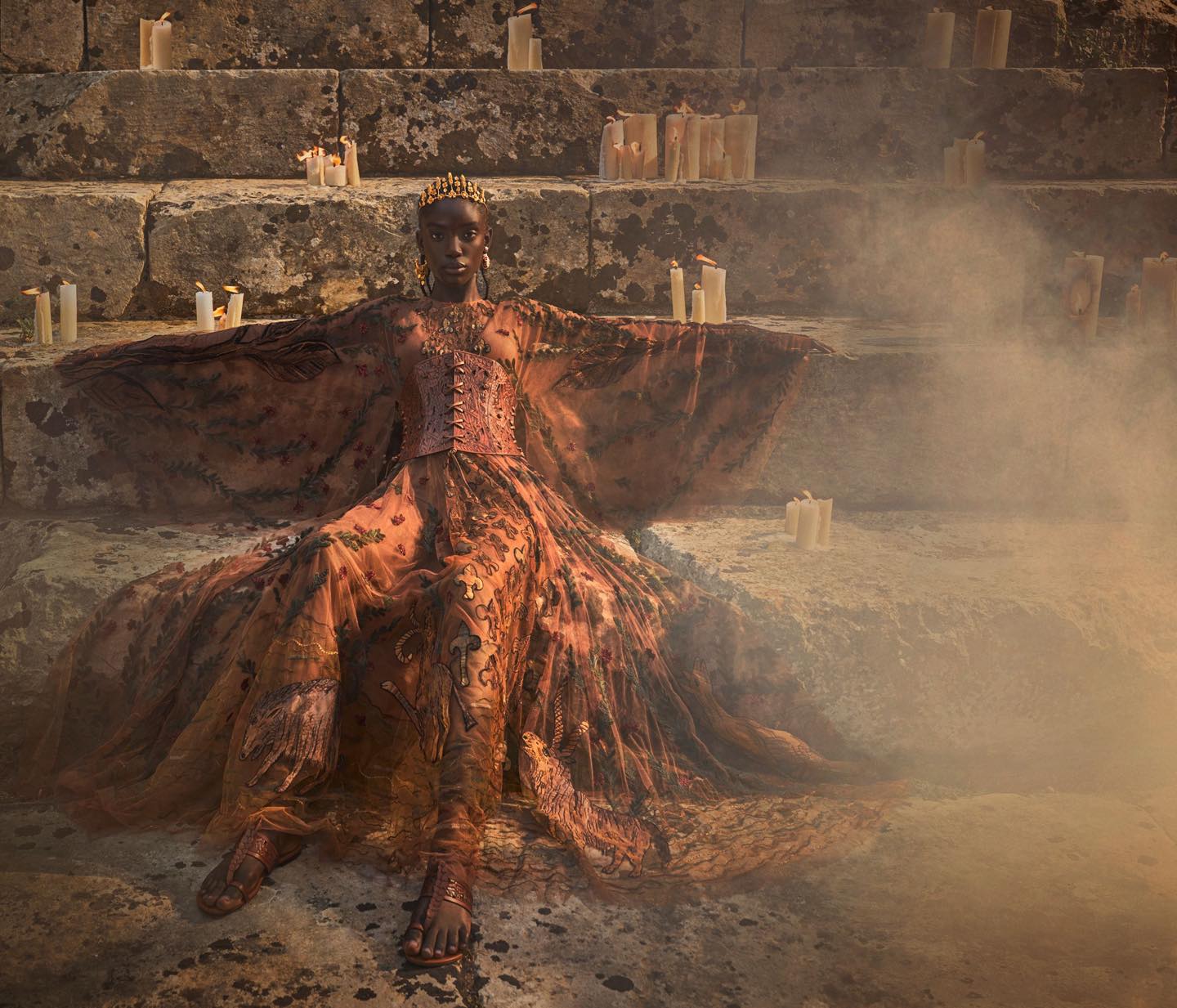 Мария Грация Кьюри продолжает традицию, установленную в доме Dior несколько сезонов назад, — отдает дань родной Италии. Круизная кампания снималась среди пейзажей Лечче. Сама дизайнер утверждает, что коллекция воспевает память, традиции, ценности и культуру ремесленного мастерства, а также магию региона Пулья, где всё еще сильны ритуалы и фольклорный контекст. В коллекцию вошли пестрые "разлетные" платья и присобранные топы, кожаные корсеты на шнуровке и расшитые красочными аппликациями юбки.