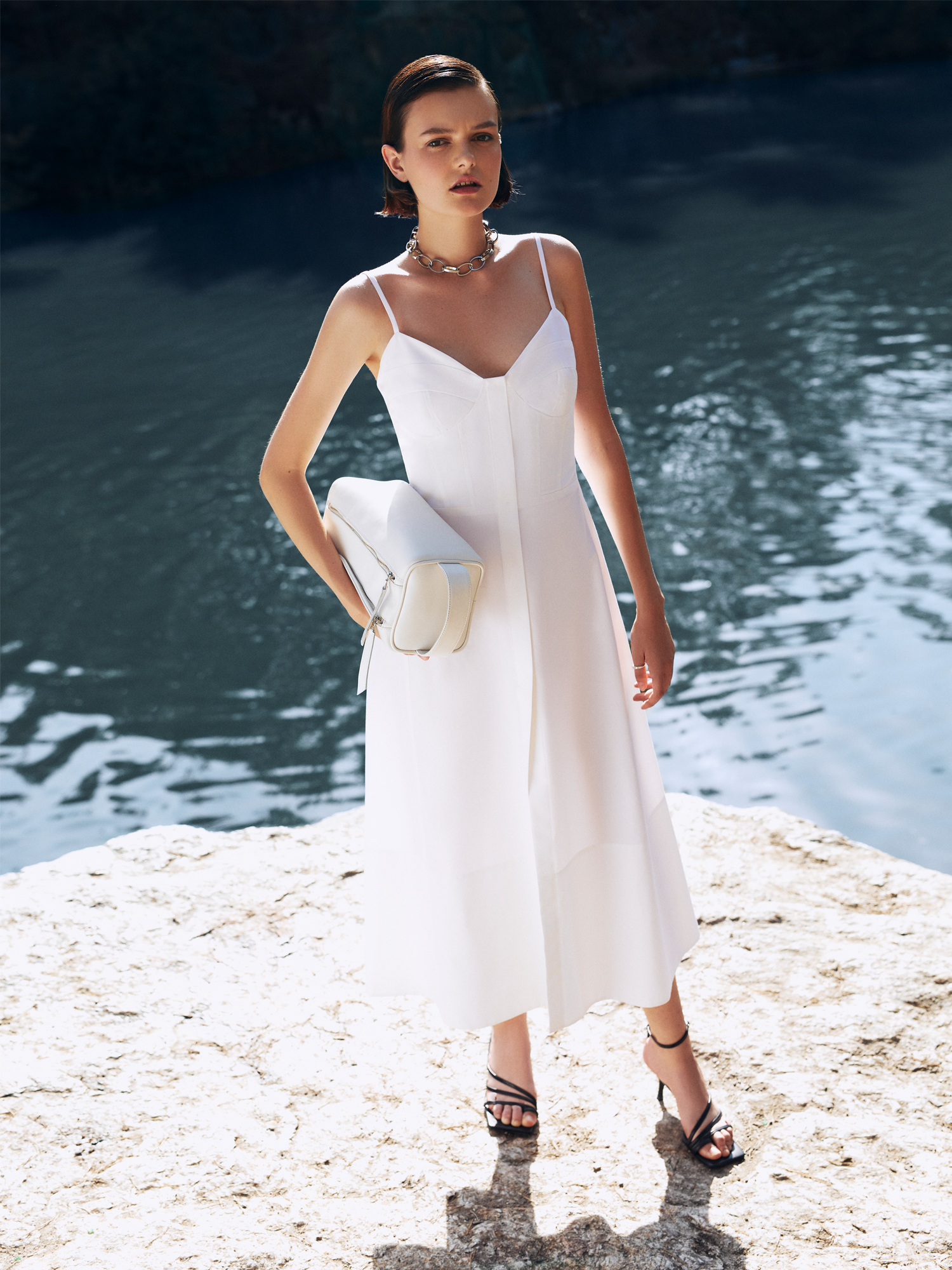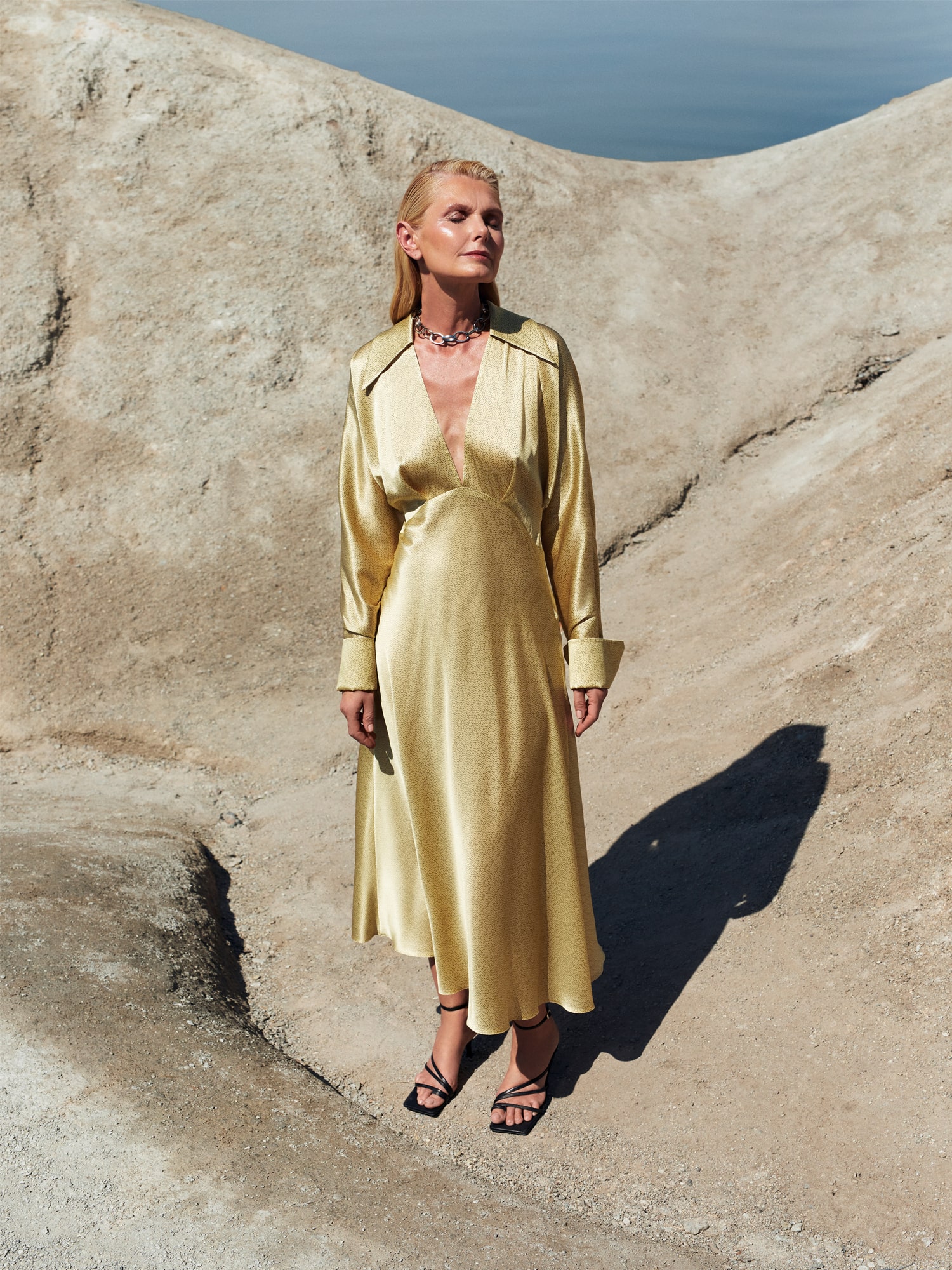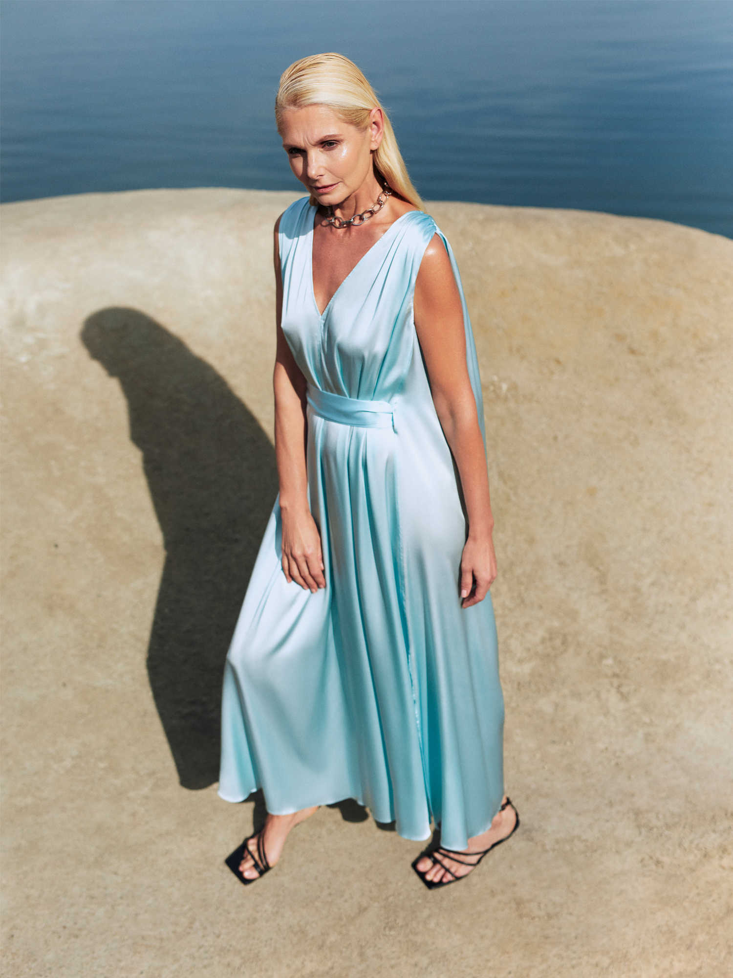 Дизайнер Елена Рева не только переосмыслила знаковые вечерние платья, которые отныне могут быть и повседневными, но также дополнила коллекцию уютными трикотажными костюмами и купальниками. В лукбуке весеннего сезона — деликатные платья, тренчи и силуэтные жакеты из благородных шелка, батиста, хлопка и шифона. Гамма будущей весны по версии Елены Ревы — оттенки угля, морской пены, миндального масла и розового кварца. В мягких силуэтах, струящихся фактурах и природных цветах дизайнер стремится раскрыть связь между внешней хрупкостью и внутренней силой, свойственными природе и женщине, чья красота нераздельно связана с самим мирозданием.