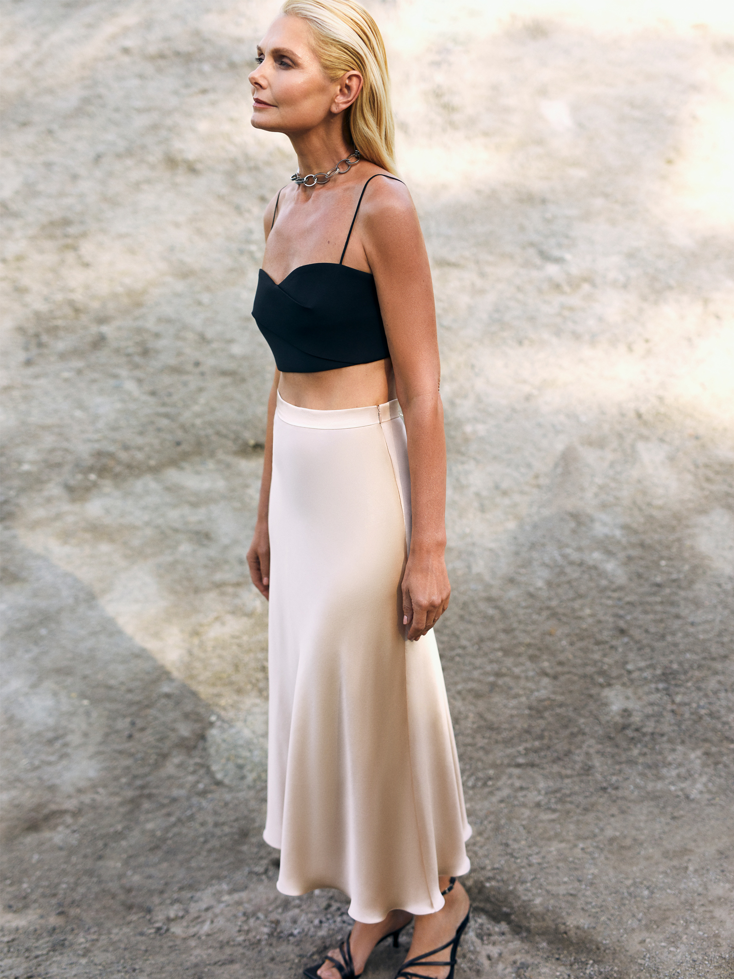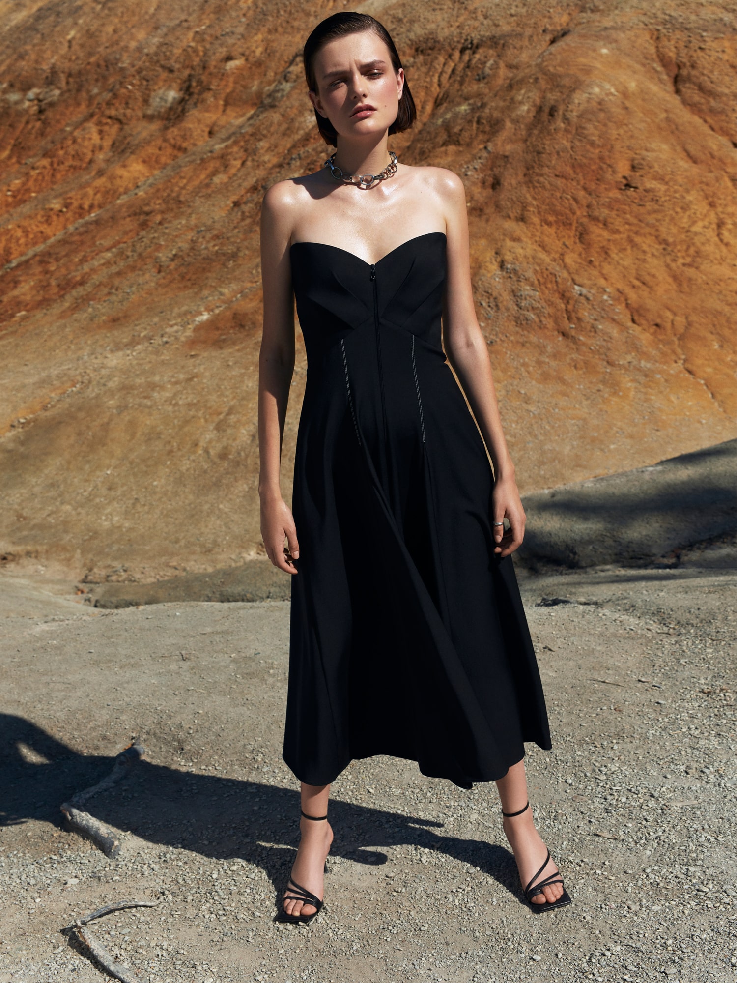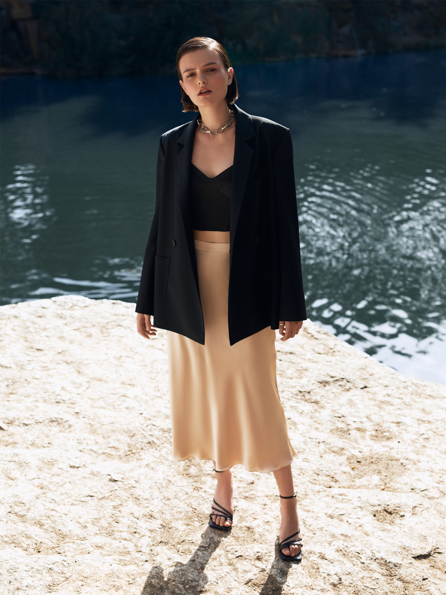 Дизайнер Елена Рева не только переосмыслила знаковые вечерние платья, которые отныне могут быть и повседневными, но также дополнила коллекцию уютными трикотажными костюмами и купальниками. В лукбуке весеннего сезона — деликатные платья, тренчи и силуэтные жакеты из благородных шелка, батиста, хлопка и шифона. Гамма будущей весны по версии Елены Ревы — оттенки угля, морской пены, миндального масла и розового кварца. В мягких силуэтах, струящихся фактурах и природных цветах дизайнер стремится раскрыть связь между внешней хрупкостью и внутренней силой, свойственными природе и женщине, чья красота нераздельно связана с самим мирозданием.