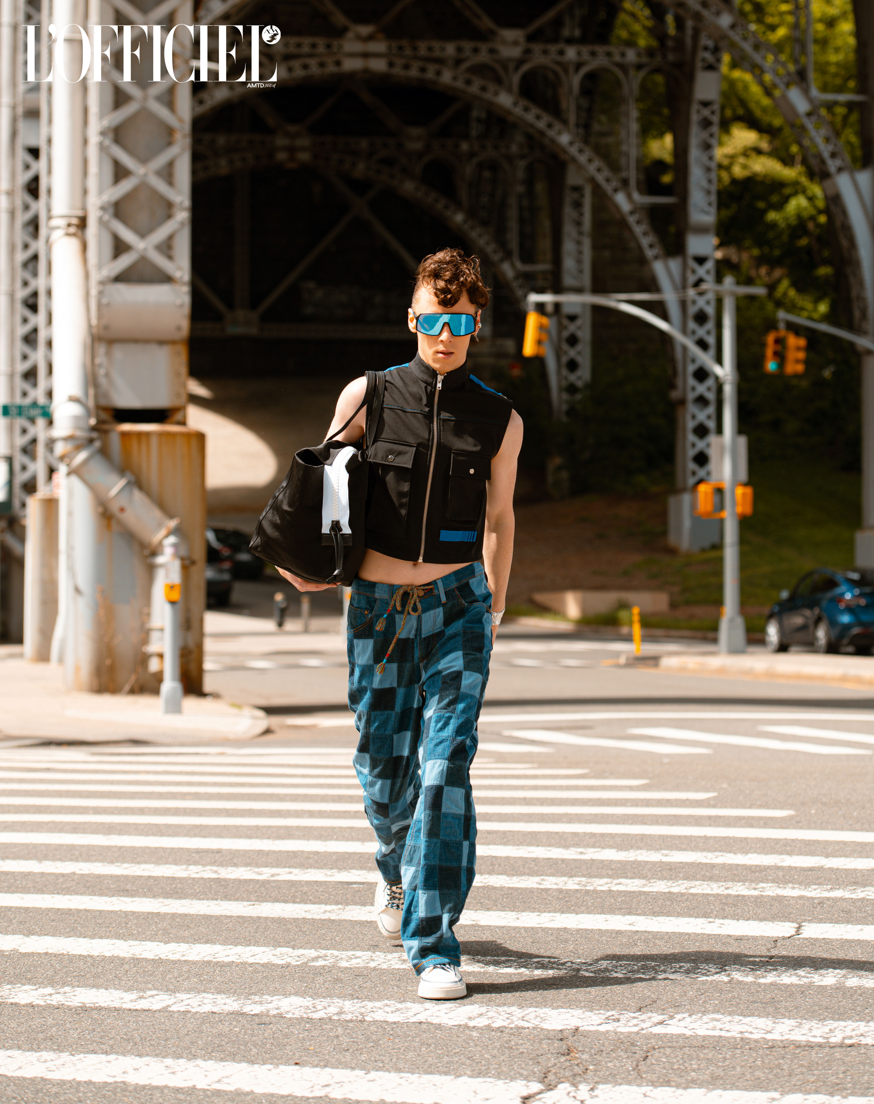 Vest: SOMBRE @sombreofficiel. Jeans pants: TWO HANDS BRAND @two.hands.brand. Sunglasses: HAUTELIFE WORLD @hautelifeworld. Bag: HARMIN @harminstyle. Shoes: BONAMASÓ @bonamaso