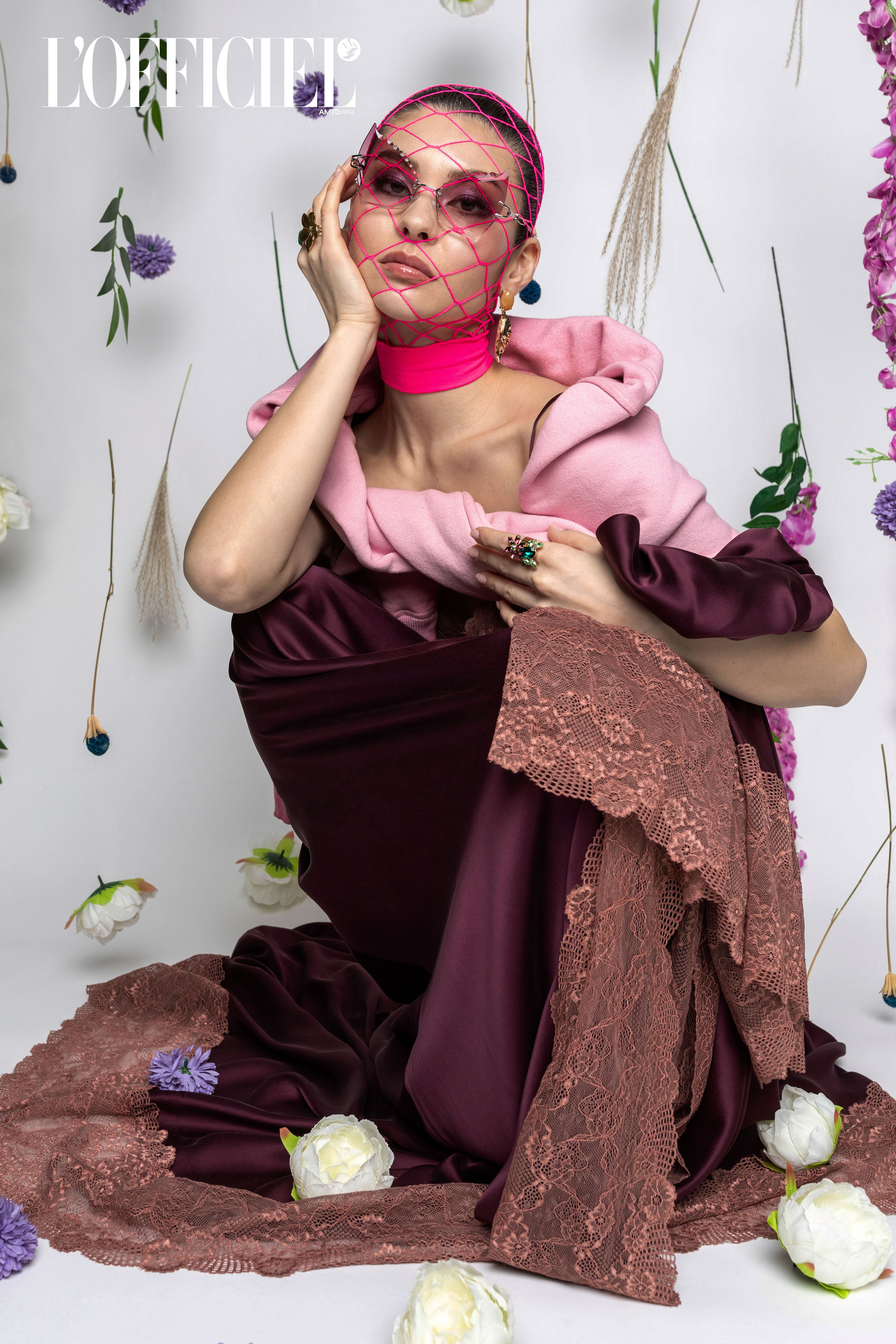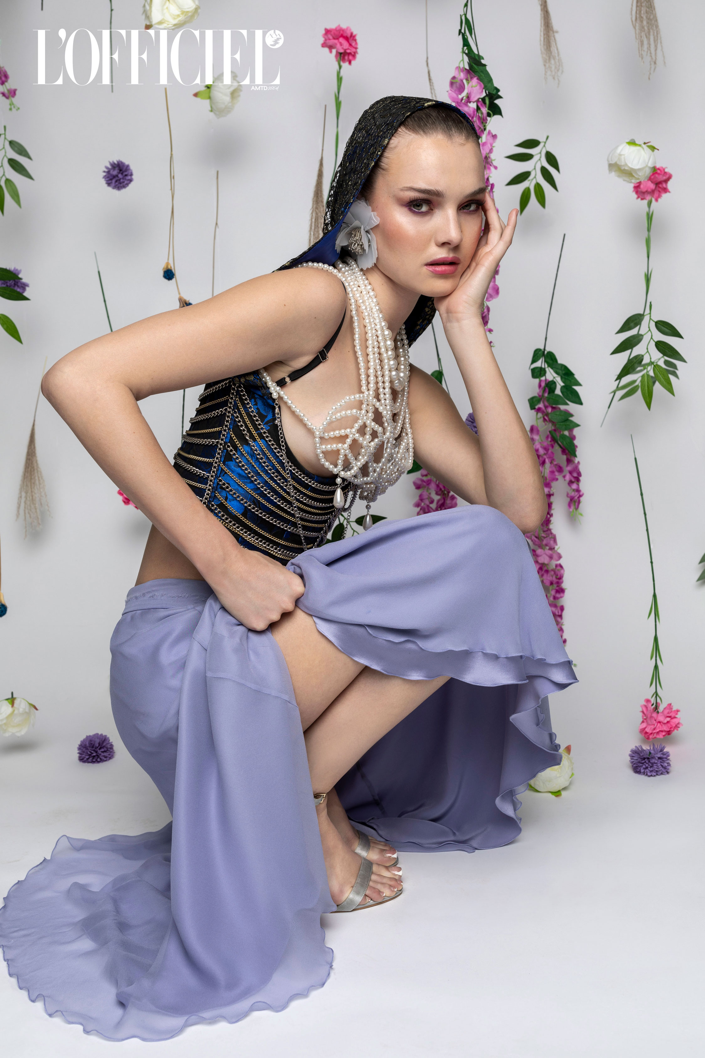 Top: LORENA CORDERO @lorenacorderocoutureofficial. Skirt: SILK EPOQUE BY OLGA ZIEMANN @silk_epoque_olga_ziemann. Earrings: MISK CONCEPT @misk_concept. Shoes: VEERAH @veerahofficial