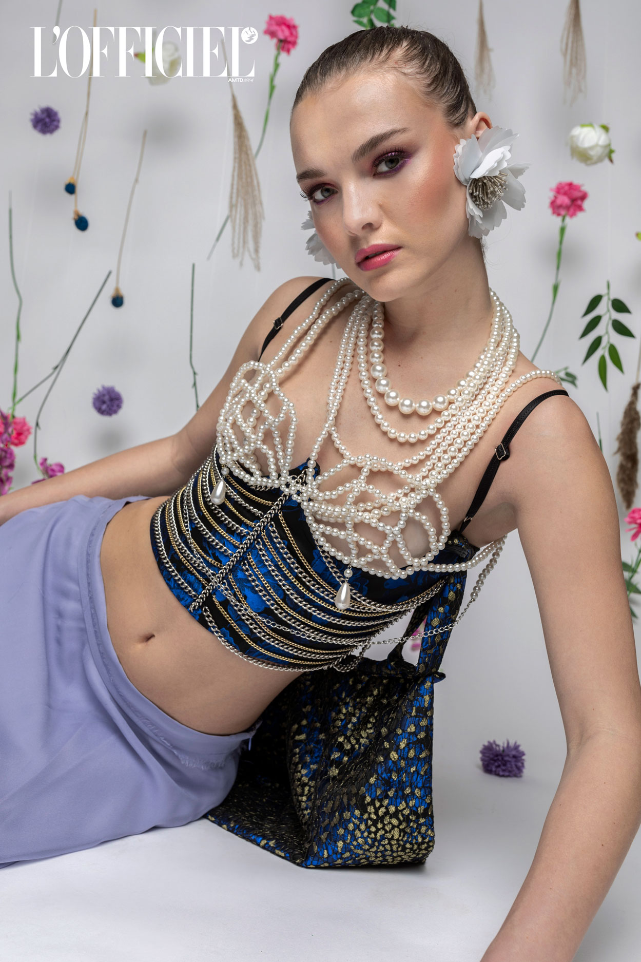 Top: LORENA CORDERO @lorenacorderocoutureofficial. Skirt: SILK EPOQUE BY OLGA ZIEMANN @silk_epoque_olga_ziemann. Earrings: MISK CONCEPT @misk_concept