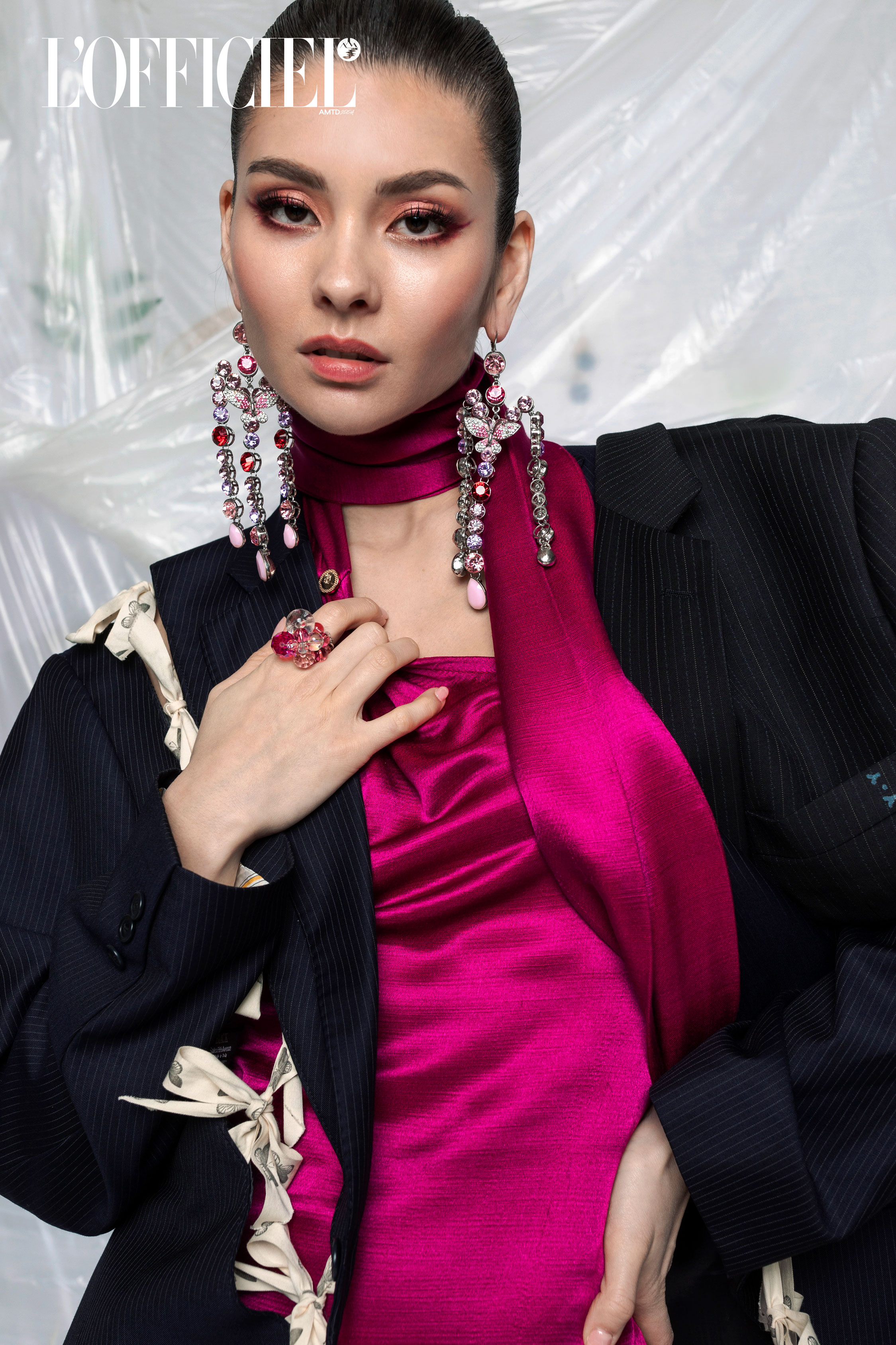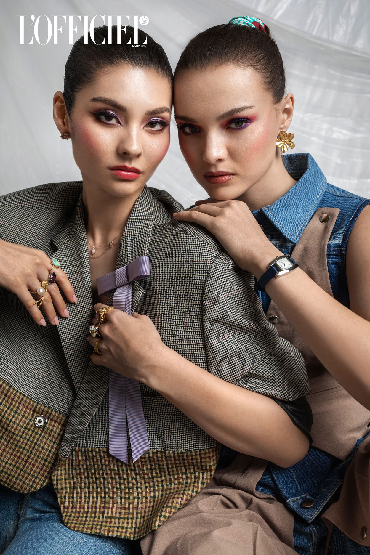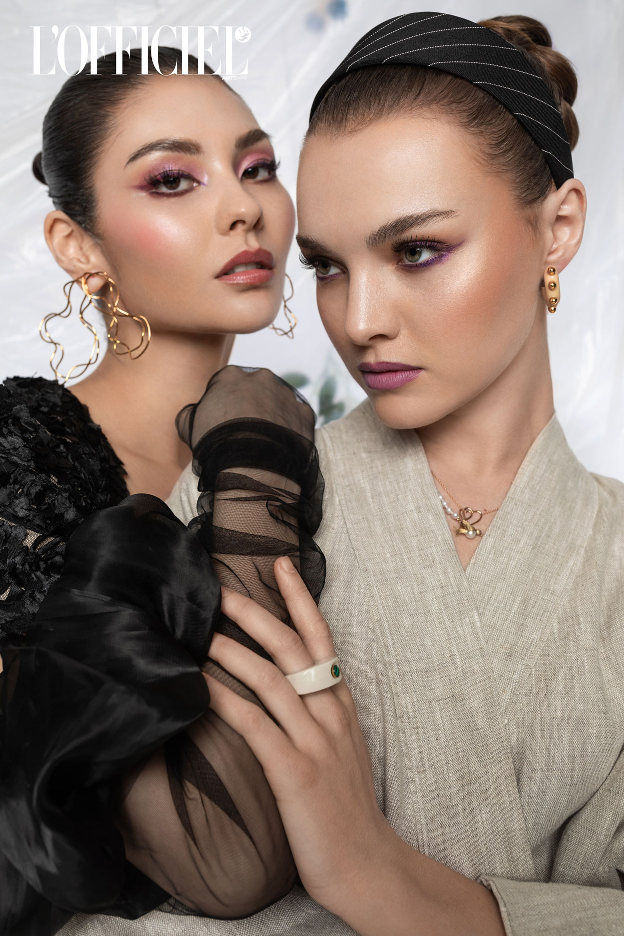 Janina: Jacket: VERSURA @ver_sura. Pants: Y-Y OFFICIAL @y_y_official_. Bow: ARC AND BOW @arcandbow. Necklace and Oval Opal Ring: EMILY WARDEN DESIGNS @emilywardendesigns. Brown Stone Infinity Ring: MIMOTHO - YOUR JEWELRY ARCHITECT @mimothojewelry, @mimothomen. Pearl ring: MACALA @macalajoyas. Earrings and Left hand Ring stack: MARÍA SALINAS @mariasalinasmx.