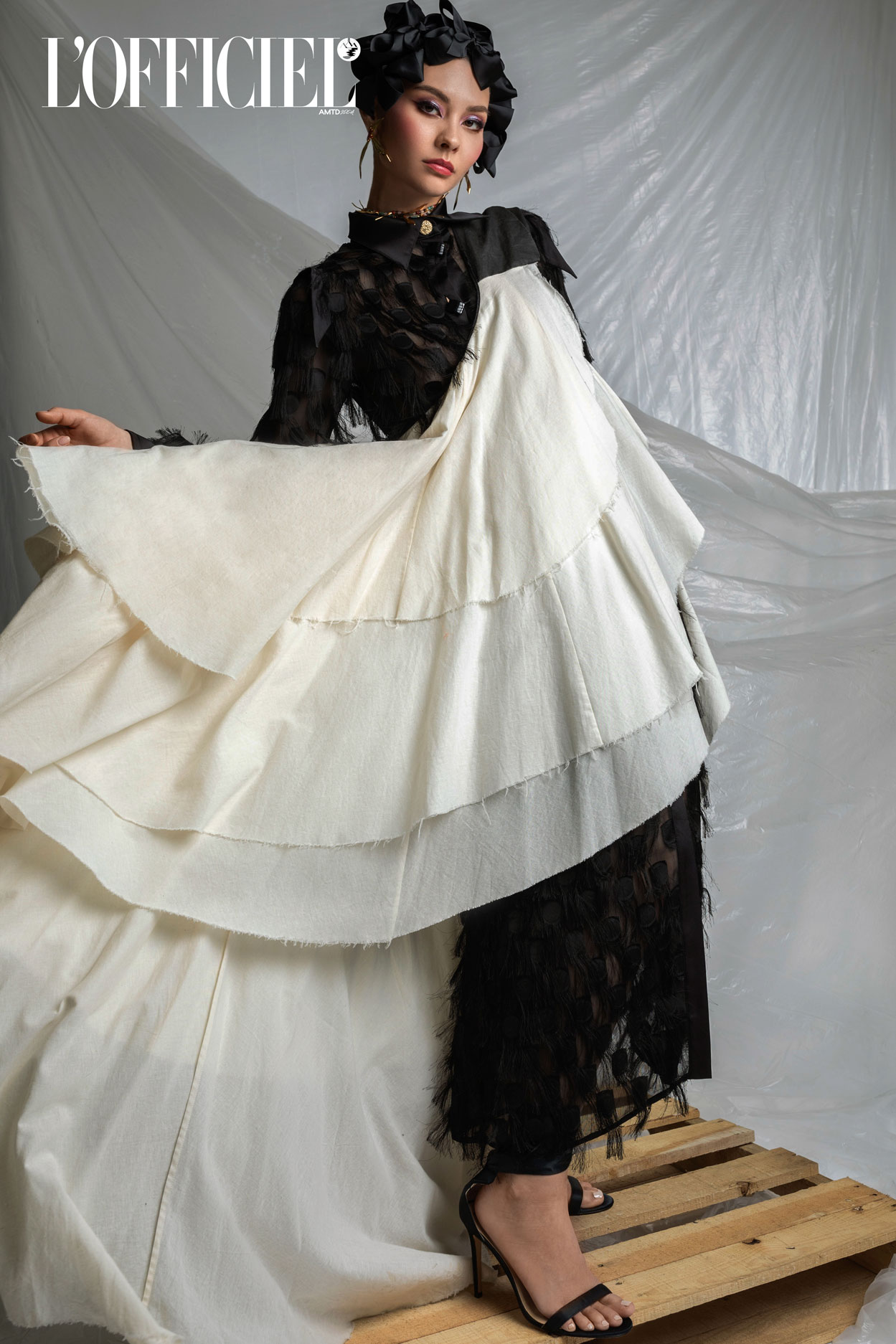 Black Dress: JULIA ALLERT @julia_allert_brand. White Dress: EQUALSHUMAN @equalshuman_movement. Shoes: VEERAH @veerahofficial. Earrings and Necklace: COOLOOK @joyeriacoolook