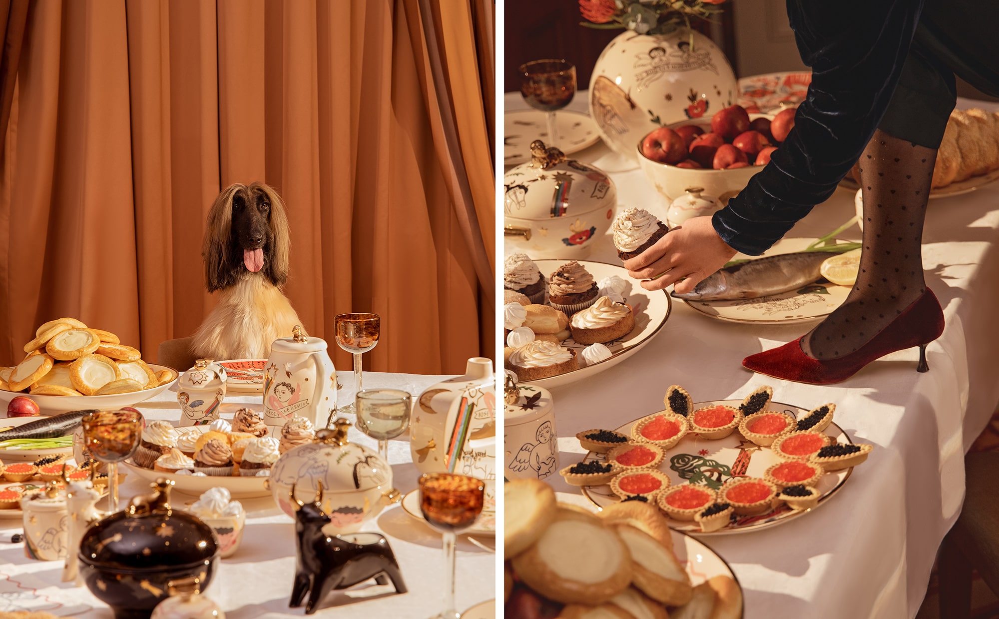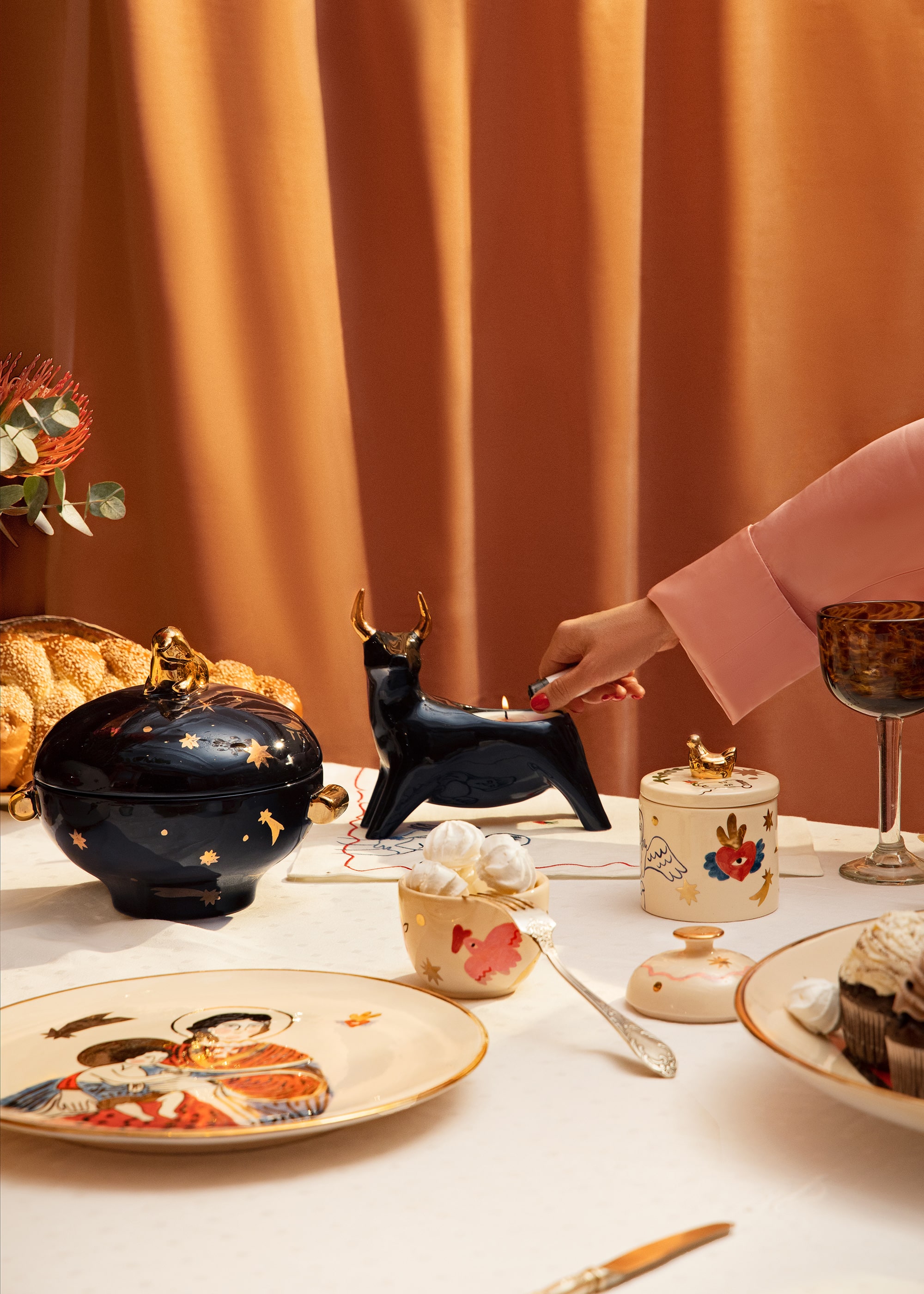 У різдвяну колекцію увійшли керамічні тарілки двох розмірів, салатник, макітра (традиційна форма для куті), різні форми для закусок, цукорниці, глечик, вази двох форм і розмірів, келих з гутного скла, а також 2 свічки у формі бичка — символу цього року. Його ще можна знайти на перловому кольє бренду.