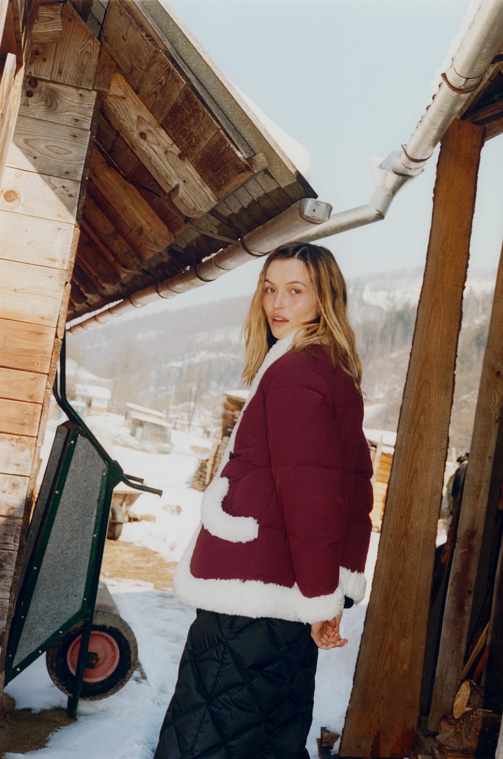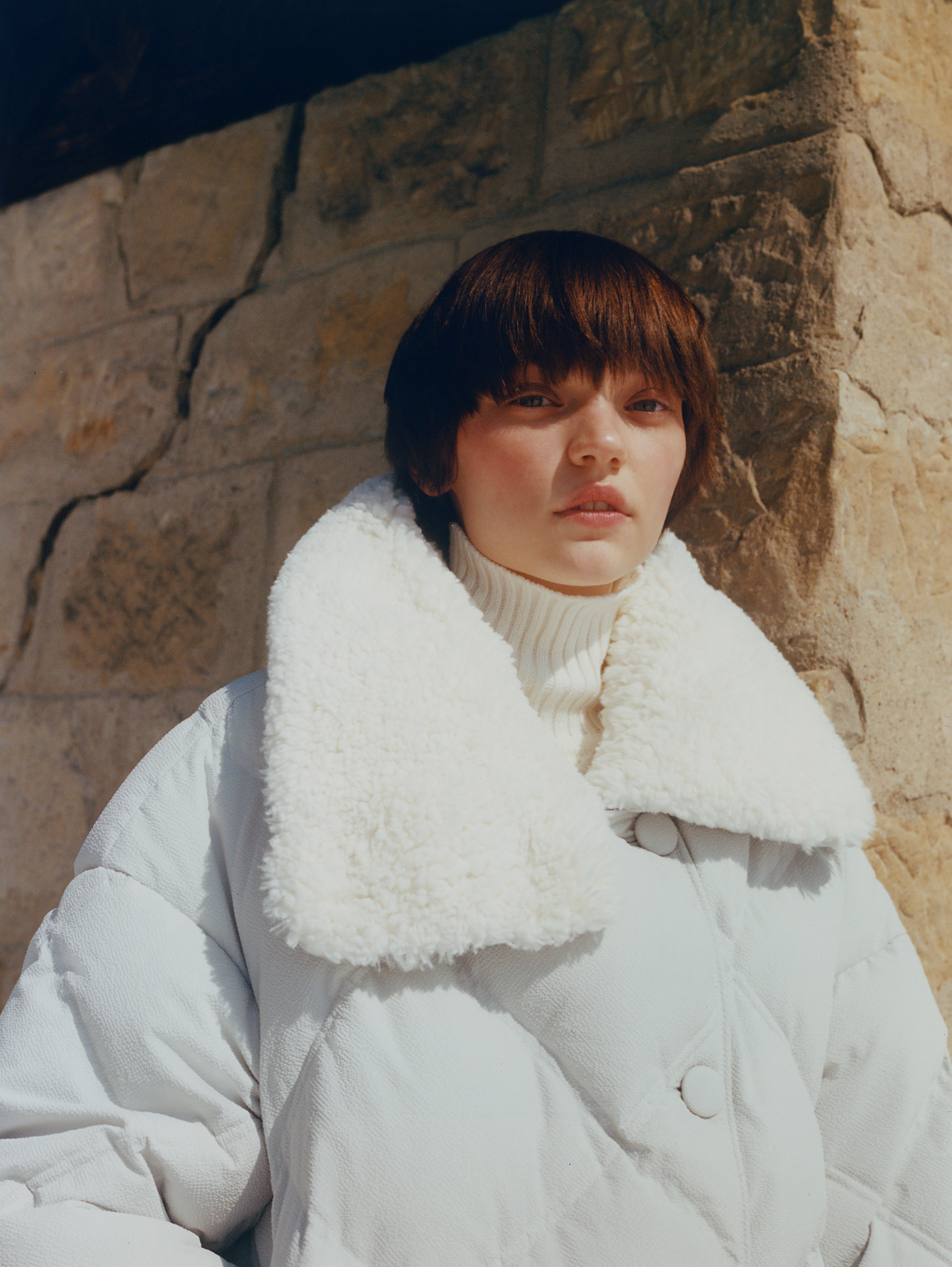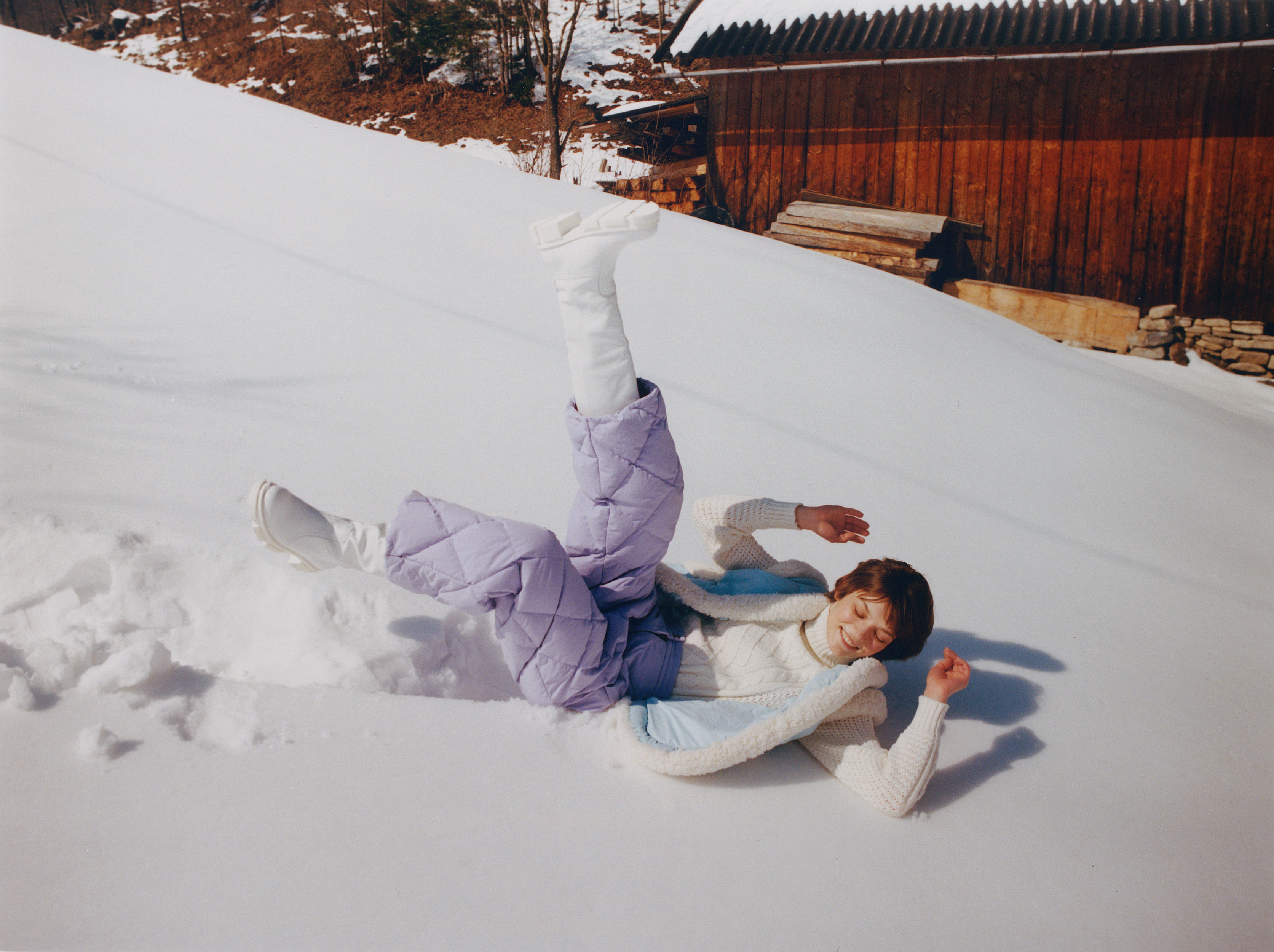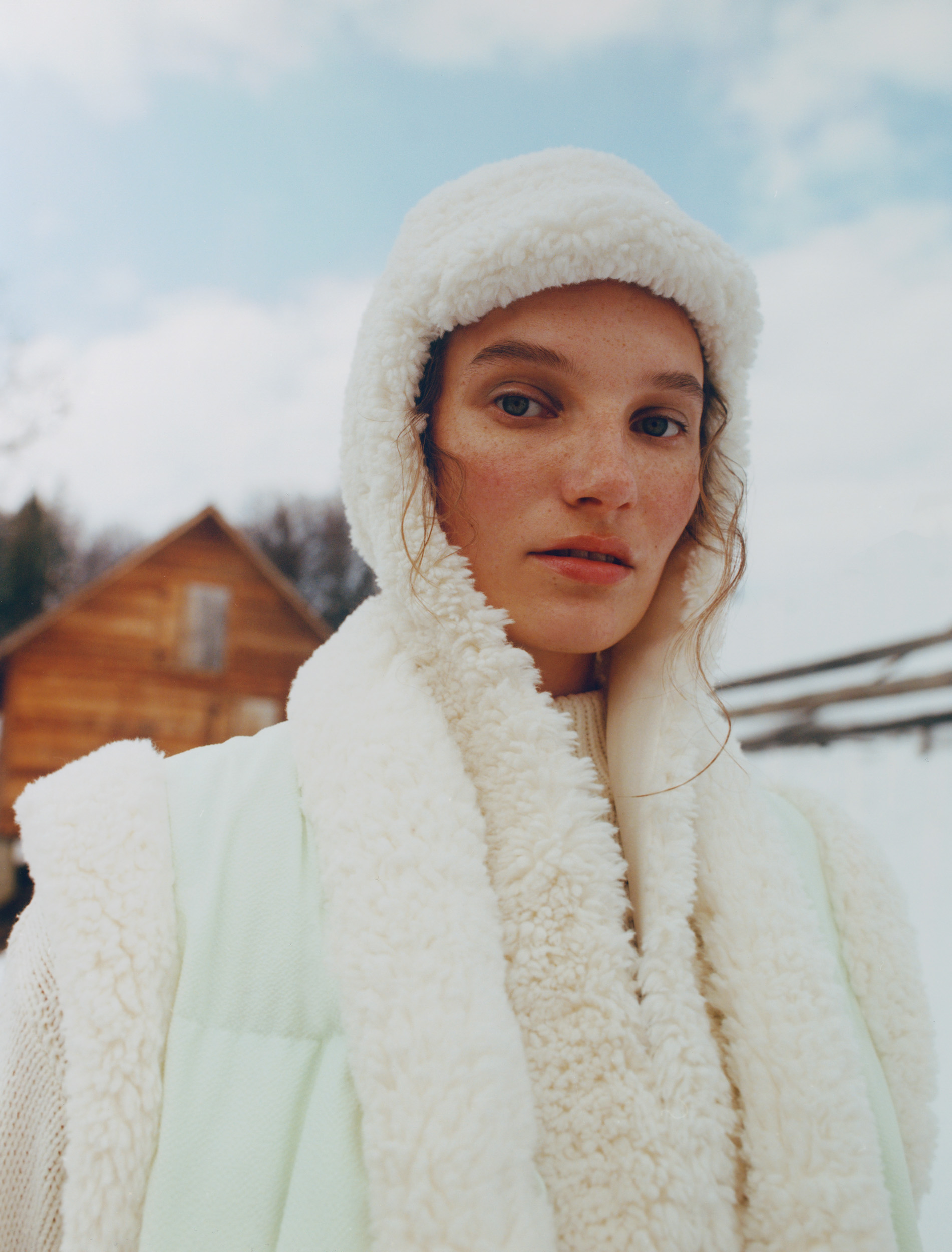 Съемку коллекции провели в Карпатах, и заснеженные склоны гор стали прекрасной обстановкой для того, чтобы показать вещи с ширлингом.