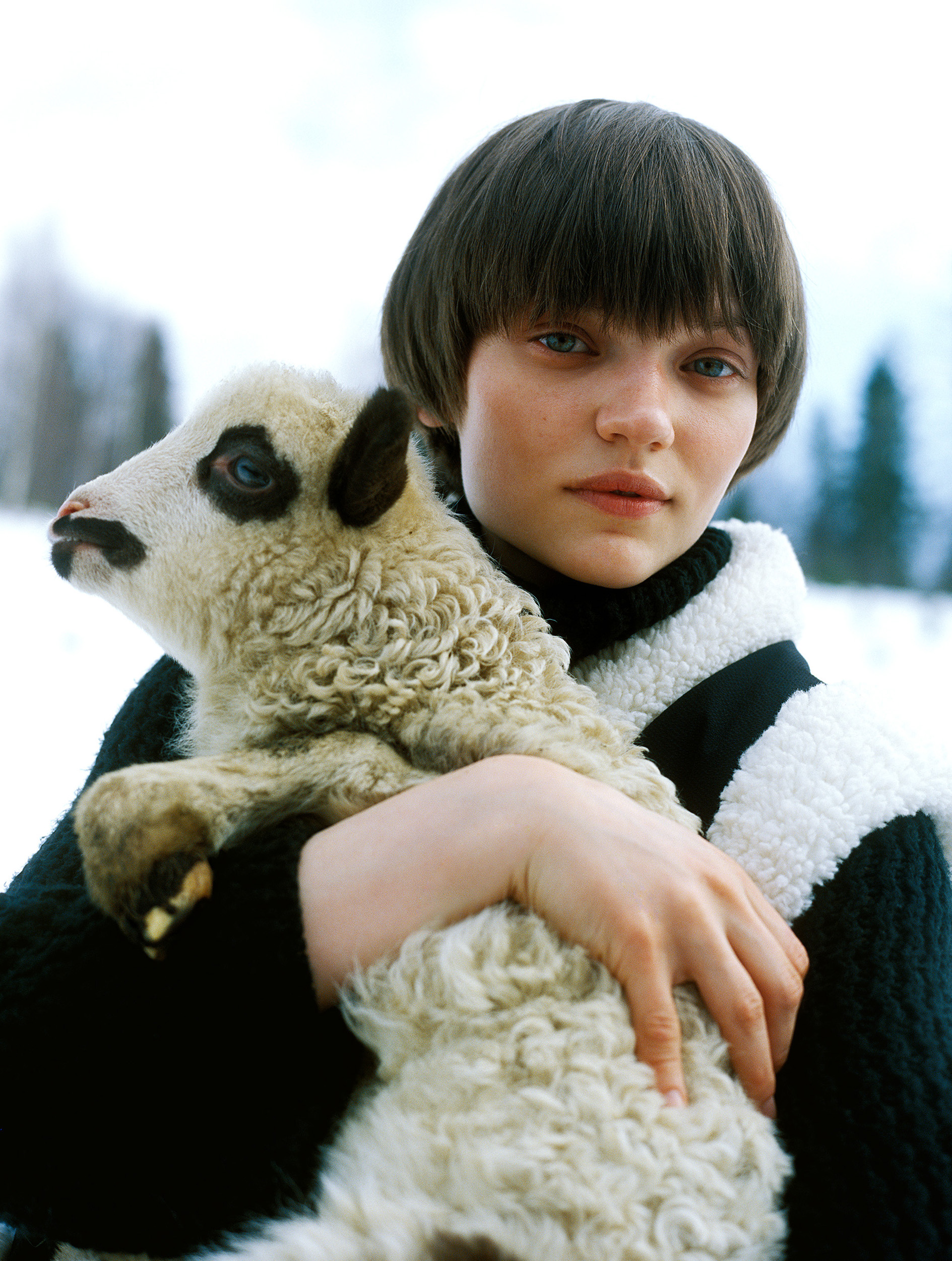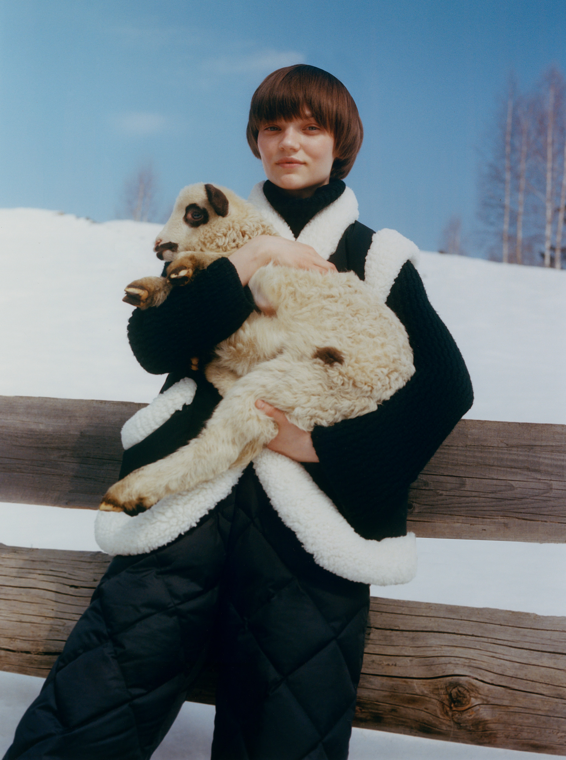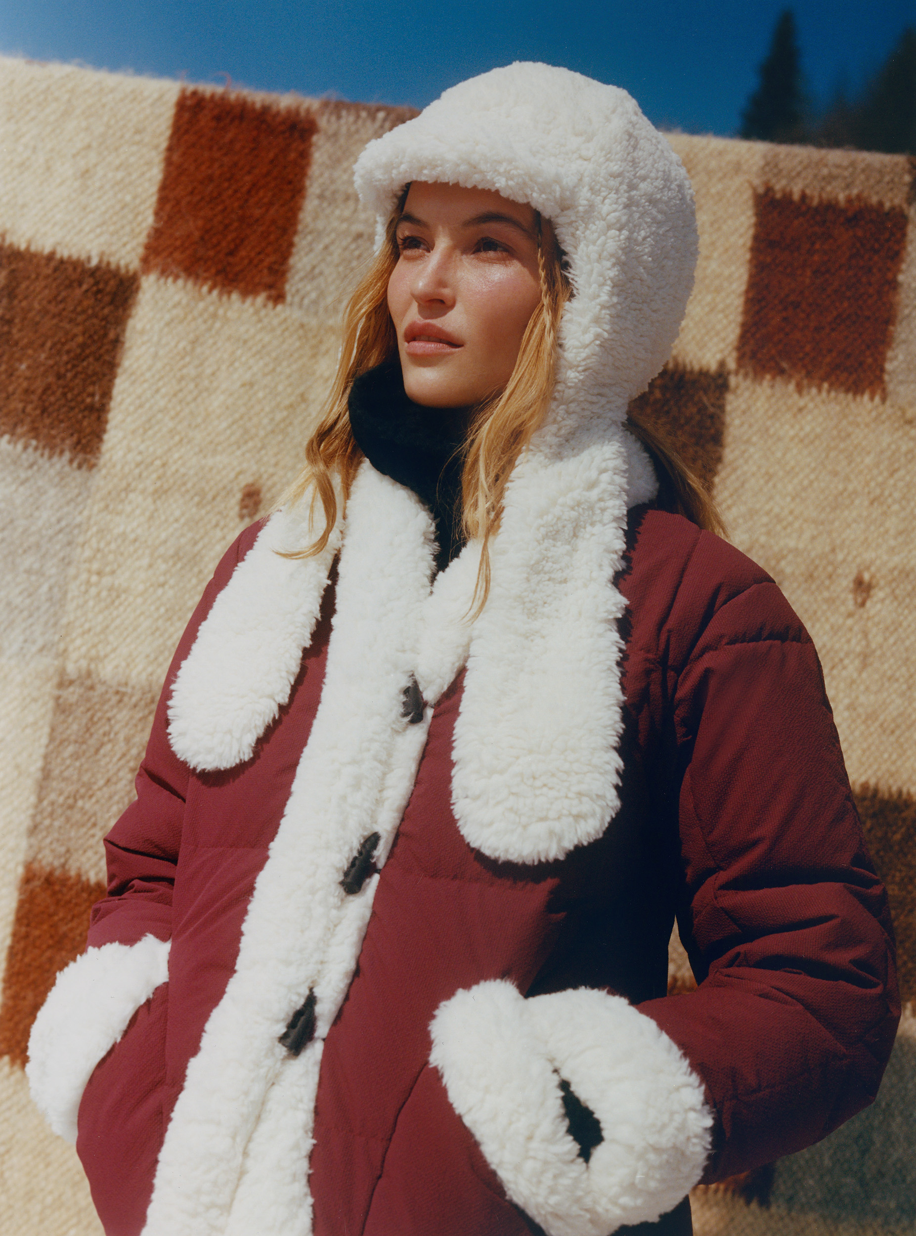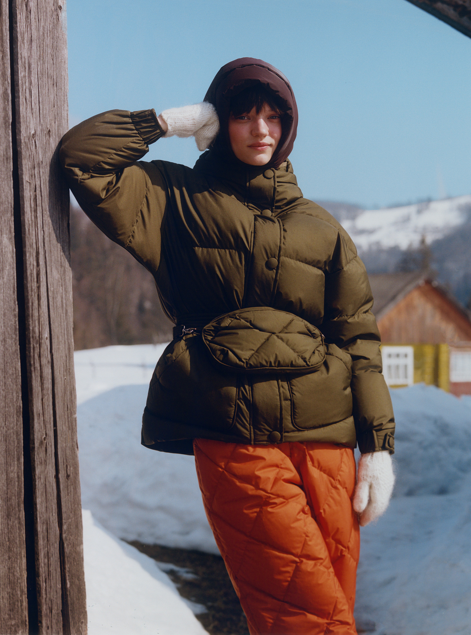 Съемку коллекции провели в Карпатах, и заснеженные склоны гор стали прекрасной обстановкой для того, чтобы показать вещи с ширлингом.