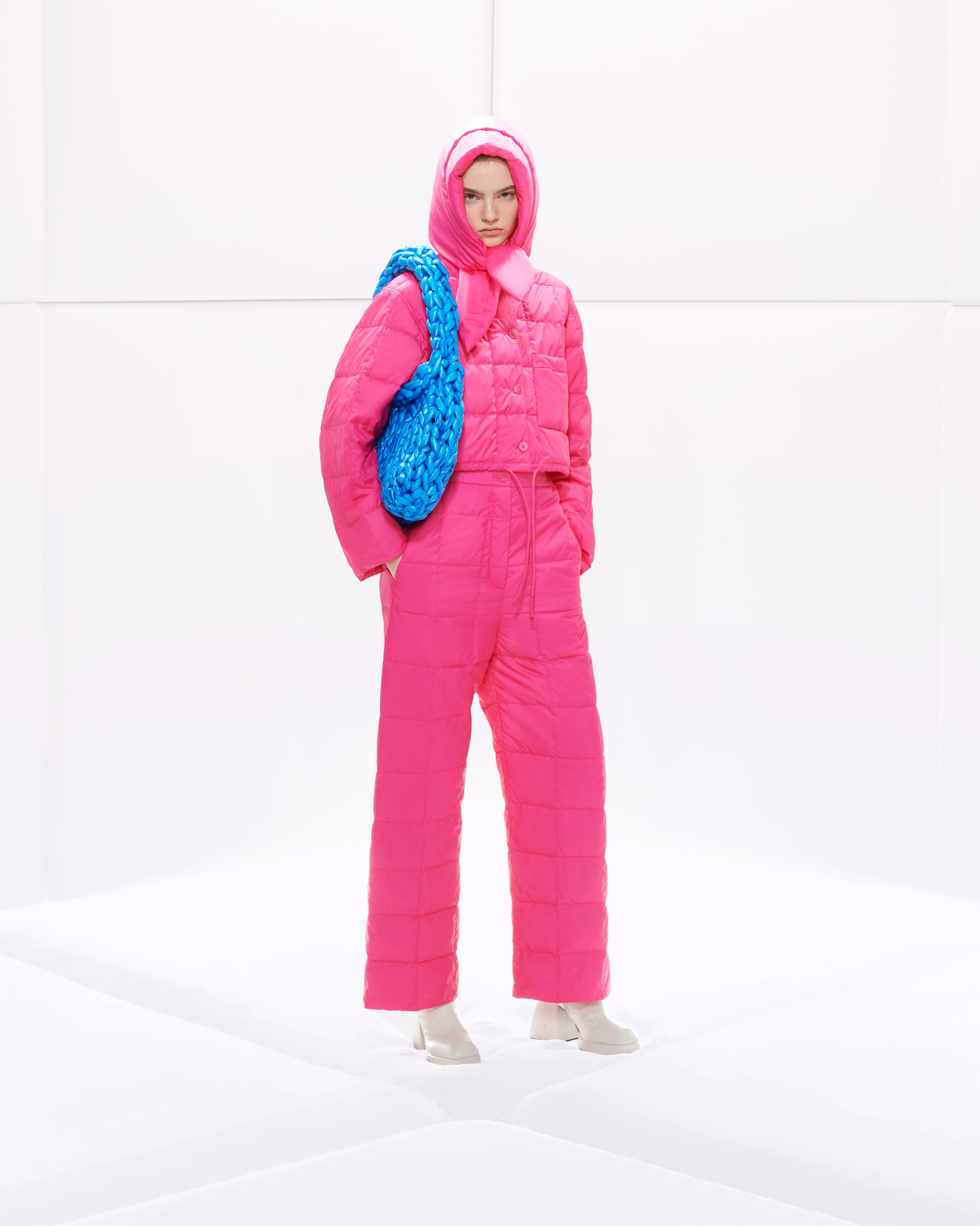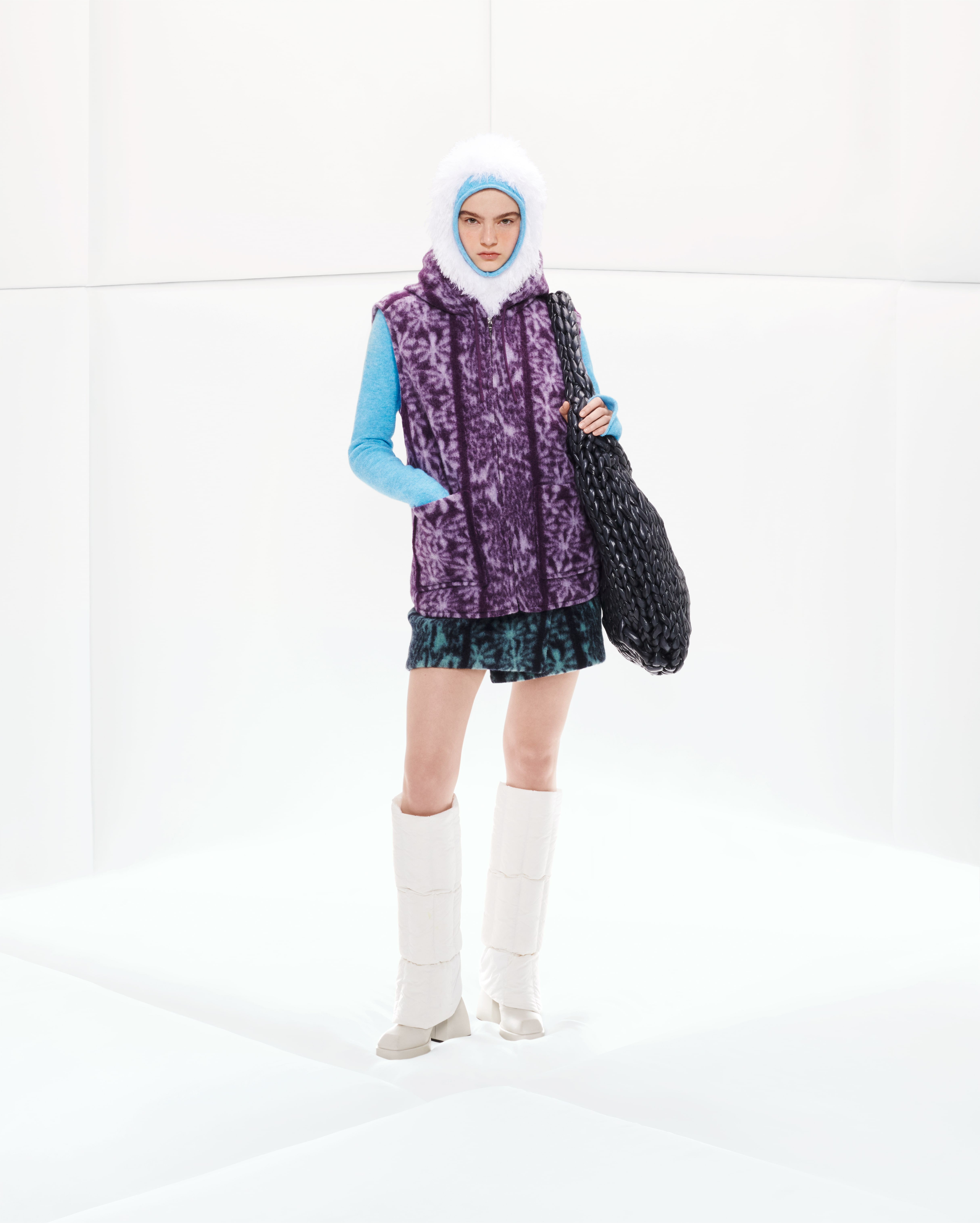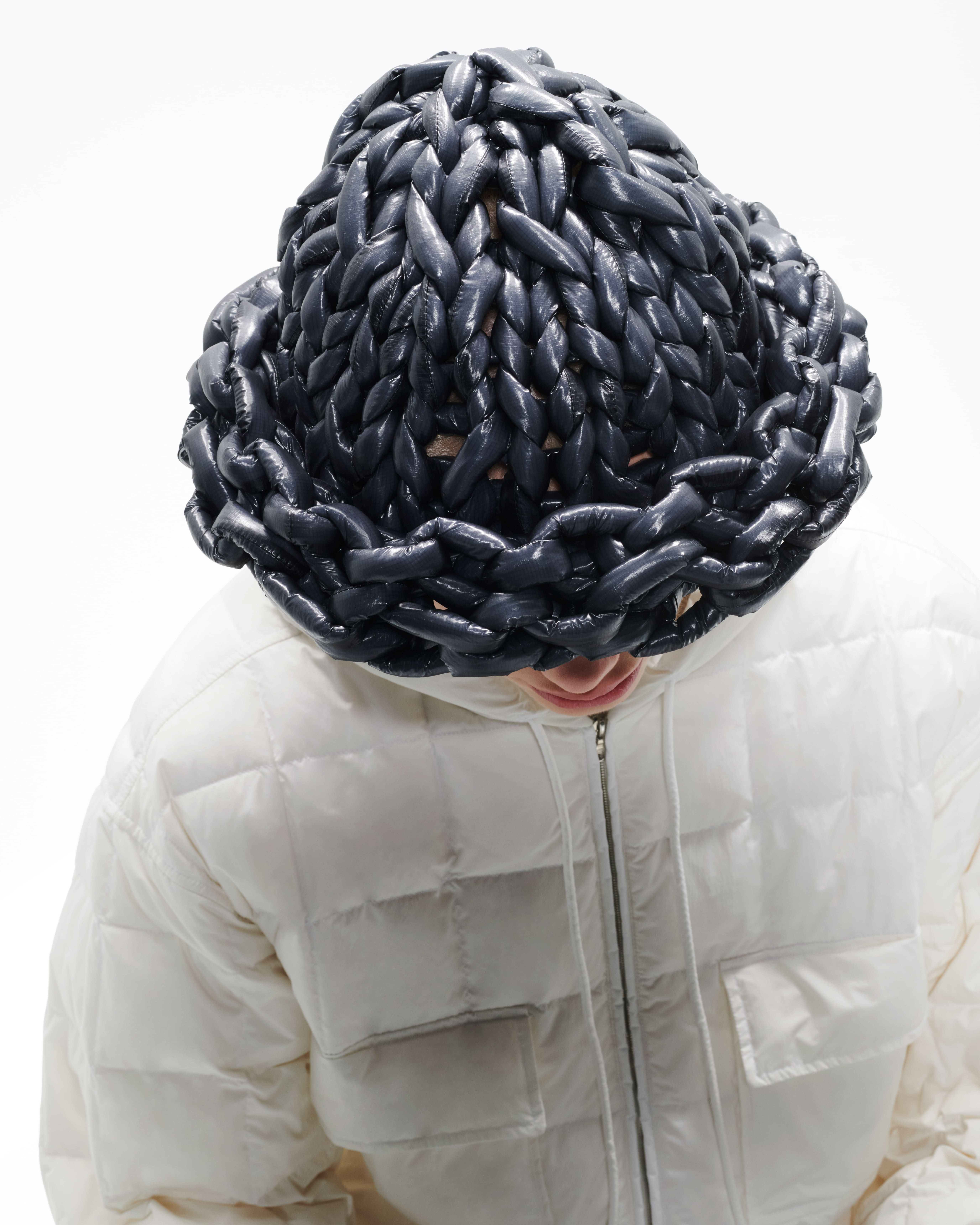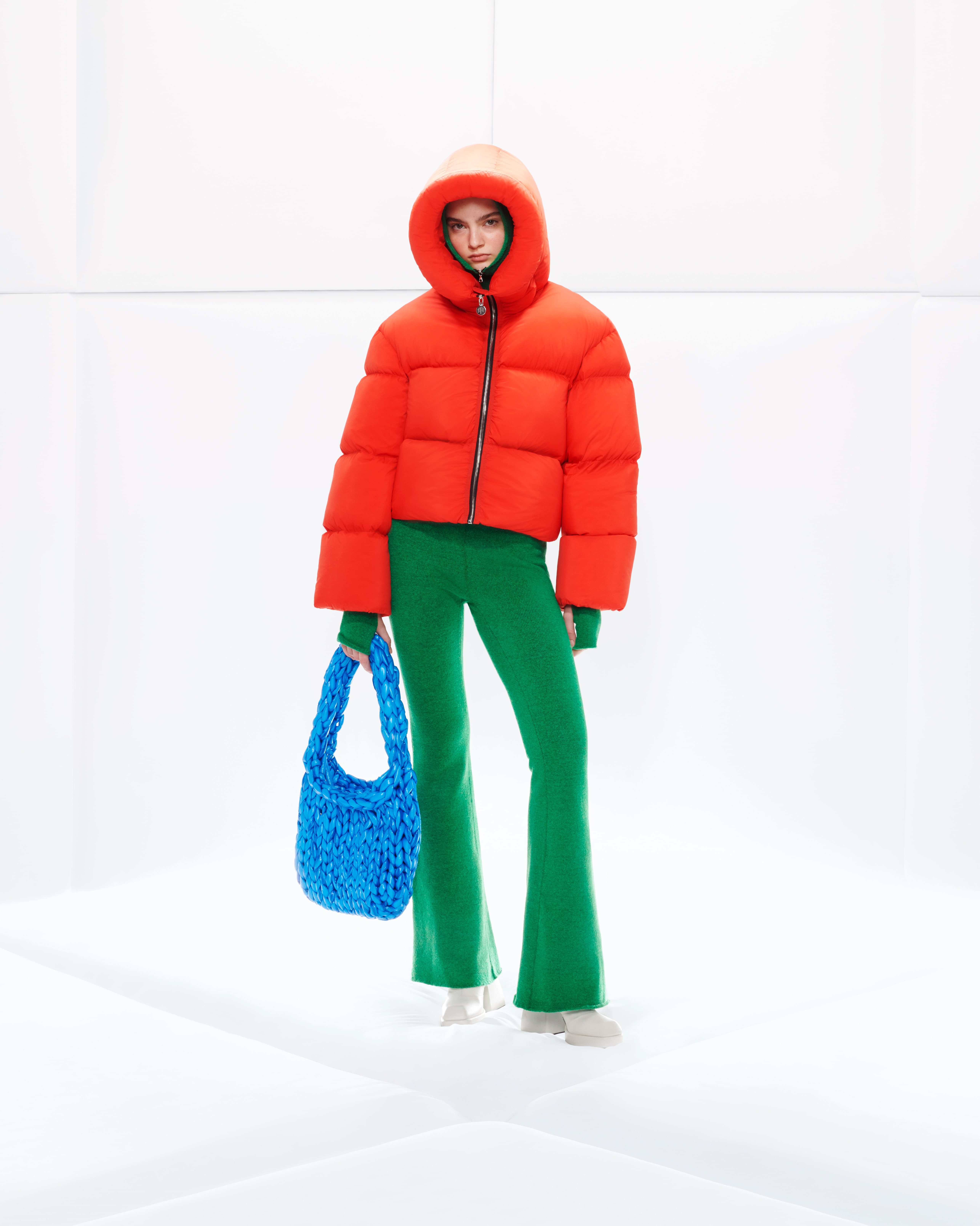 Ienki Ienki представили коллекцию Pre-Fall – 2022. В нее вошли еще более легкие куртки, трикотажные костюмы из технического смесового материала, а также вручную связанные из нейлона жилеты, сумки и головные уборы. Техника вязания из пуховых нейлоновых трубок — инновационная разработка дизайнеров бренда.