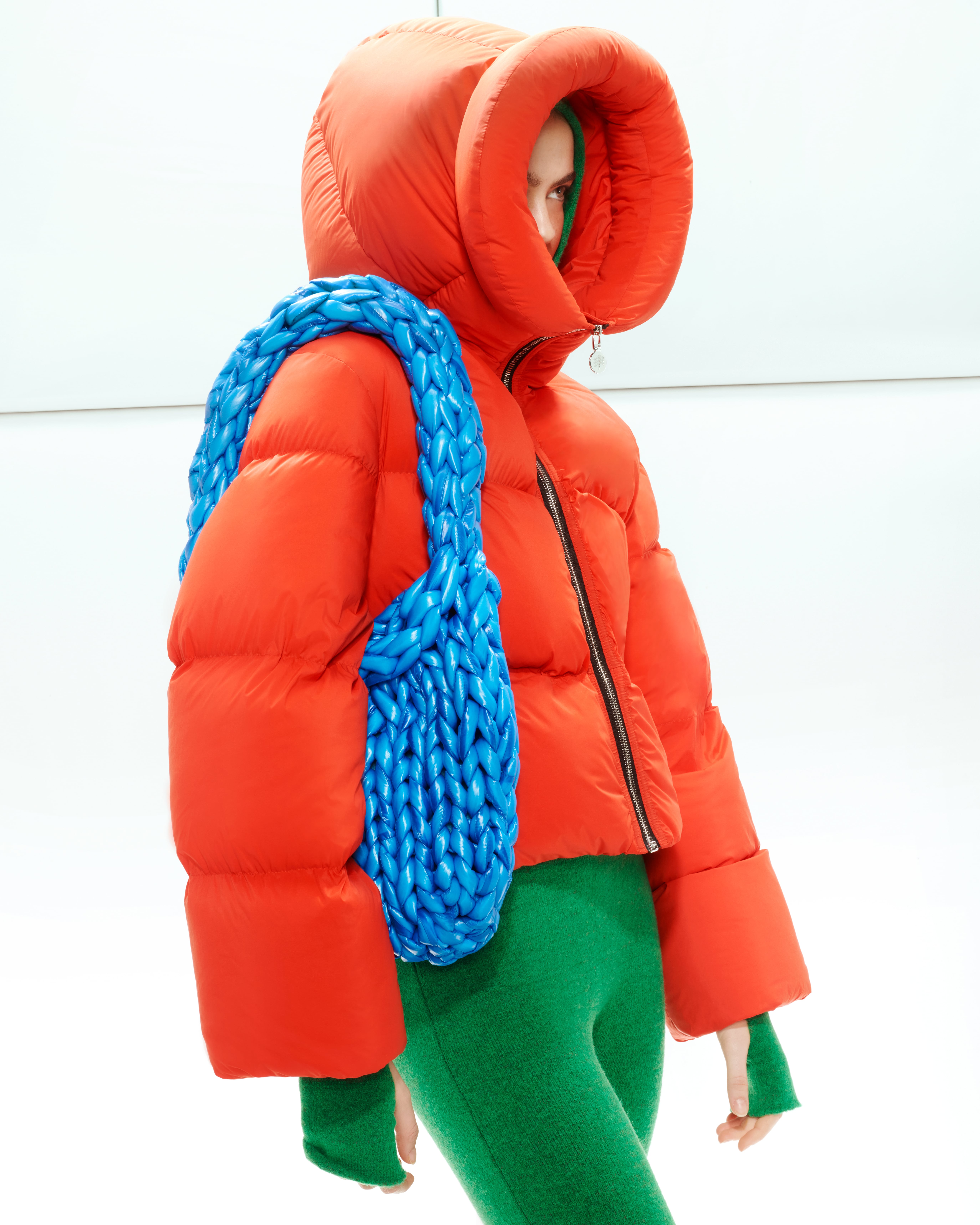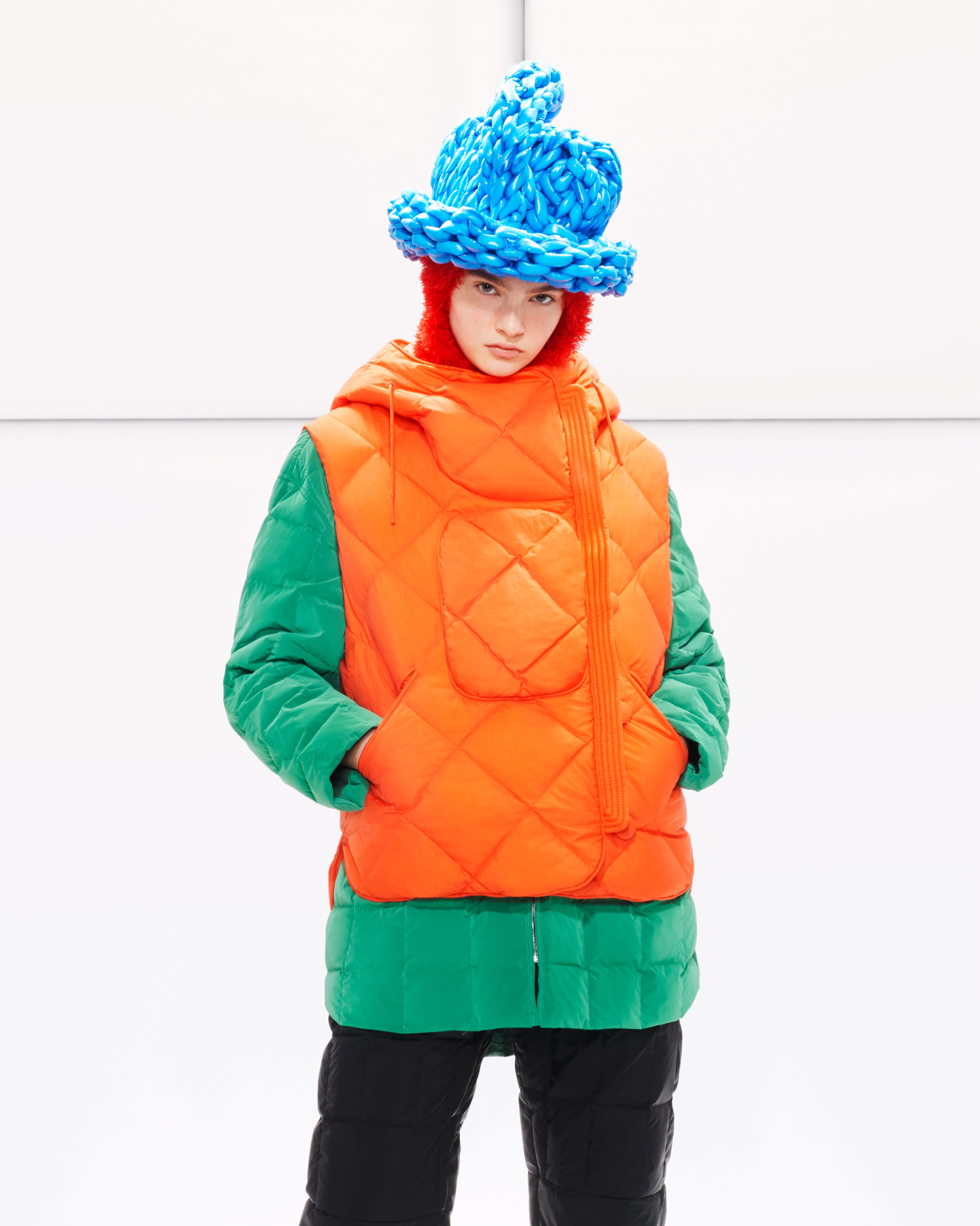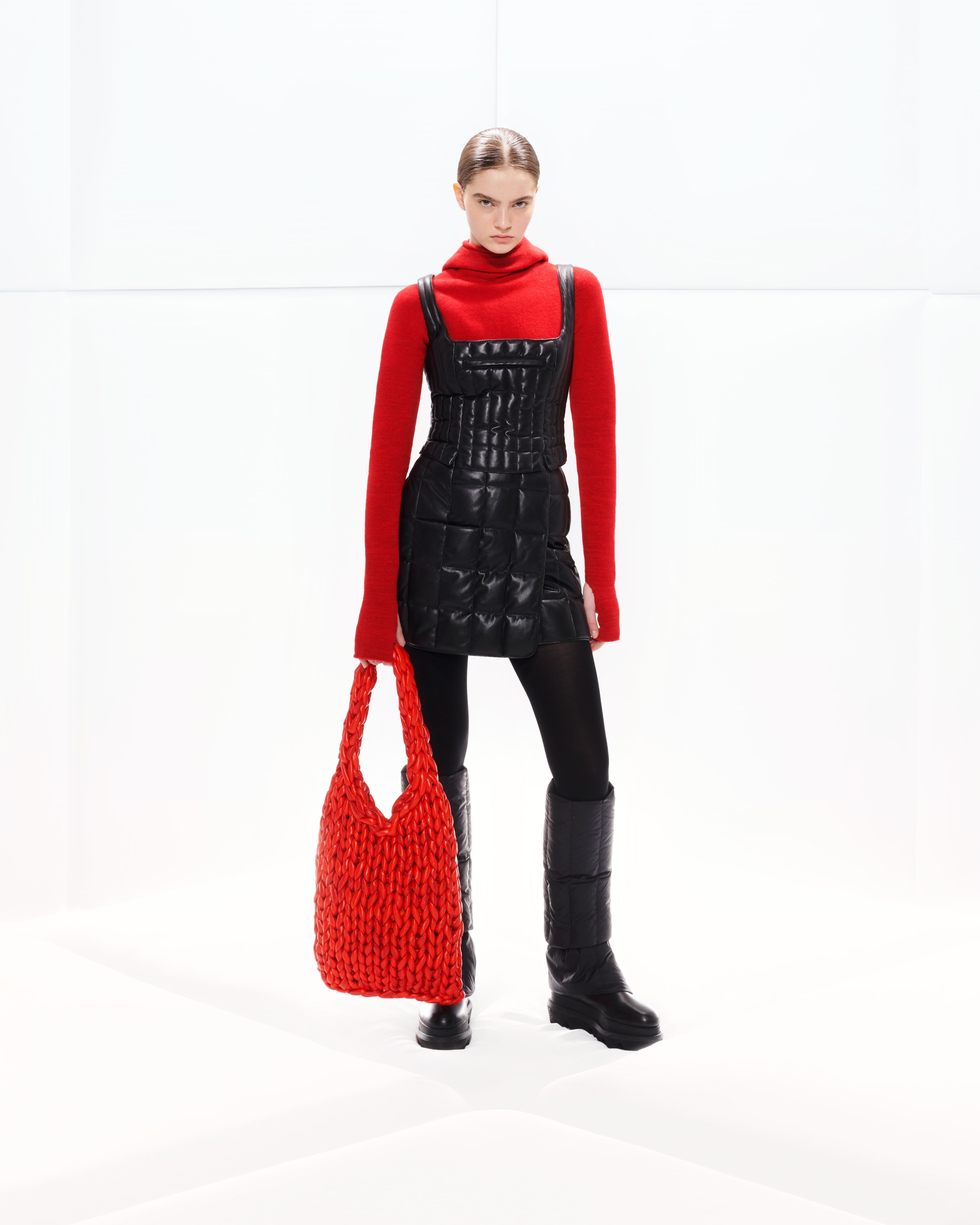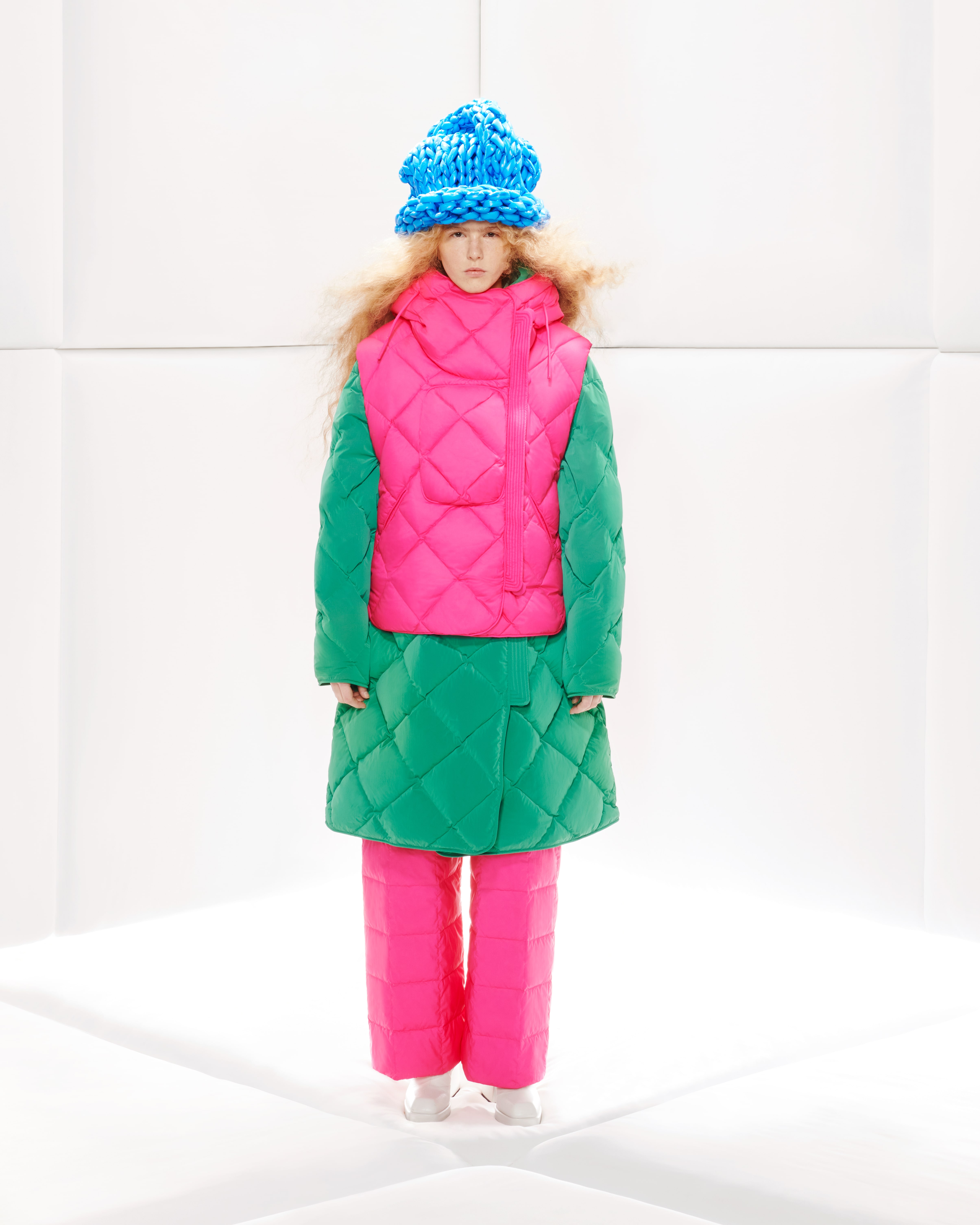 Ienki Ienki представили коллекцию Pre-Fall – 2022. В нее вошли еще более легкие куртки, трикотажные костюмы из технического смесового материала, а также вручную связанные из нейлона жилеты, сумки и головные уборы. Техника вязания из пуховых нейлоновых трубок — инновационная разработка дизайнеров бренда.
