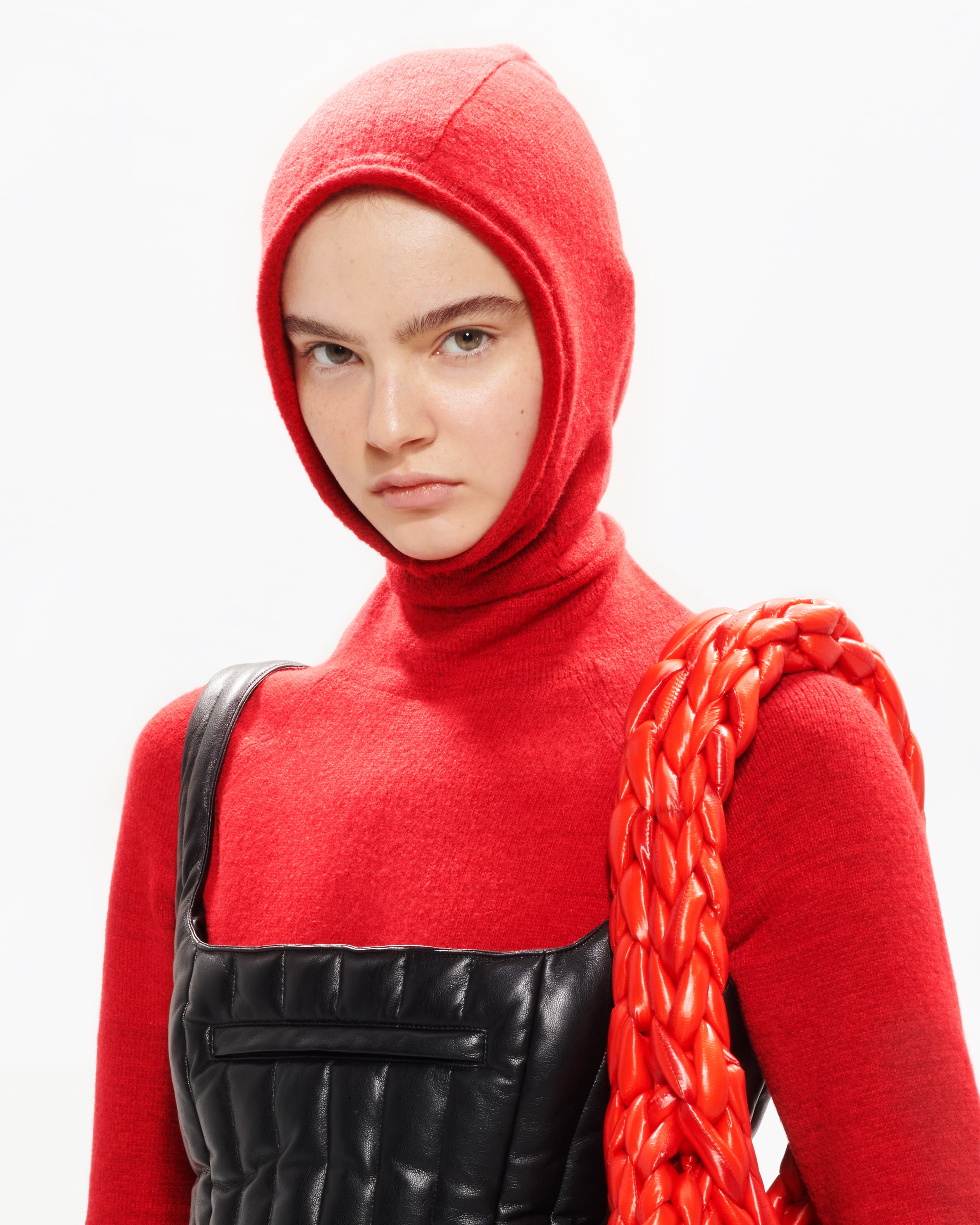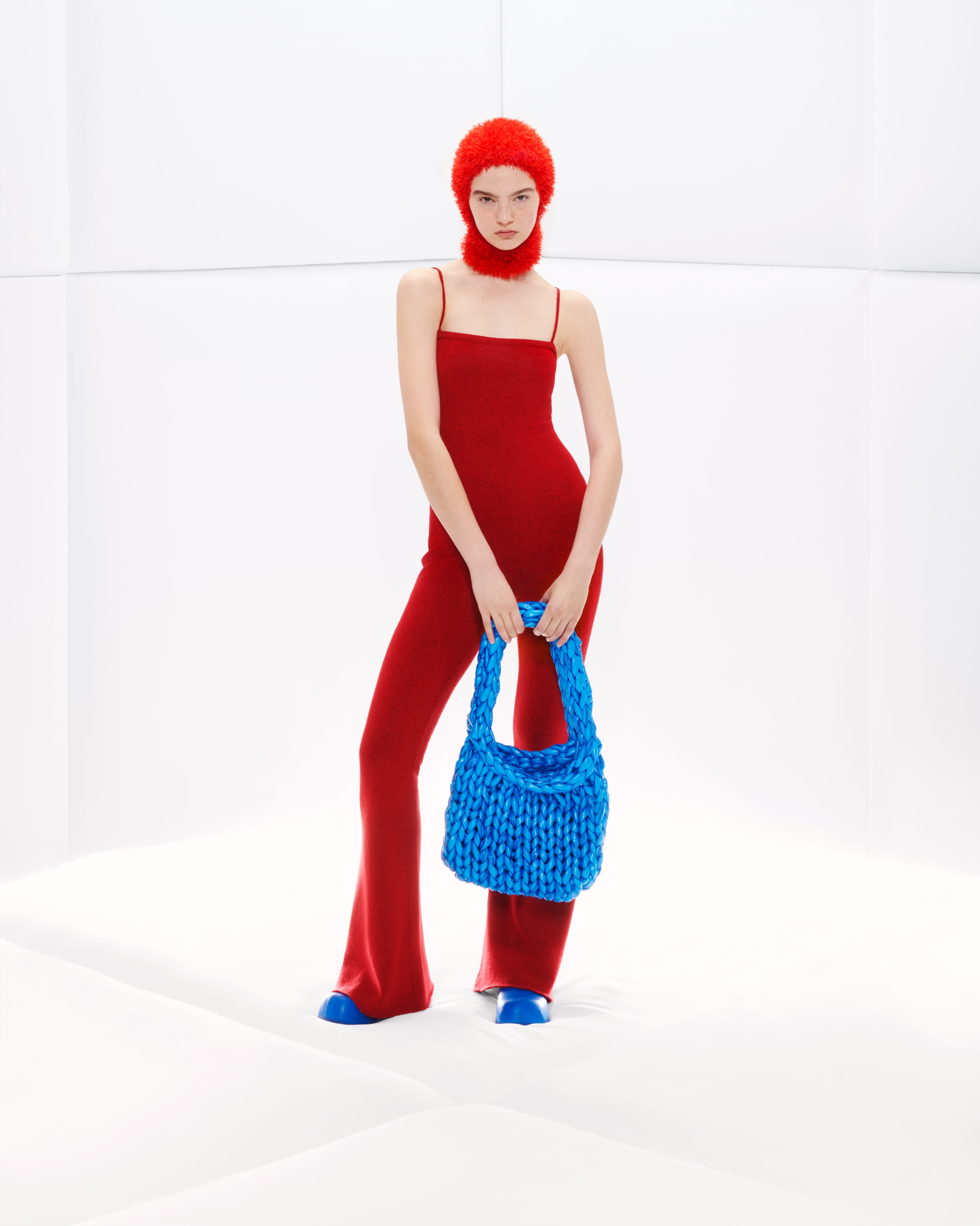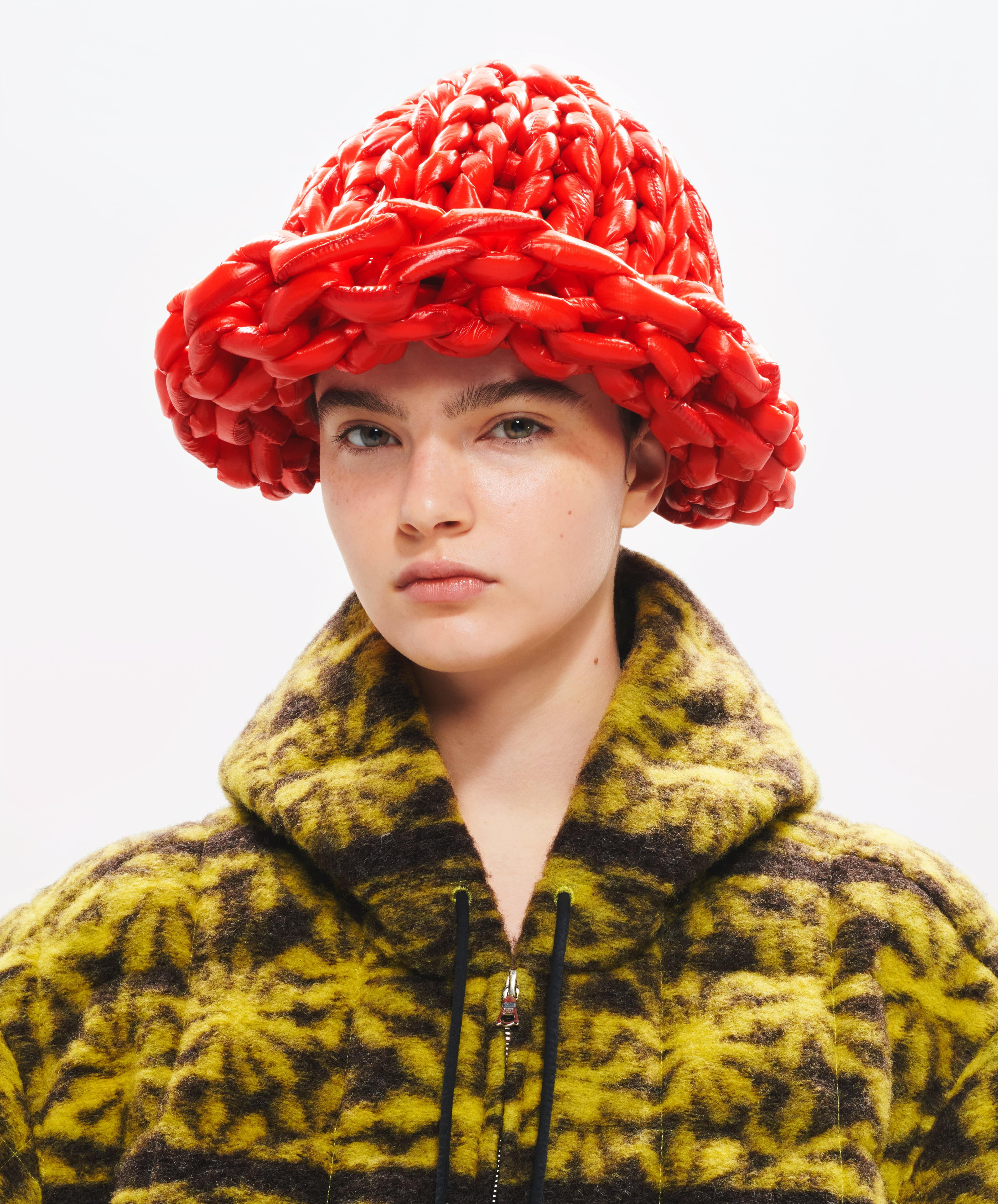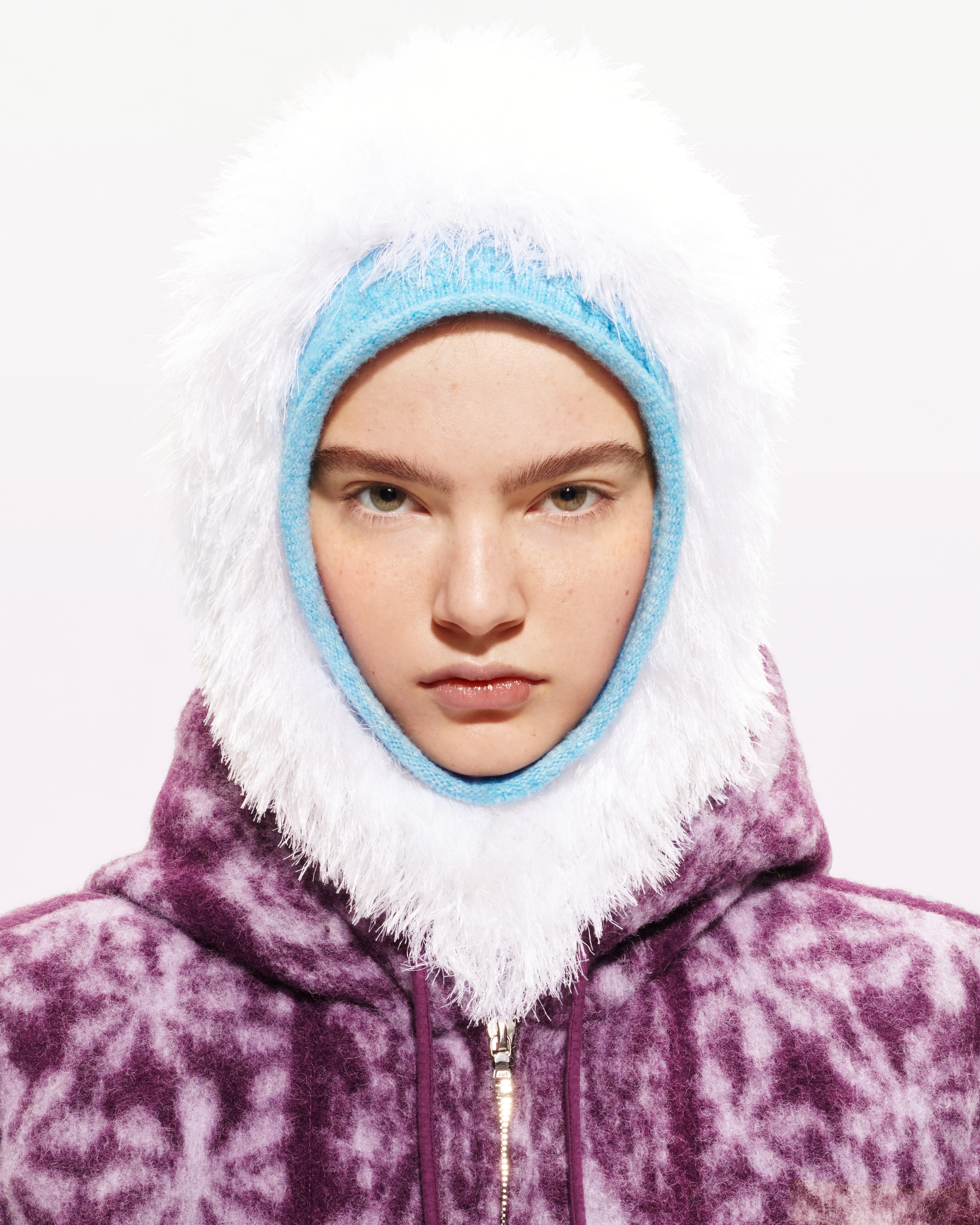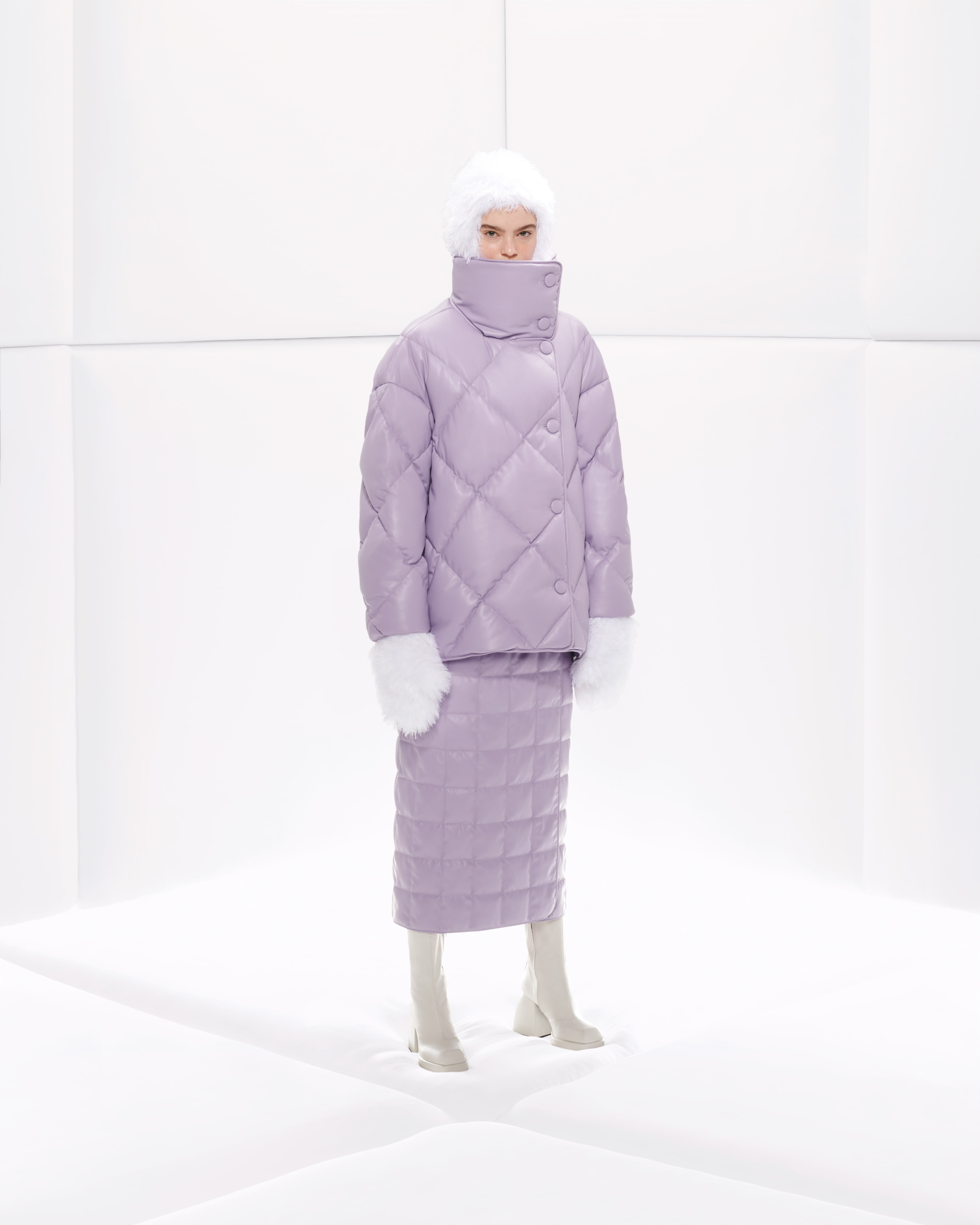 Ienki Ienki представили коллекцию Pre-Fall – 2022. В нее вошли еще более легкие куртки, трикотажные костюмы из технического смесового материала, а также вручную связанные из нейлона жилеты, сумки и головные уборы. Техника вязания из пуховых нейлоновых трубок — инновационная разработка дизайнеров бренда.