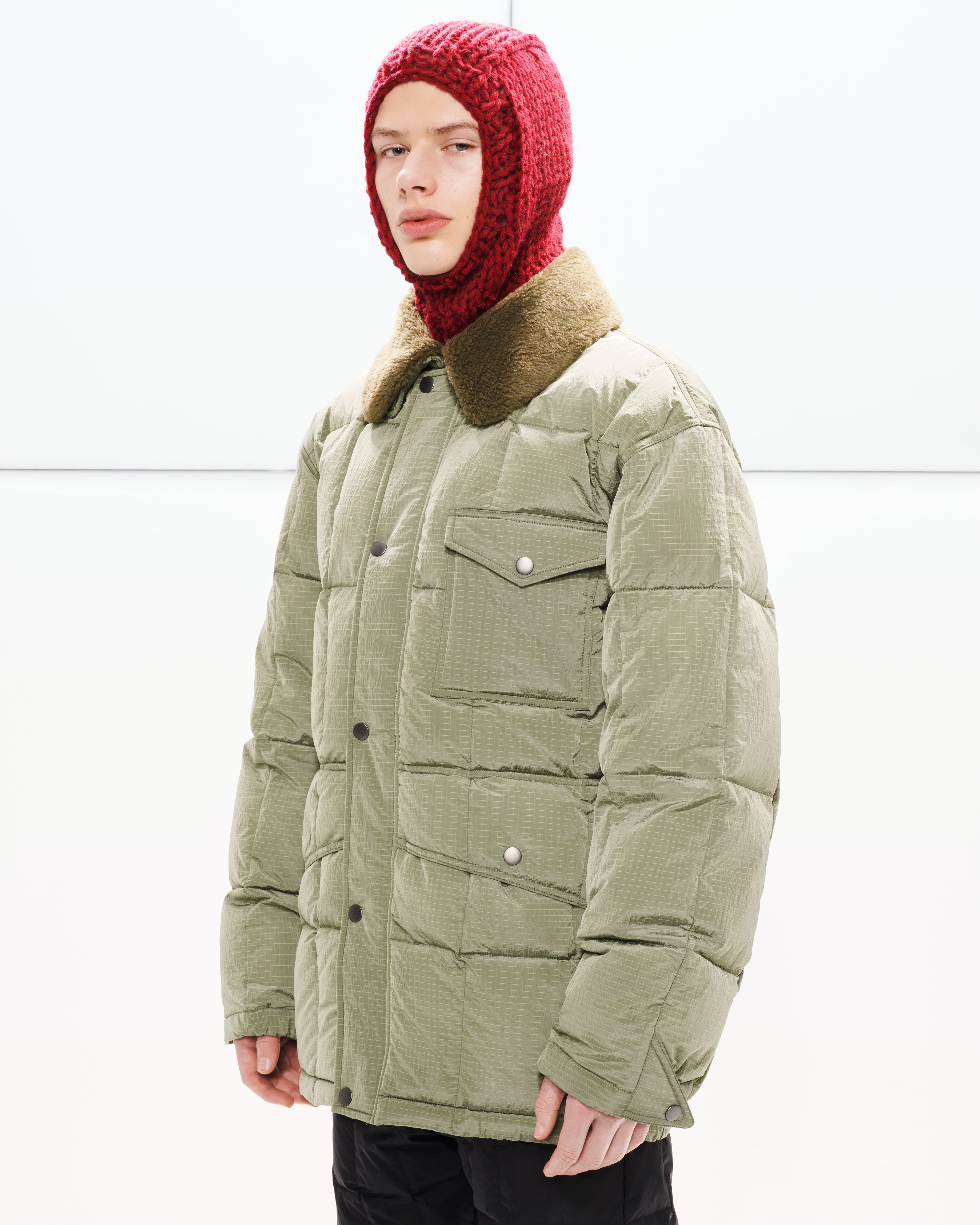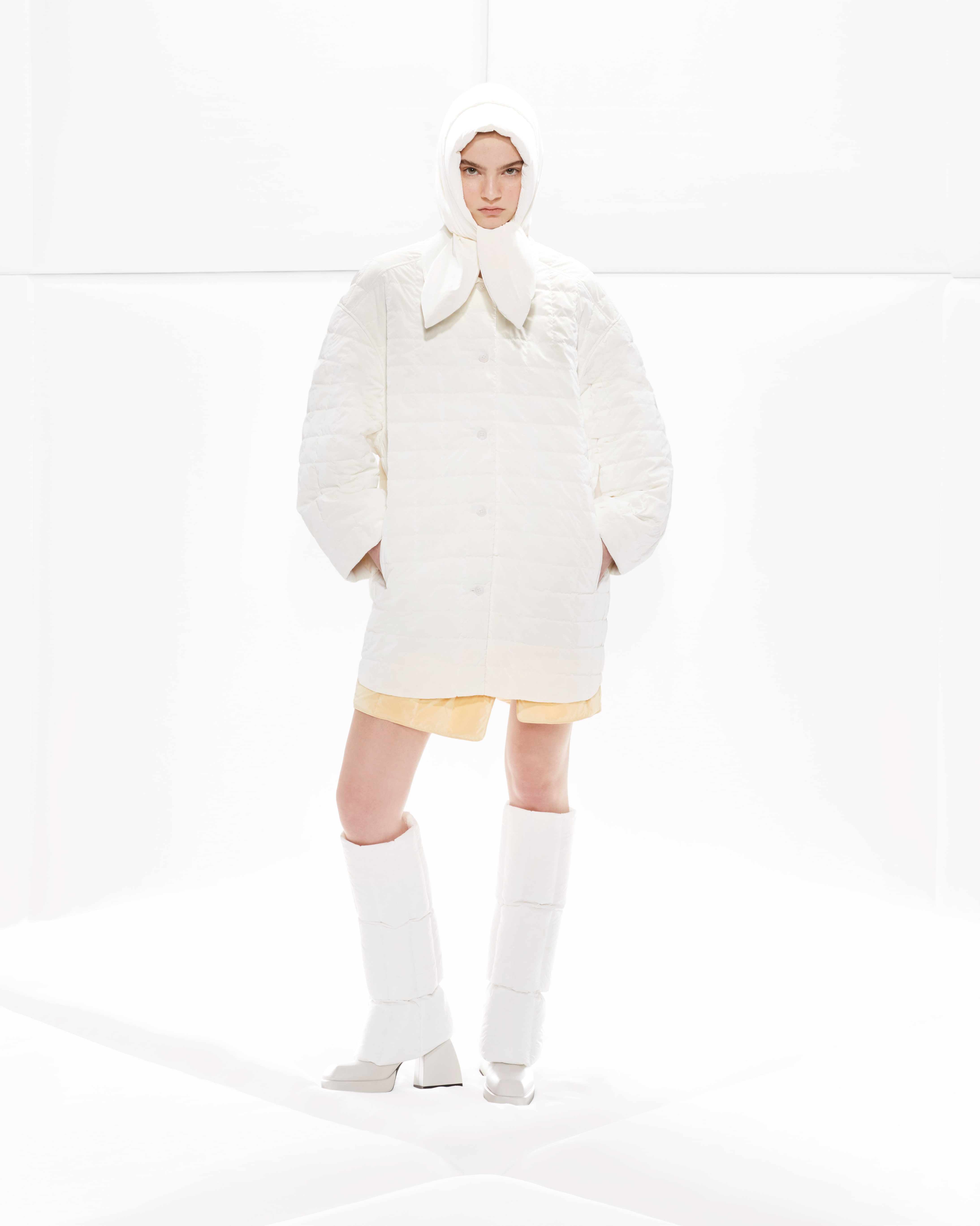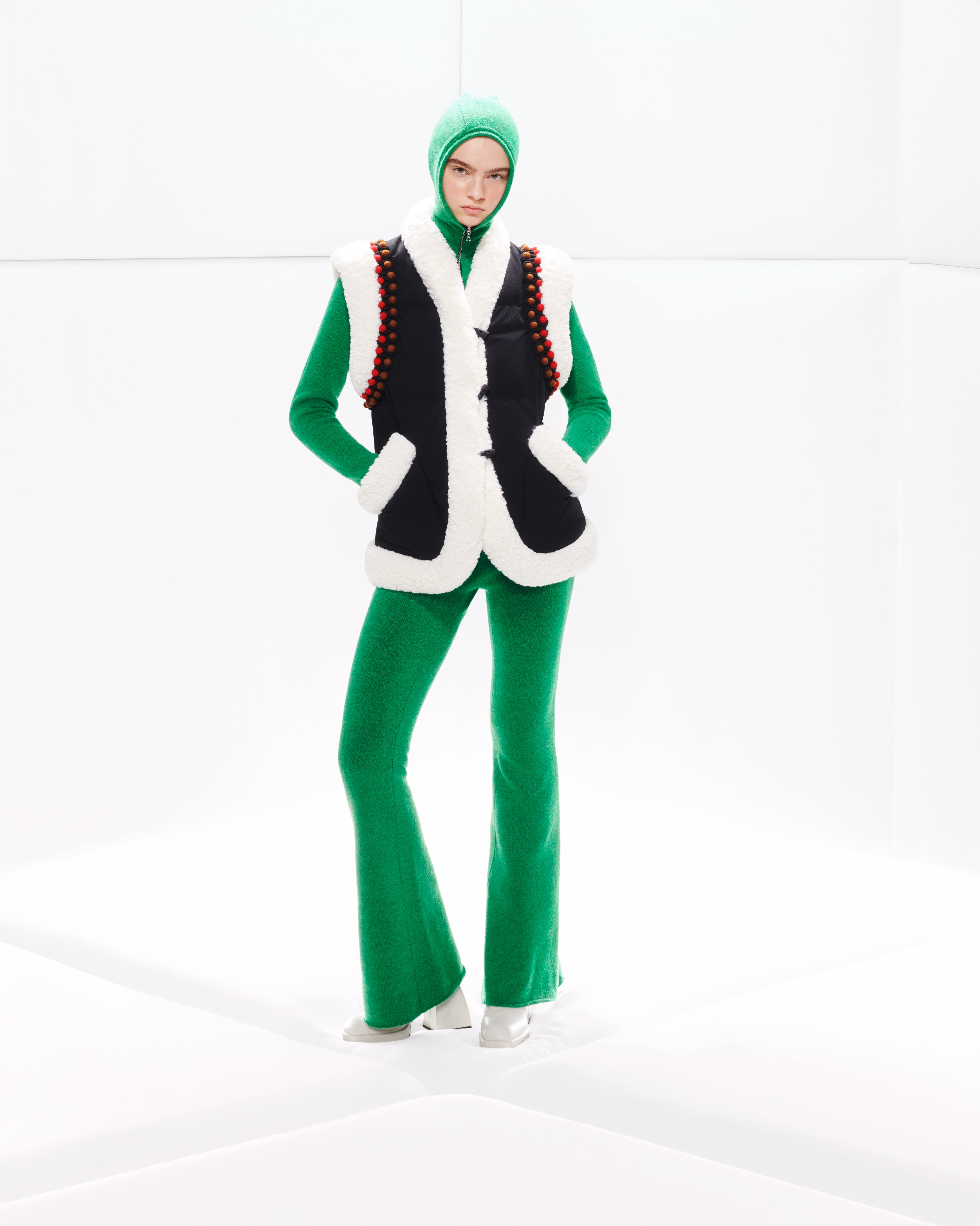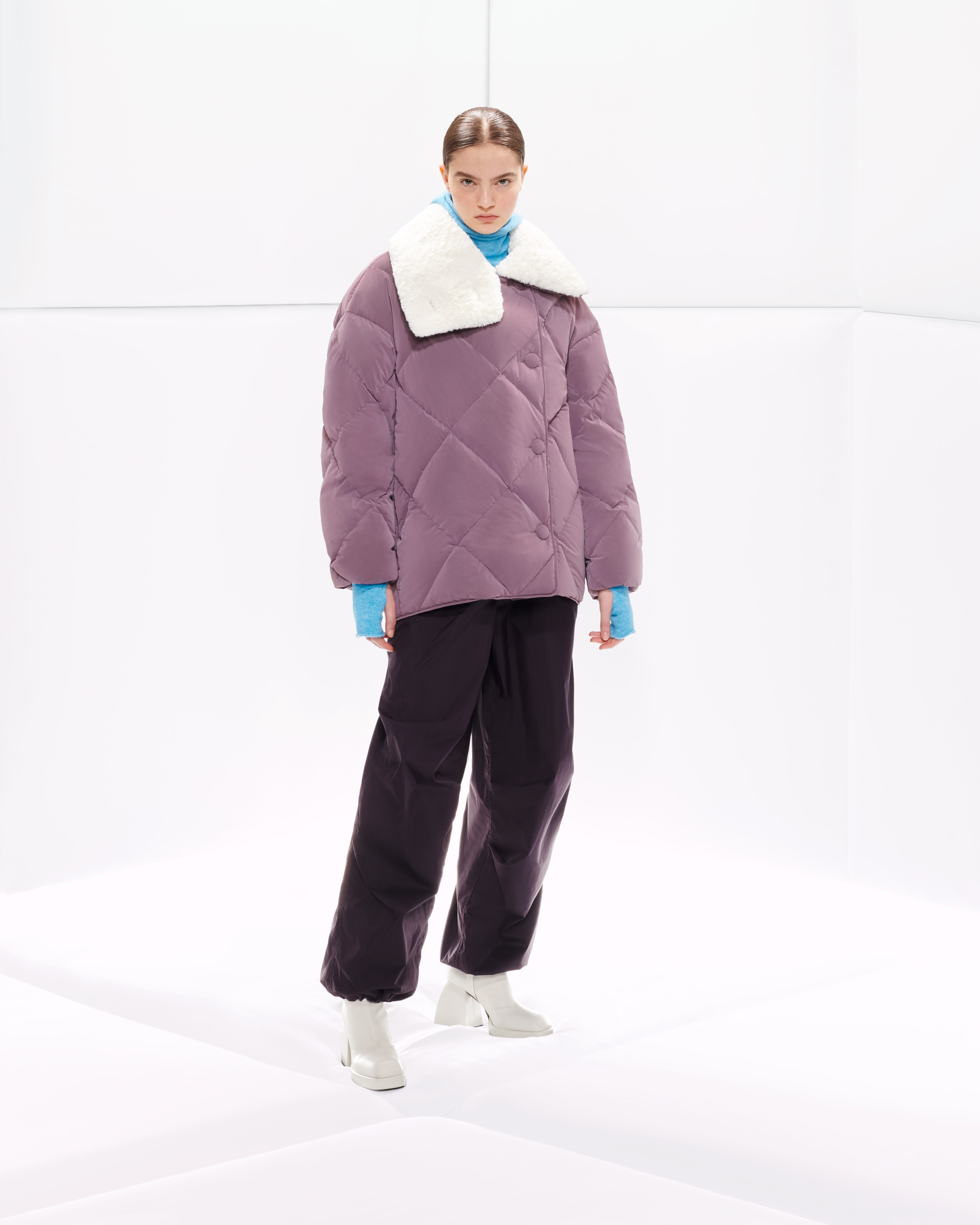 Ienki Ienki представили коллекцию Pre-Fall – 2022. В нее вошли еще более легкие куртки, трикотажные костюмы из технического смесового материала, а также вручную связанные из нейлона жилеты, сумки и головные уборы. Техника вязания из пуховых нейлоновых трубок — инновационная разработка дизайнеров бренда.