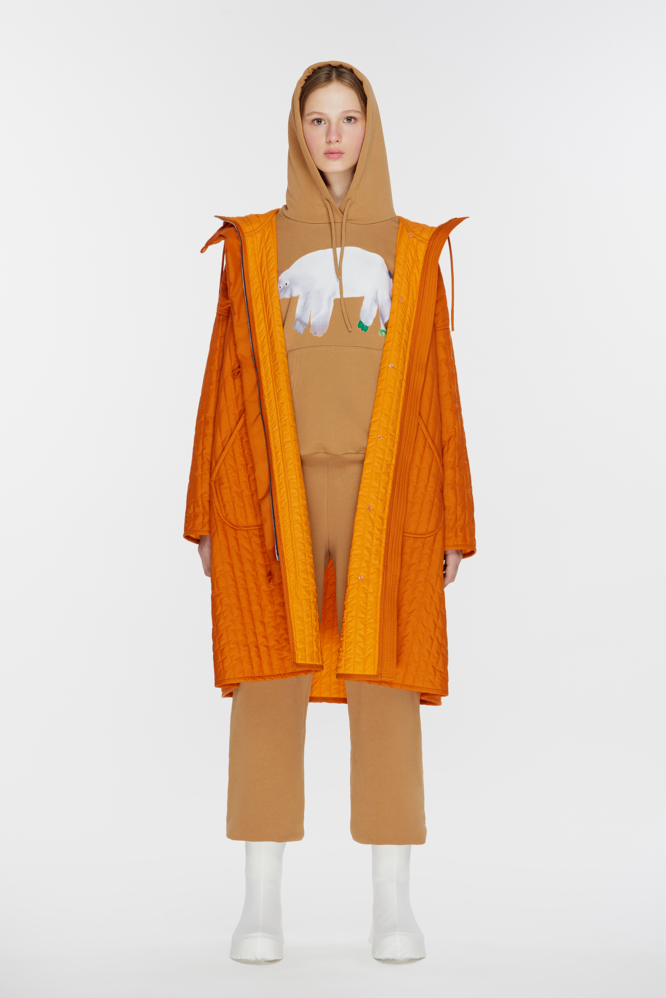"В новом сезоне мы продолжаем работать с нашим бэкграундом и экспериментировать с силуэтами и текстурами, переосмысливая костюм северных народов на современный лад. Но в этот раз особым источником вдохновения для нас стало искусство иннуитов, в частности их рисунки — изображения дикой природы и героев мифов и легенд, — которые мы современно обработали и поместили на худи", — рассказывает основатель бренда Дима Евенко.
