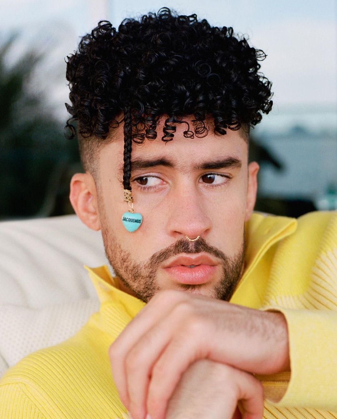 Среди всех кадров наиболее обсуждаемым стал снимок Bad Bunny в розовом платье, голубых мюлях на каблуке и белых высоких носках. В Сети предполагают, что Симон Порт Жакмюс вдохновился известными снимками Брэда Питта, на которых тот позирует в мини-платье из пайеток и серебристых кедах.