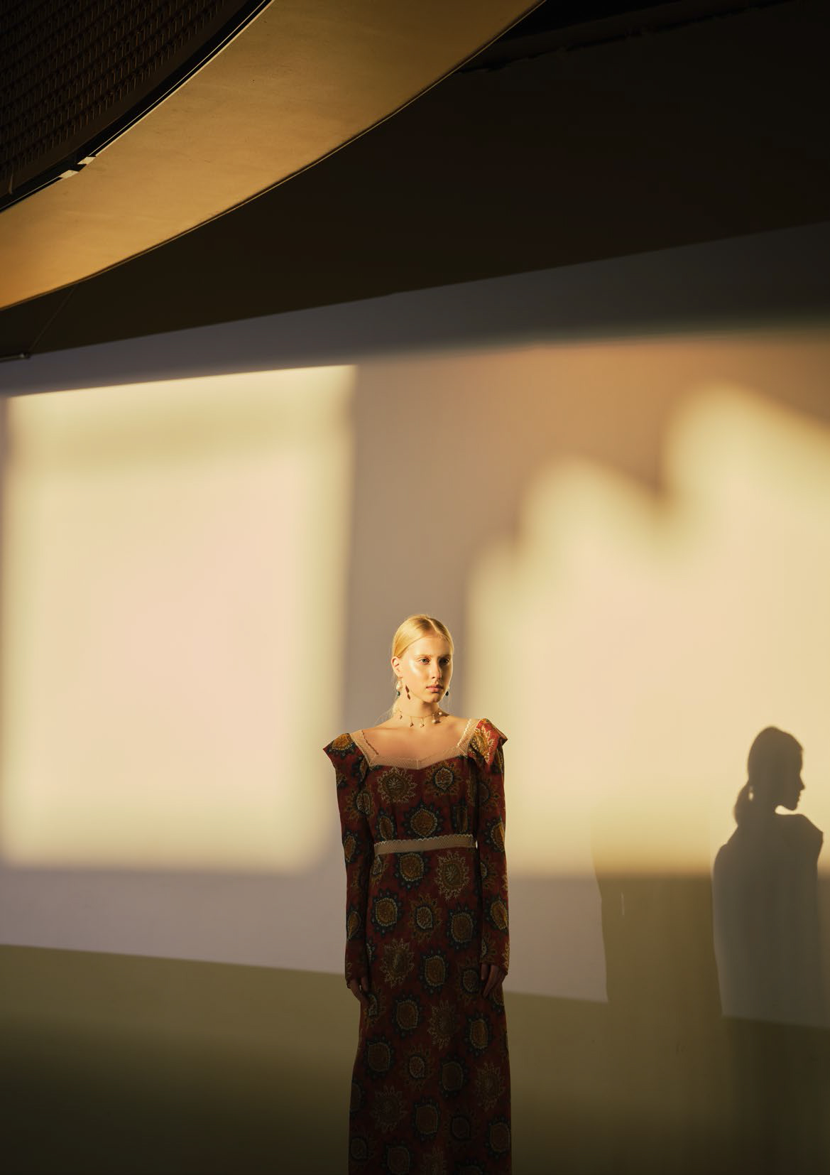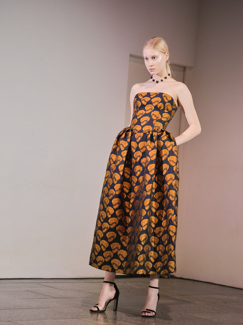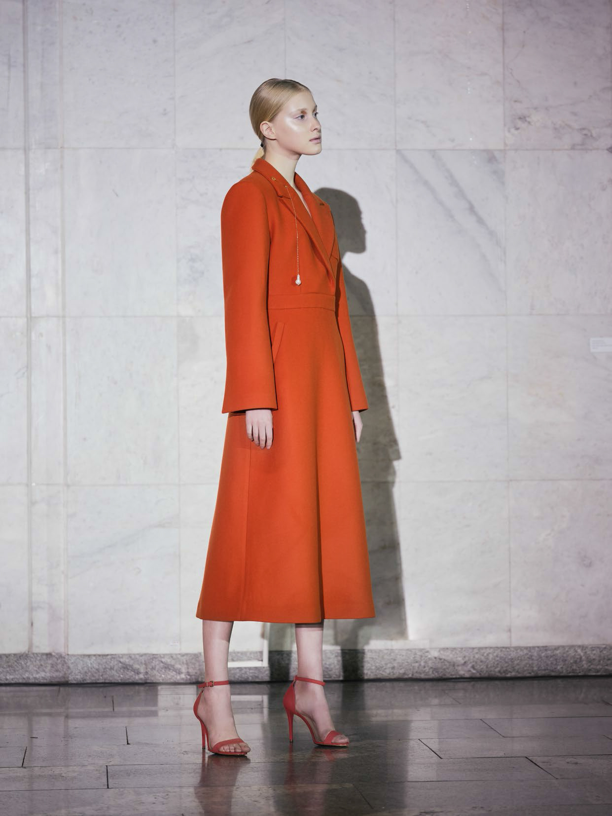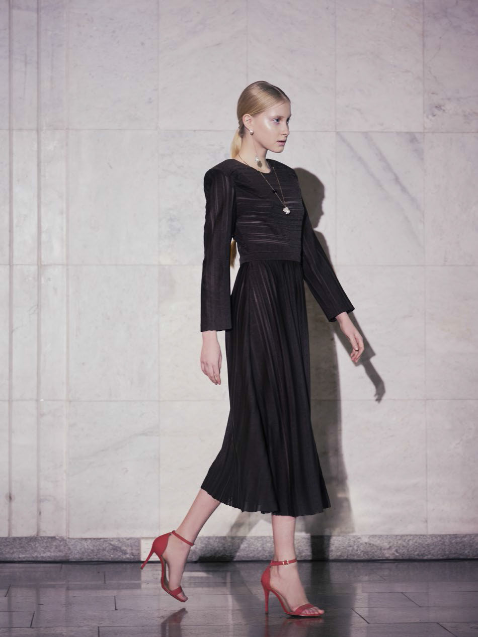 В линии аксессуаров представлены шерстяные капюшоны с длинными концами, которые можно завязывать как шарф. Манишки из тонкого шелка, воротнички из кружева и бархата и, конечно, украшения: браслеты, подвески, броши, чокеры и серьги с речным жемчугом неправильной формы.