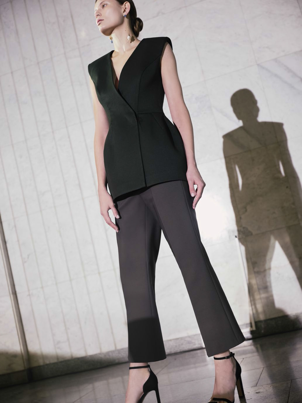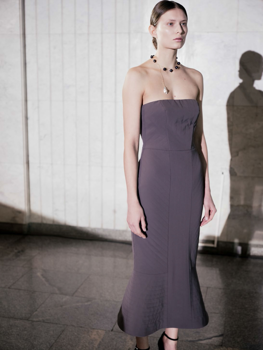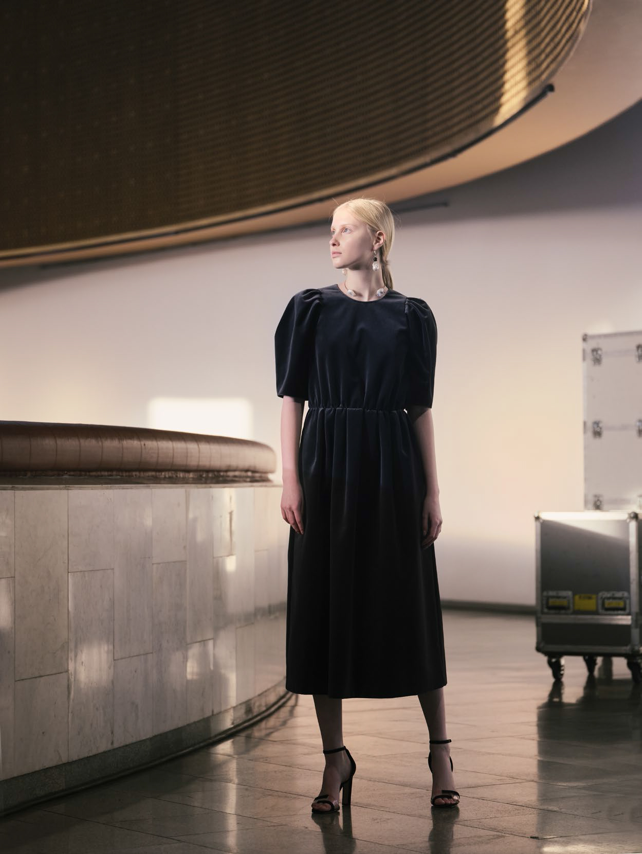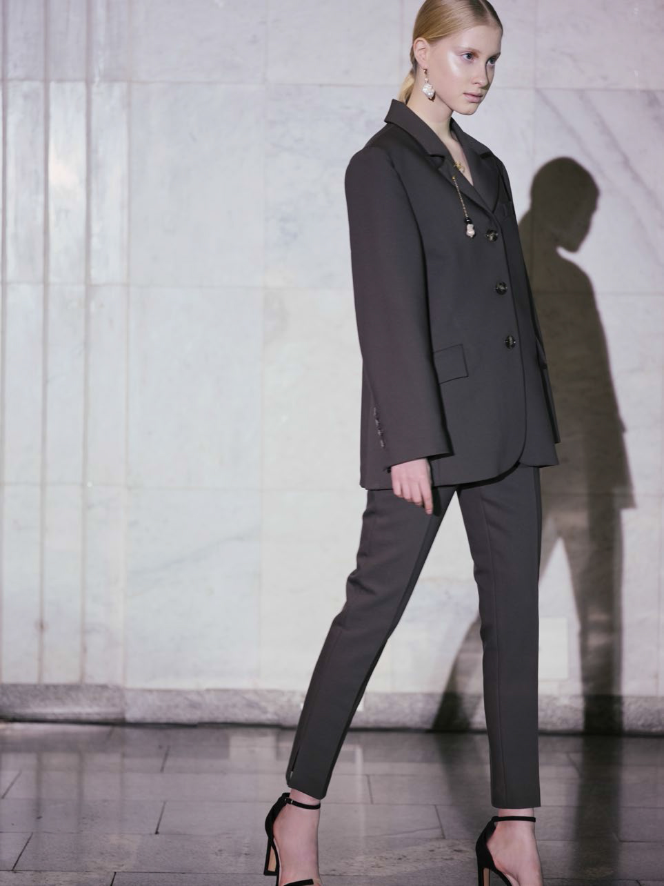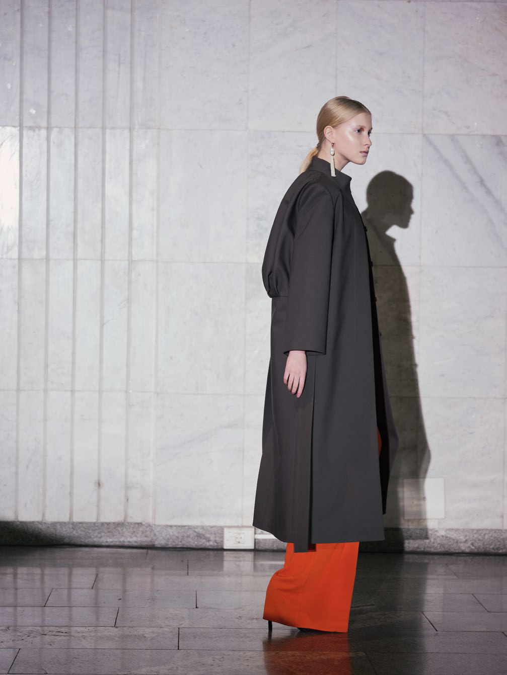 В линии аксессуаров представлены шерстяные капюшоны с длинными концами, которые можно завязывать как шарф. Манишки из тонкого шелка, воротнички из кружева и бархата и, конечно, украшения: браслеты, подвески, броши, чокеры и серьги с речным жемчугом неправильной формы.