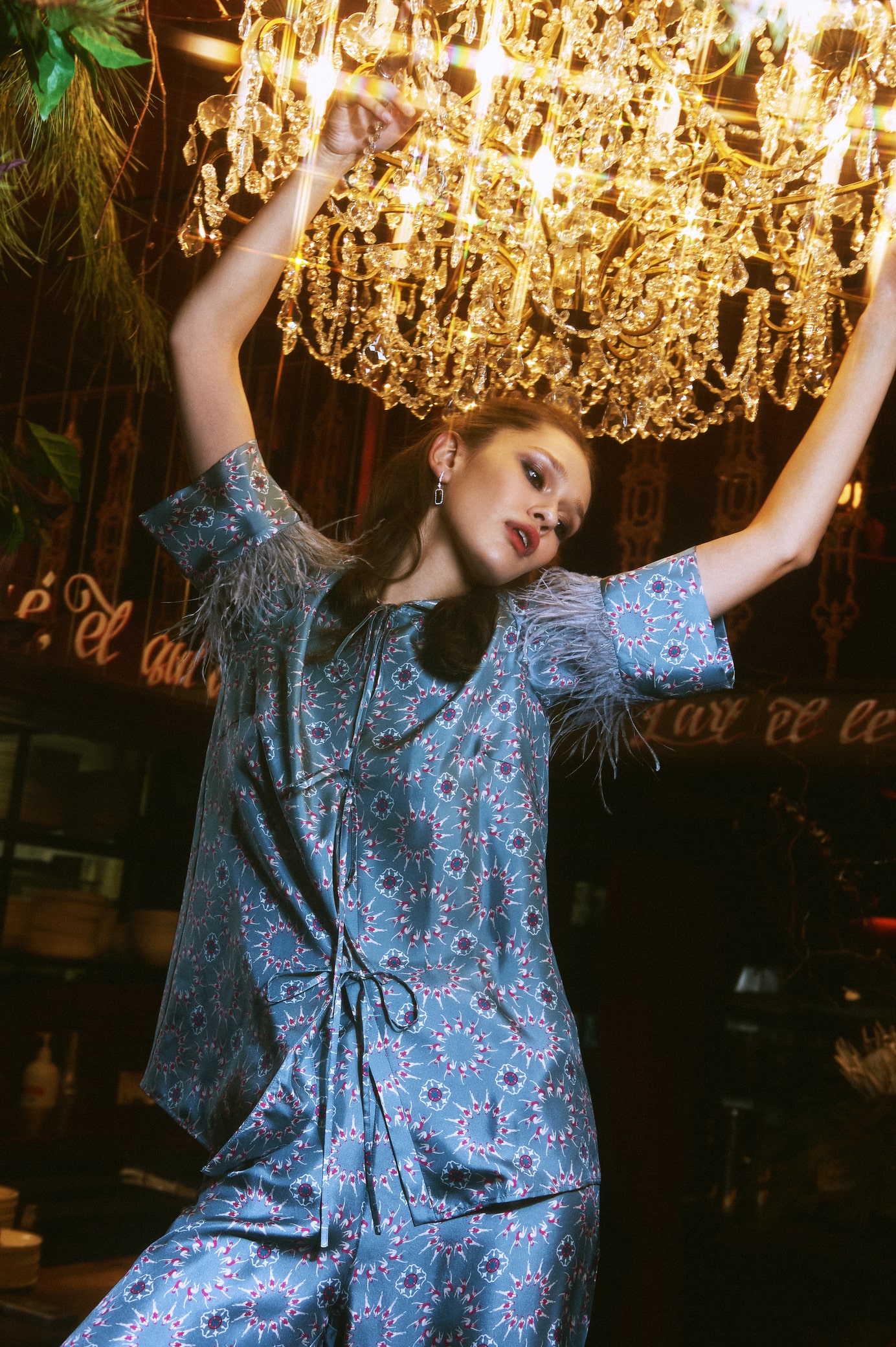 “Пижамные образы универсальны: подойдут одинаково хорошо и для уютного вечера дома с бокалом вина, и для шумной вечеринки — в сочетании с туфлями на шпильке и красной помадой. Разнообразие принтов позволяет каждому подобрать для себя оттенок и близкую тематику”, — говорит Анастасия Рябоконь.