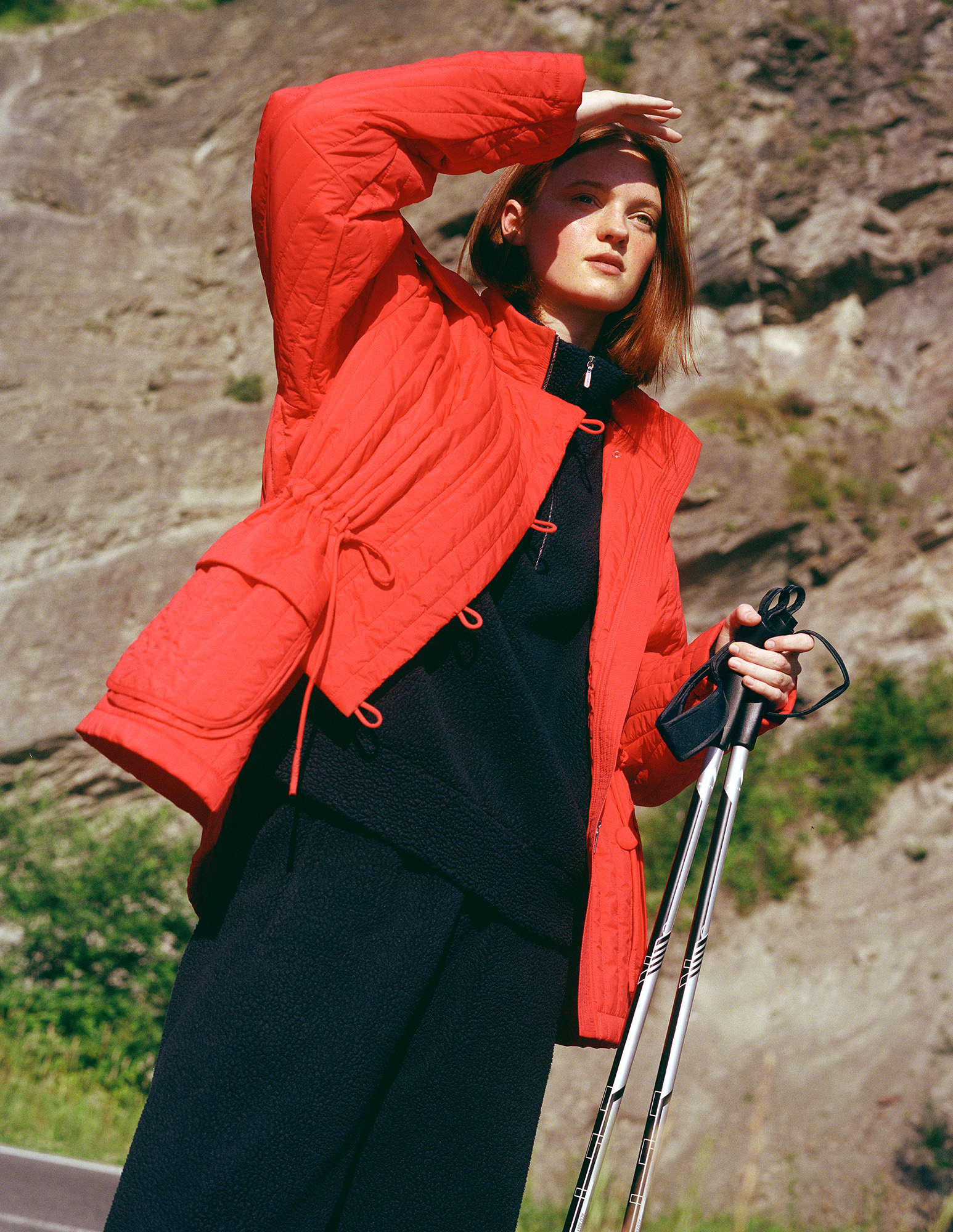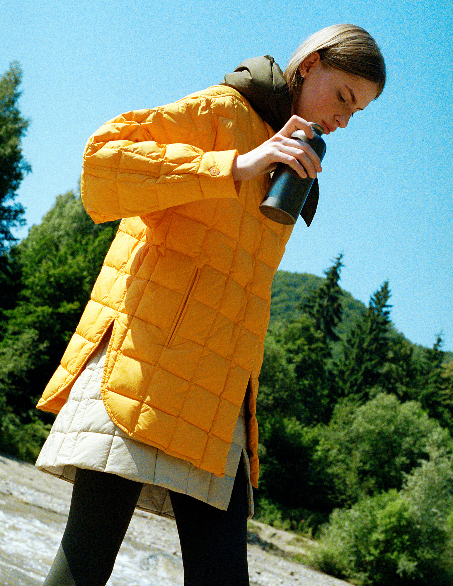 Новые модели курток Nuna Jacket, Tuttu Jacket и Ukpik Jacket утеплены технологичным материалом PrimaLoft, который максимально напоминает по своим тепловым качествам пух и, кроме того, обладает водоотталкивающими свойствами, — идеально для осенних дождей. Такой же утеплитель был выбран для брюк, шорт и мини-юбок, чтобы сохранить их не только теплыми, но и тонкими и легкими.