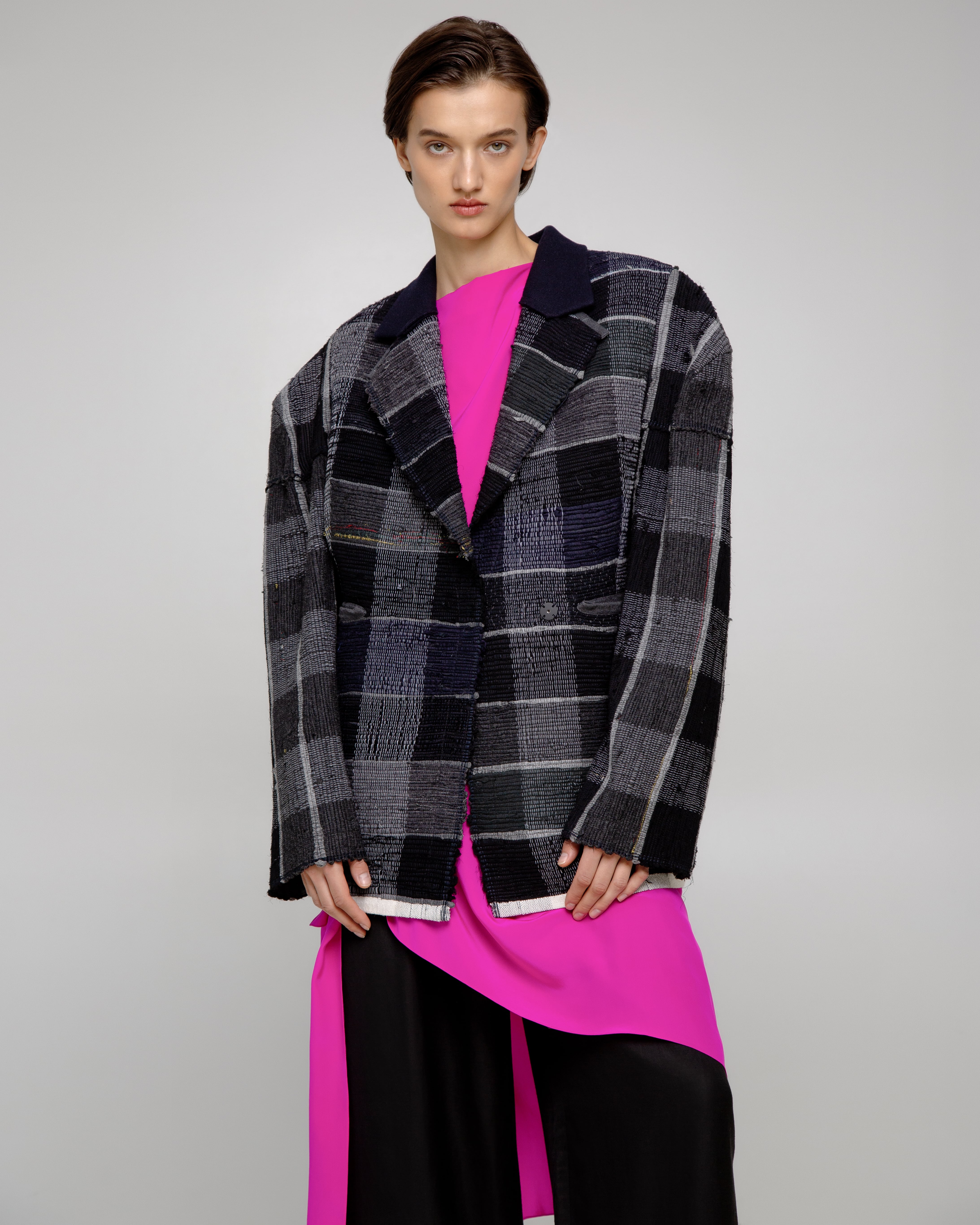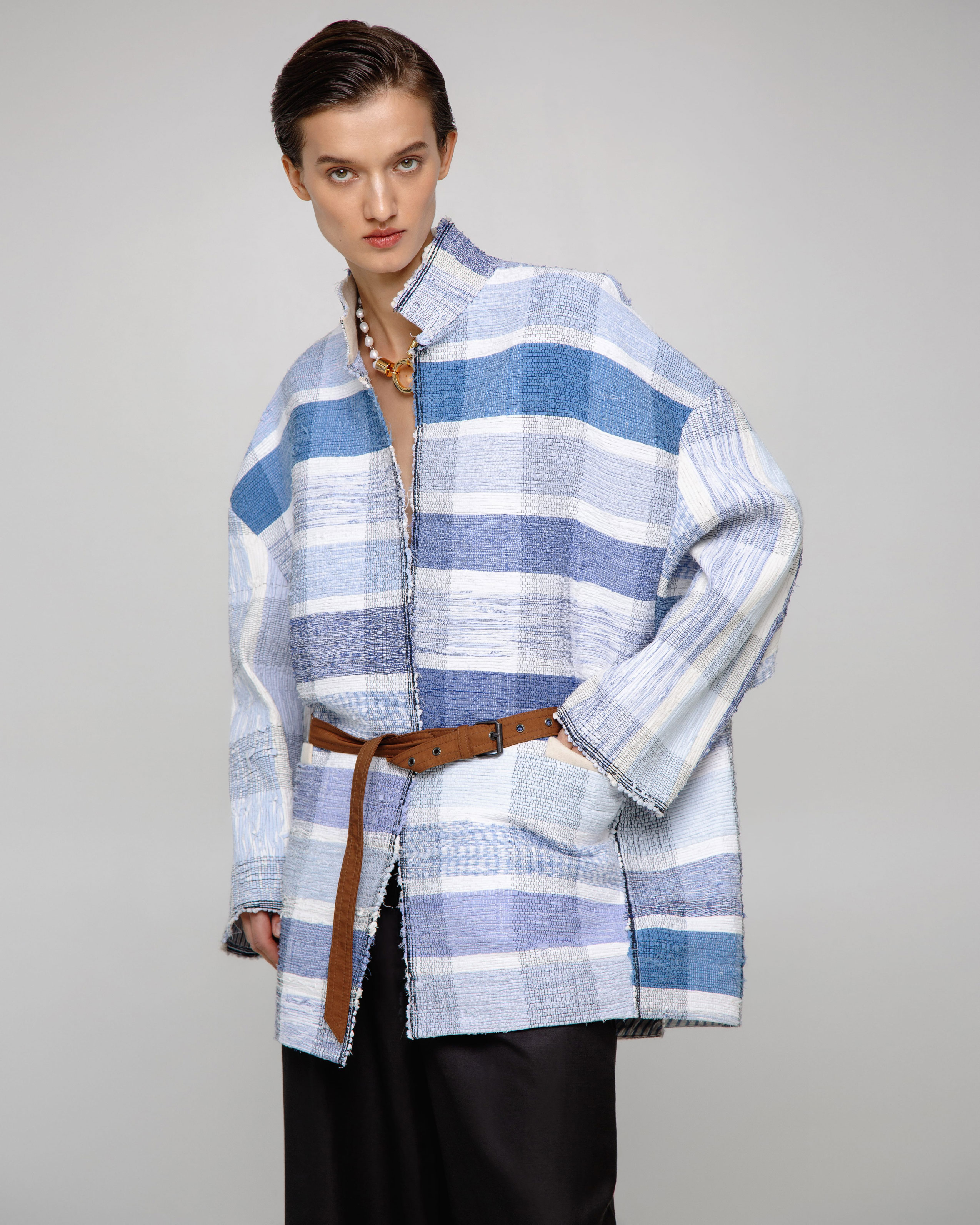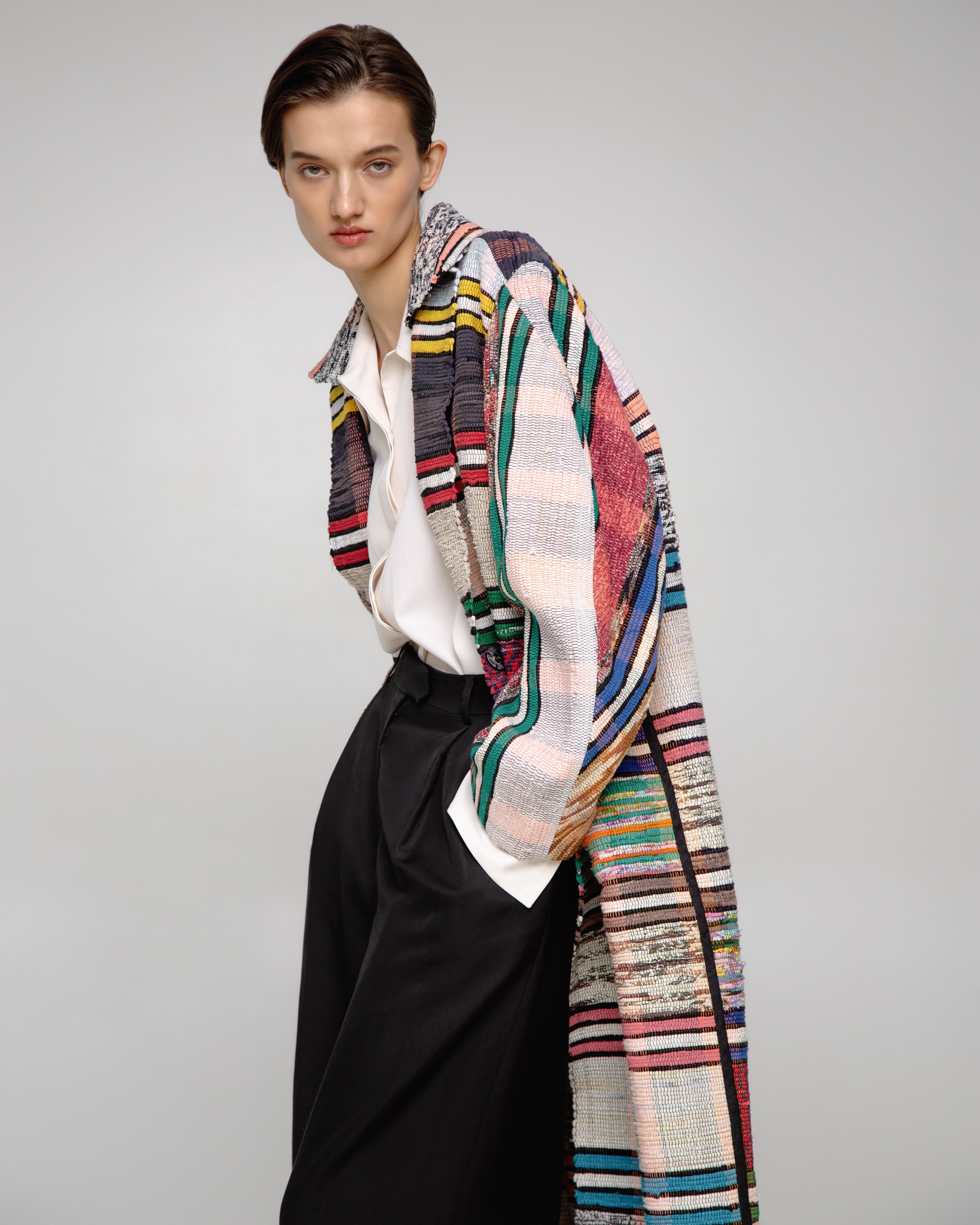 Бренд Litkovskaya представляет новую коллекцию в рамках своей артизанальной линии. Ода самобытности и традициям, дань технологиям и современности — бренду удается выстраивать мосты между прошлым и будущим. Демикутюрные пальто, платья, укороченные куртки и архитектурные блейзеры выполнены сразу в нескольких видах старинных ткацких техник. Мастерицы из карпатских сёл посвящают десятки часов ручной работы созданию вещей из производственных остатков, архивной и аутентичной винтажной одежды. На изготовление куртки the Shirts ушло, к примеру, 37 часов труда и 50 рубашек. Мастерица из села Черная на Подолье разрывает старые сорочки на тонкие нити и создает из них уникальное произведение.