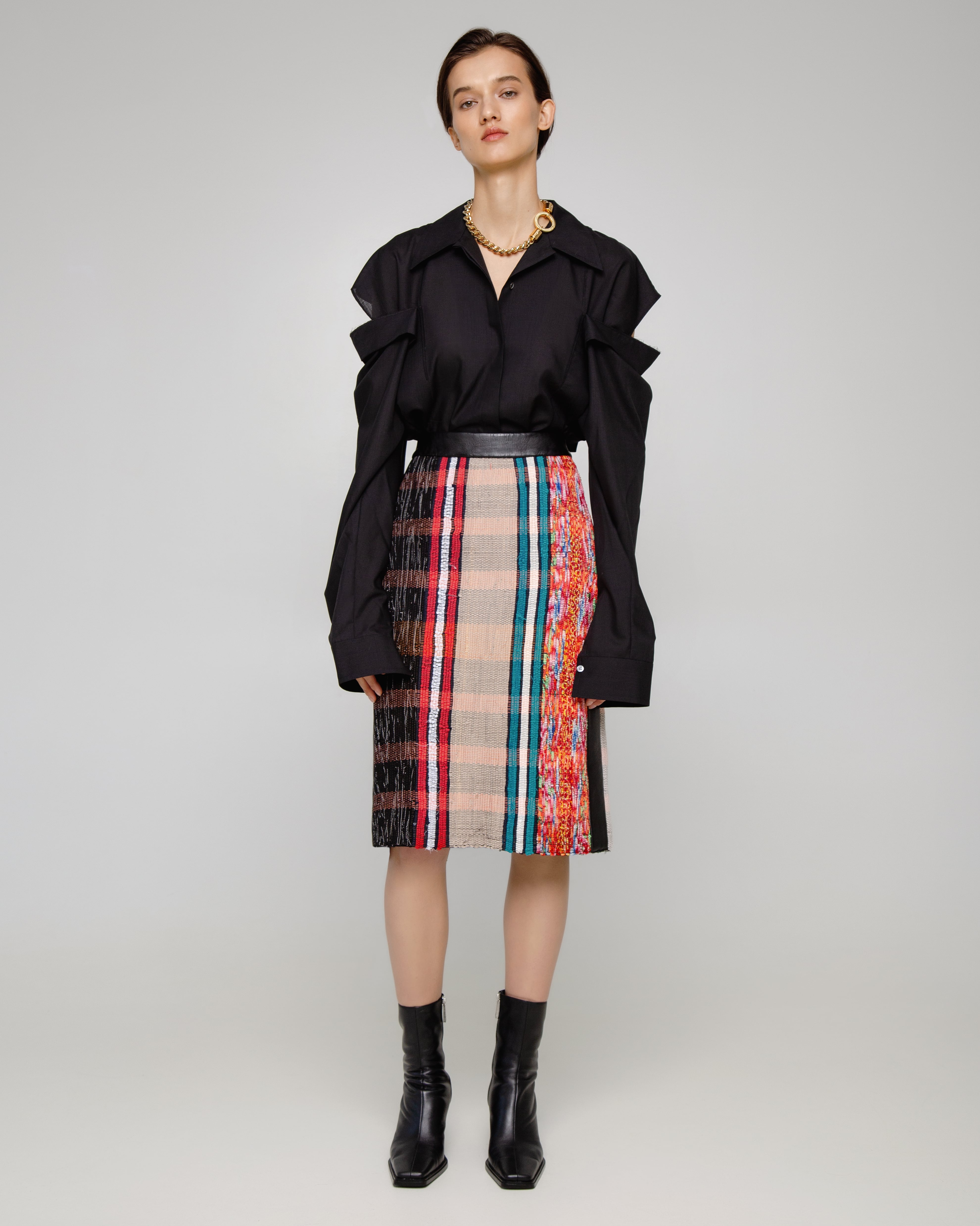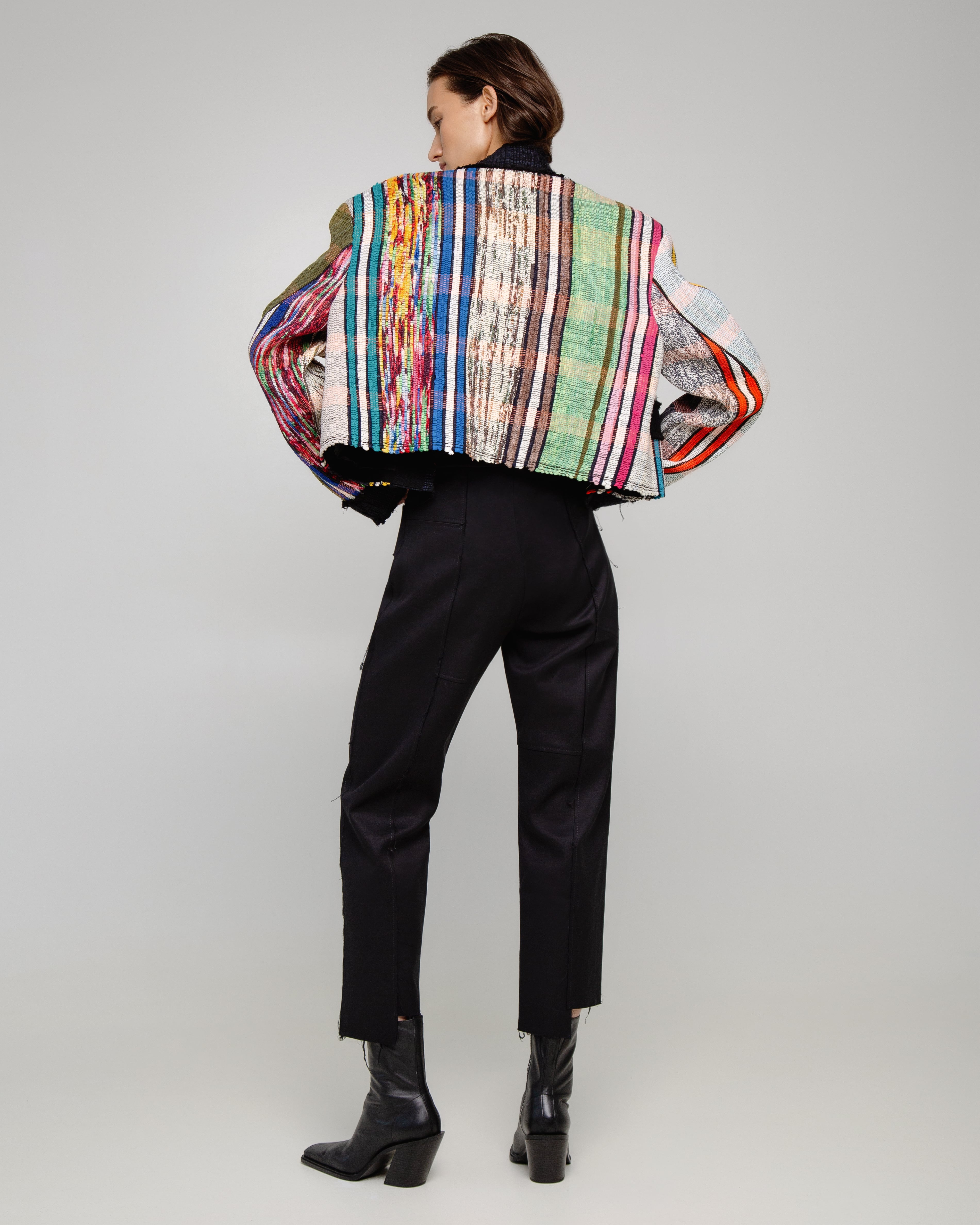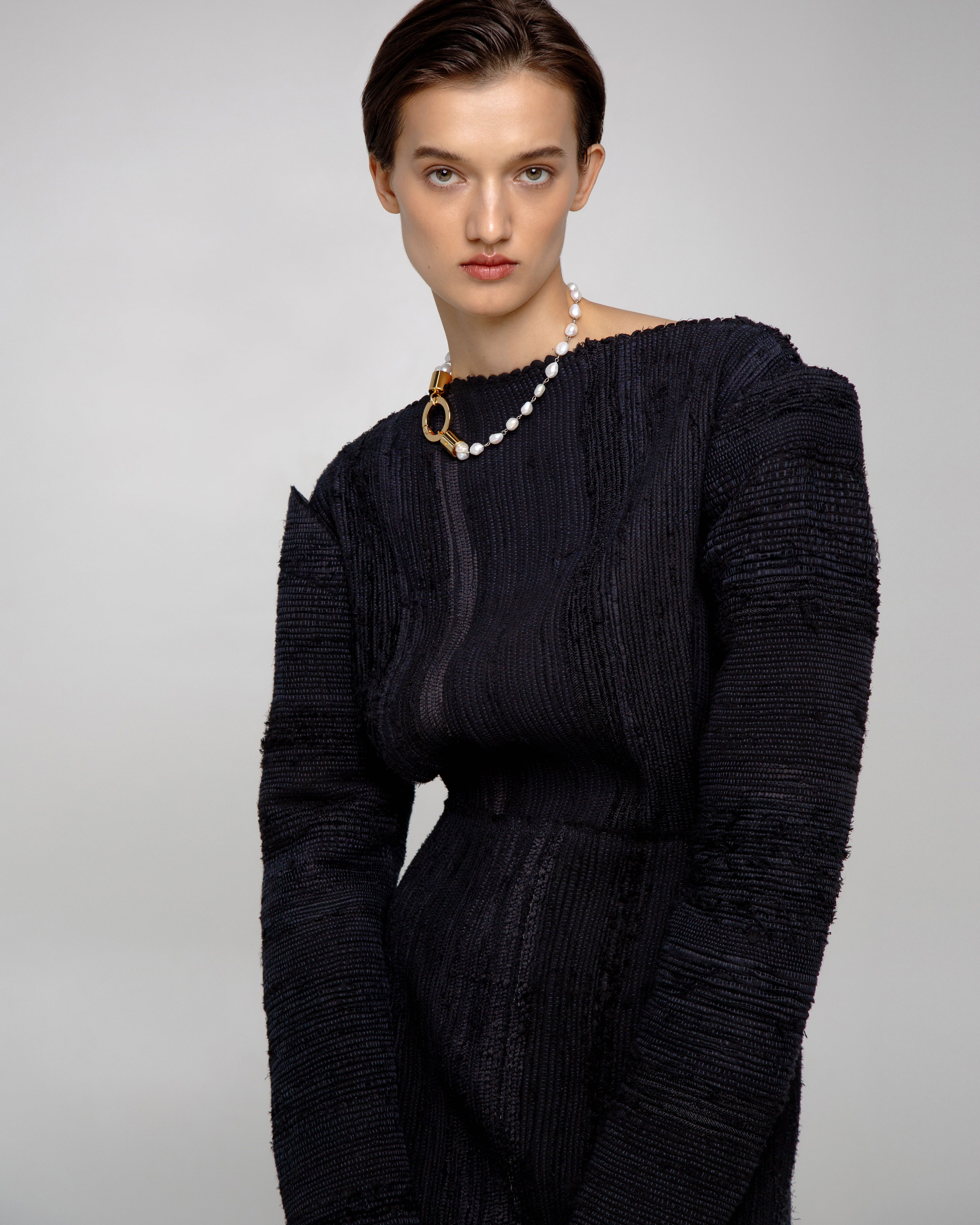 Бренд Litkovskaya представляет новую коллекцию в рамках своей артизанальной линии. Ода самобытности и традициям, дань технологиям и современности — бренду удается выстраивать мосты между прошлым и будущим. Демикутюрные пальто, платья, укороченные куртки и архитектурные блейзеры выполнены сразу в нескольких видах старинных ткацких техник. Мастерицы из карпатских сёл посвящают десятки часов ручной работы созданию вещей из производственных остатков, архивной и аутентичной винтажной одежды. На изготовление куртки the Shirts ушло, к примеру, 37 часов труда и 50 рубашек. Мастерица из села Черная на Подолье разрывает старые сорочки на тонкие нити и создает из них уникальное произведение.
