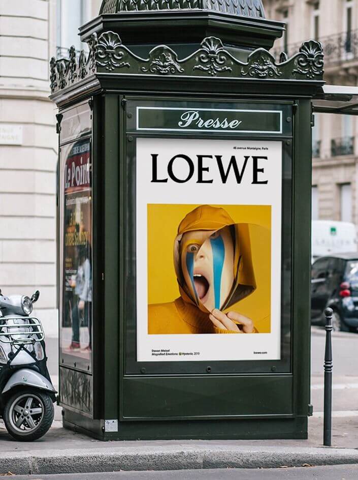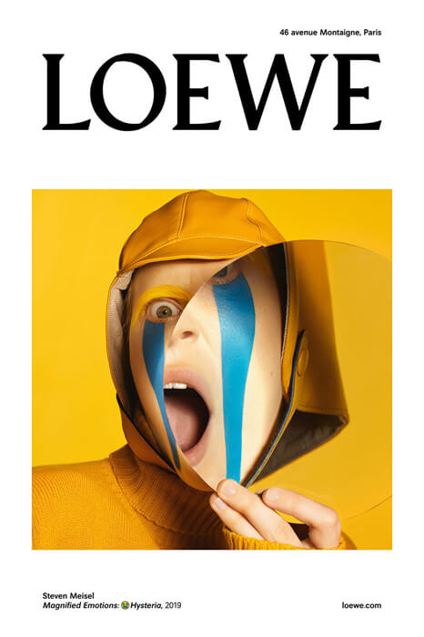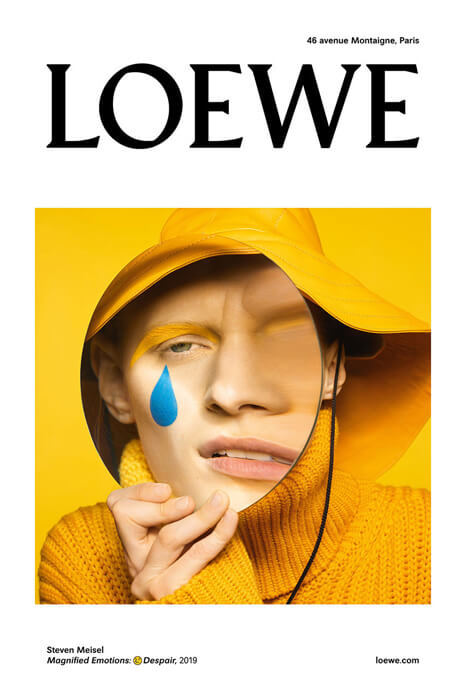 Рекламную кампанию осенней коллекции Loewe посвятили эмоциям в виртуальном мире. Модель Джулия Нобис, одетая во все желтое, показывает два самых популярных эмодзи — смеющуюся “Истерику” и “Отчаяние” с текущими слезами. Джонатан Андерсон, креативный директор испанского бренда, назвал кампанию Magnified Emotions (“Преувеличенные эмоции”), подчеркивая неестественность виртуального общения. За макияж отвечала Пэт Макграт, а снимки делал Стивен Мейзел.